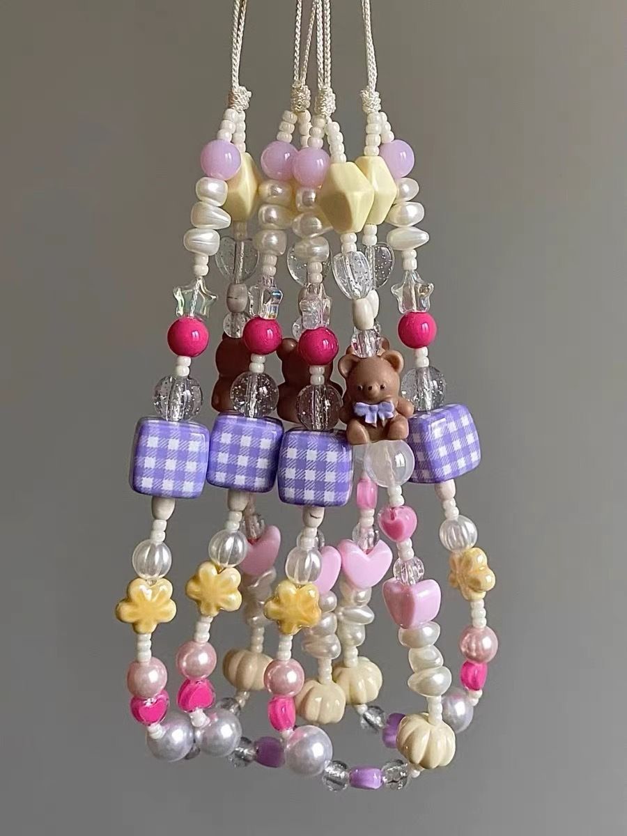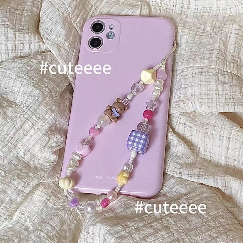 Ins 만화 곰 구슬 휴대 전화 체인 ccd 카메라 체인 귀여운 틈새 소녀 심장 광장 휴대 전화 체인 조수
