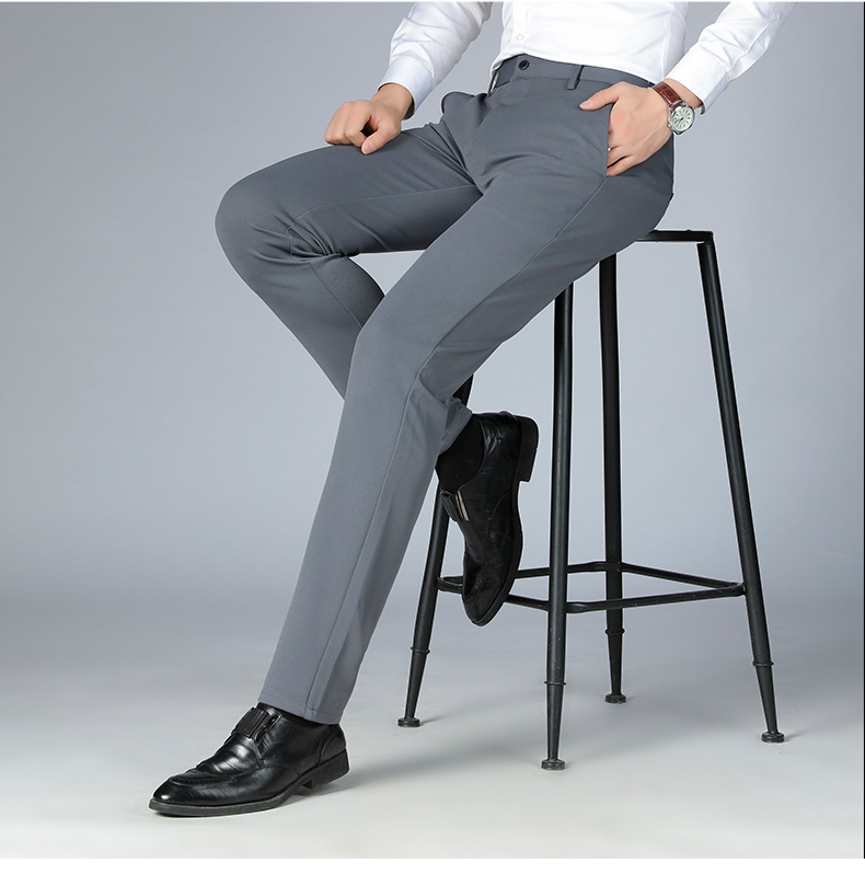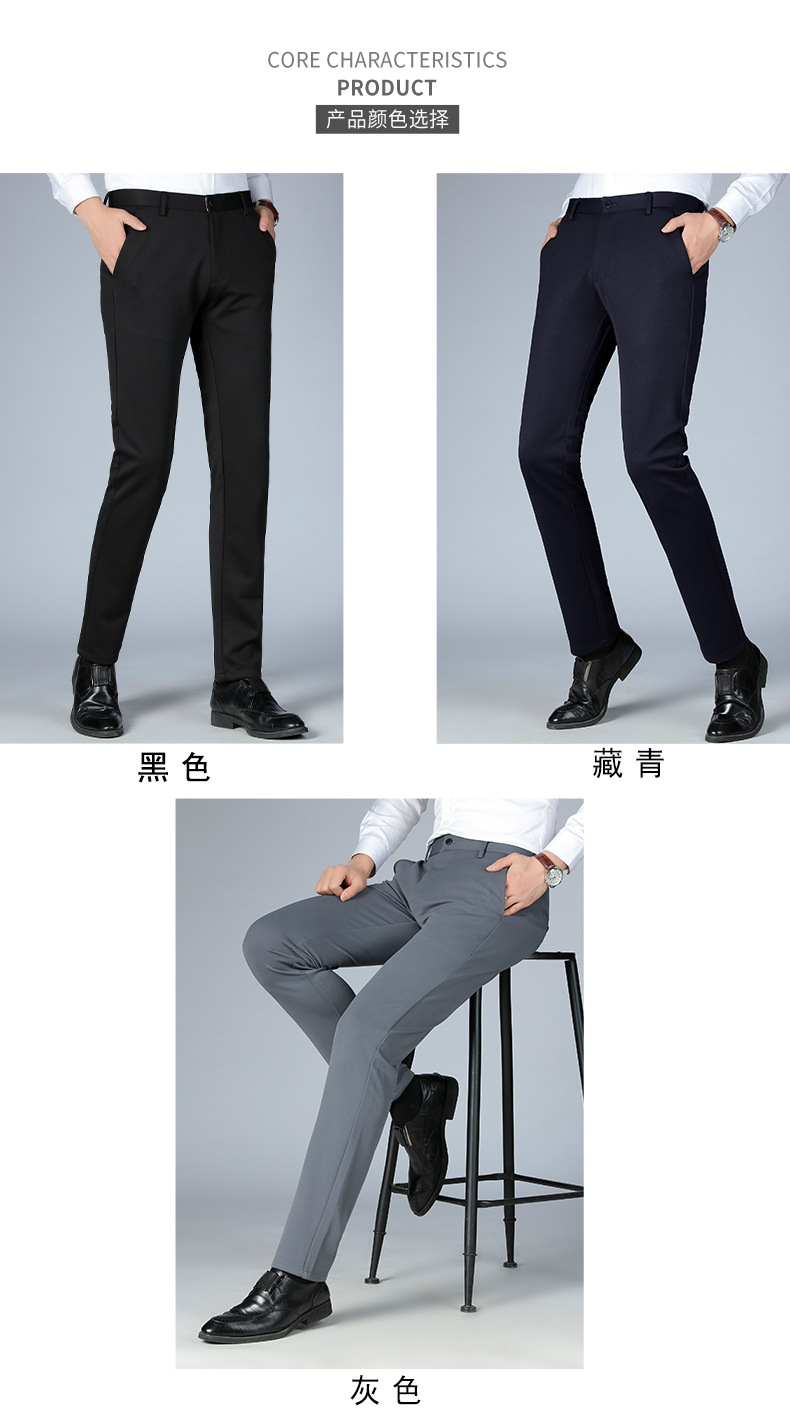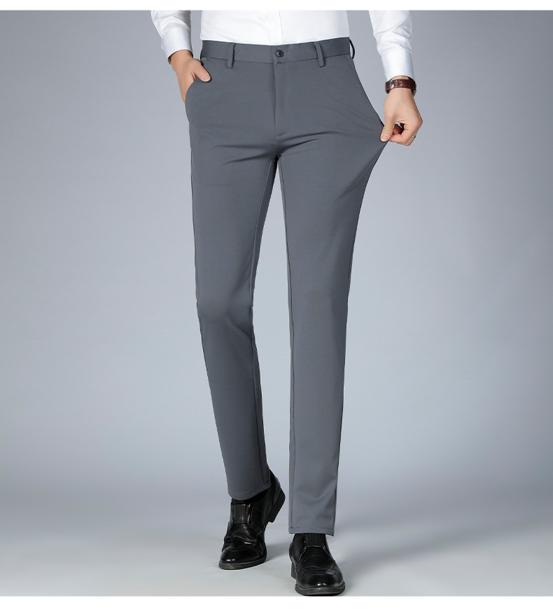 남성용 캐주얼 바지 비즈니스 솔리드 컬러 간단한 스트레이트 바지 남성용 다림질 기저귀 통기성 스트레치 바지