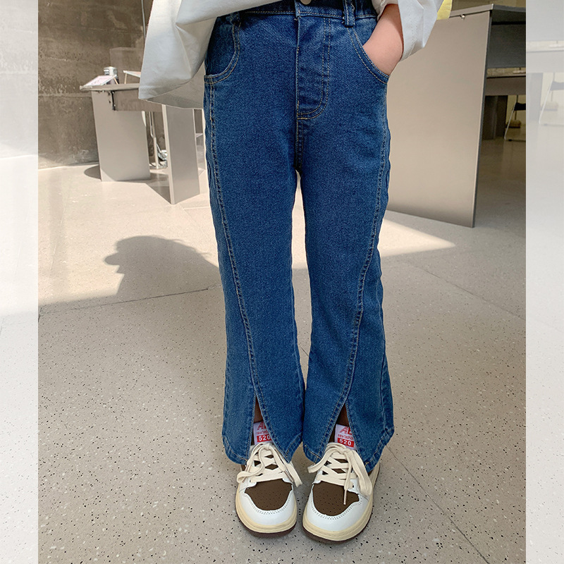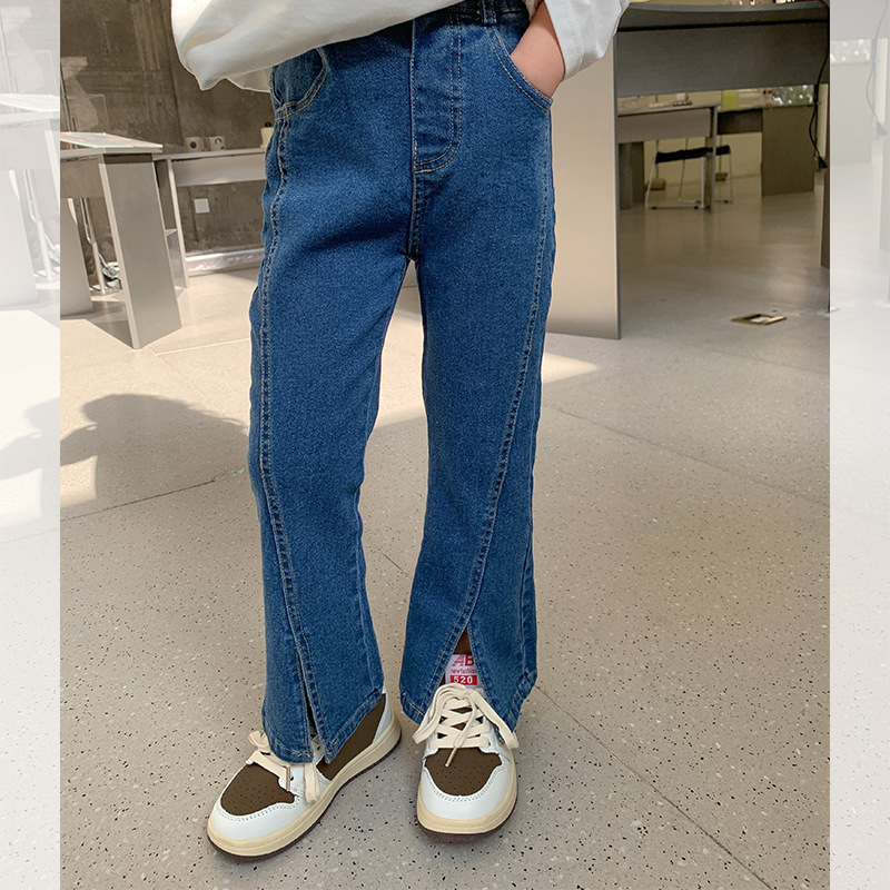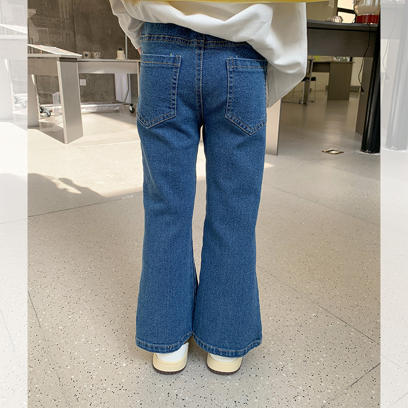 여아 신축성 있는 슬림 데님 바지 2025 가을 한국식 워싱 소프트 데님 패셔너블 플레어 팬츠스토어 가기