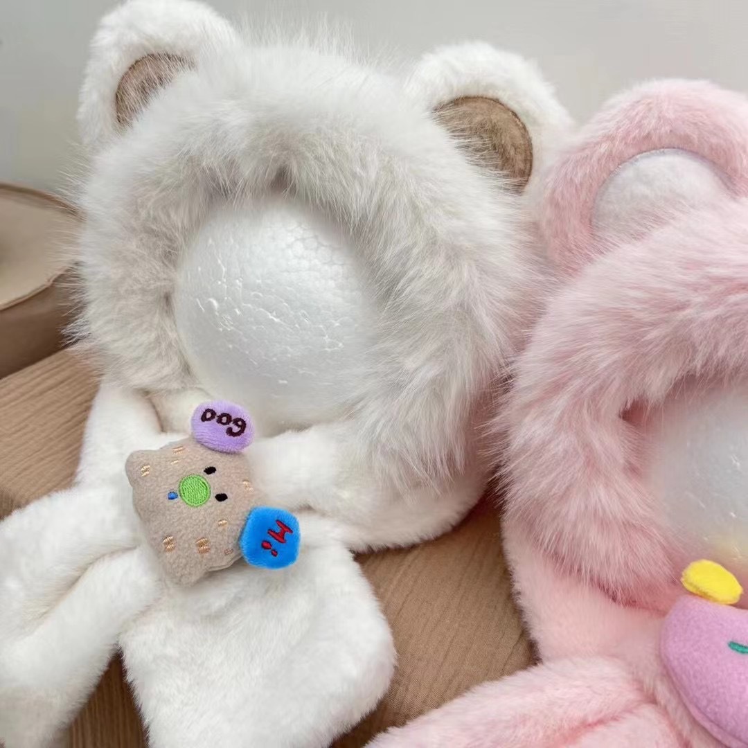 새로운 어린이 모자 소년과 소녀 아기 스카프 한 가을과 겨울 귀여운 두꺼운 따뜻한 아기 만화 귀 보호 모자