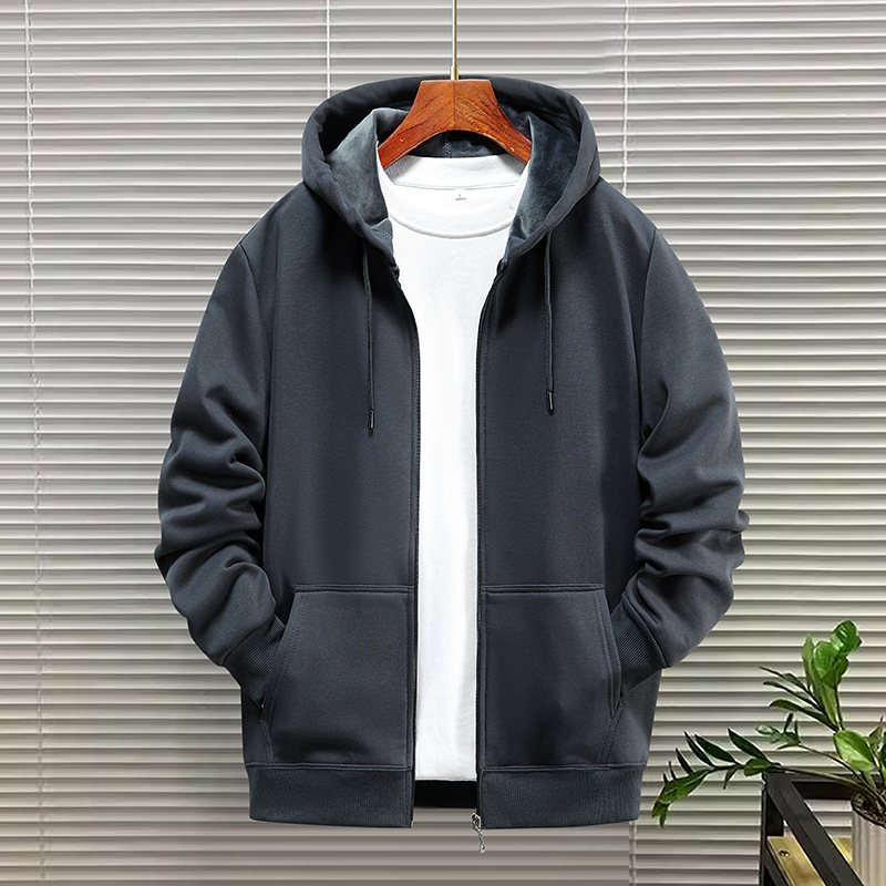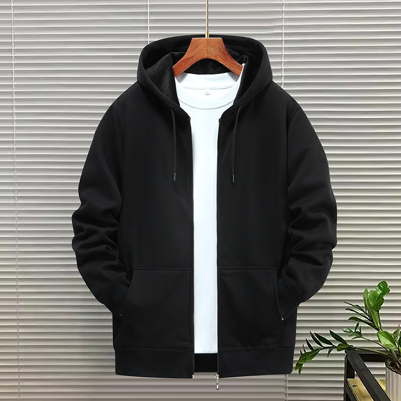 카디건 스웨터 남자 봄 가을 겨울 2024 새로운 도착 지퍼 후디 미국 단색 커플 후드 재킷 코트