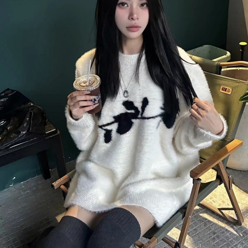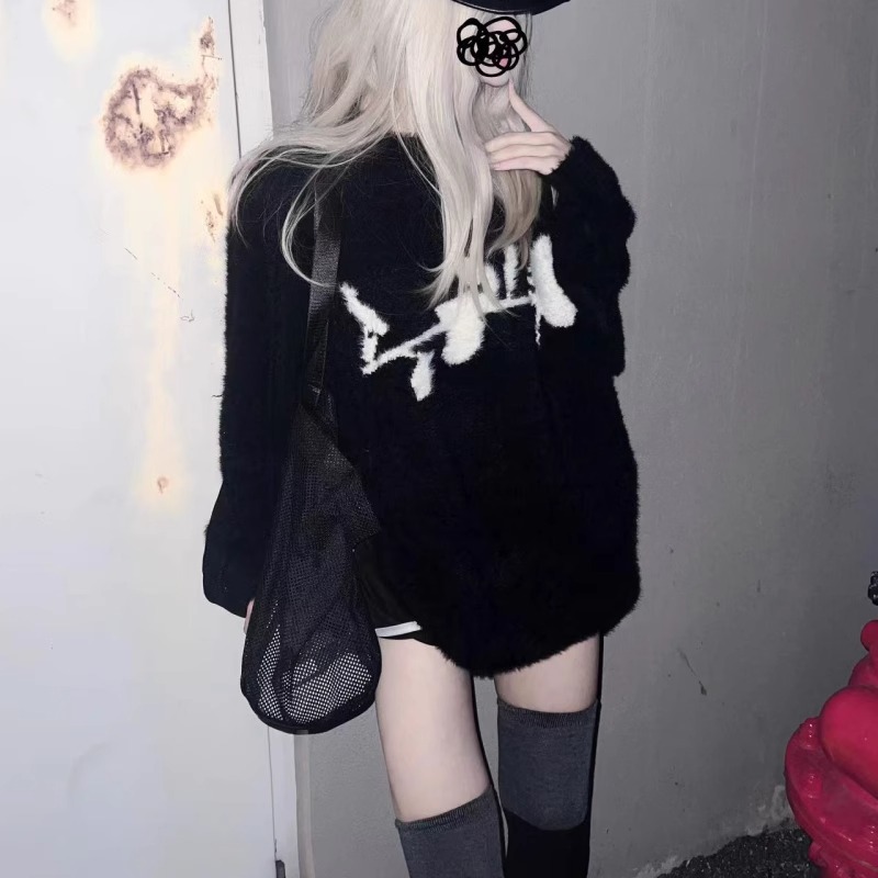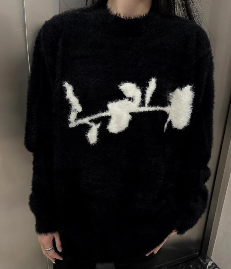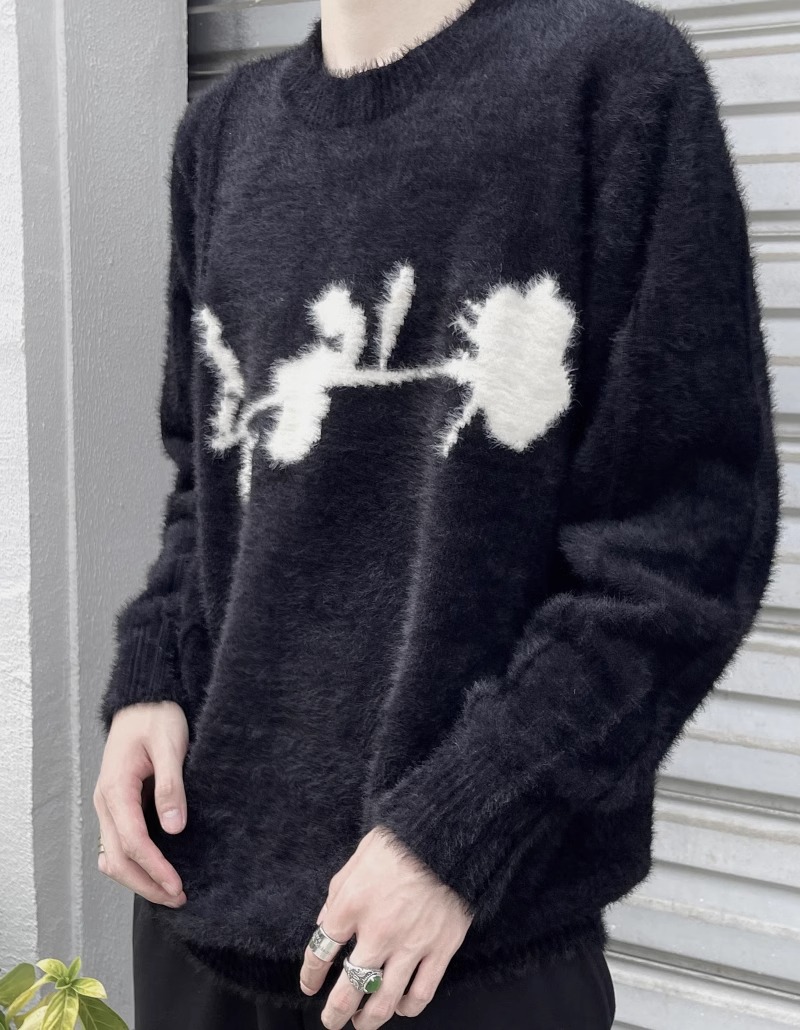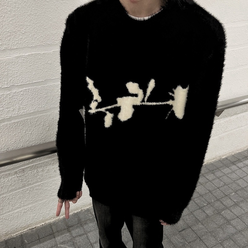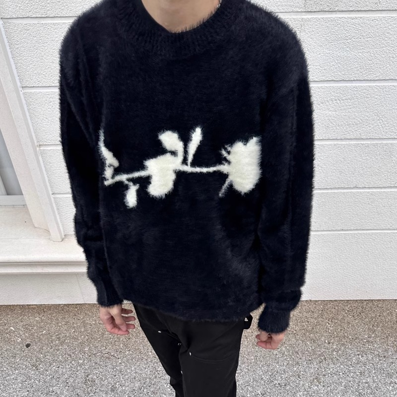가을과 겨울 새로운 하이 엔드 다크 스타일 로즈 자카드 스웨터 남성 디자인 센스 클린 핏 루즈 니트 탑스토어 가기