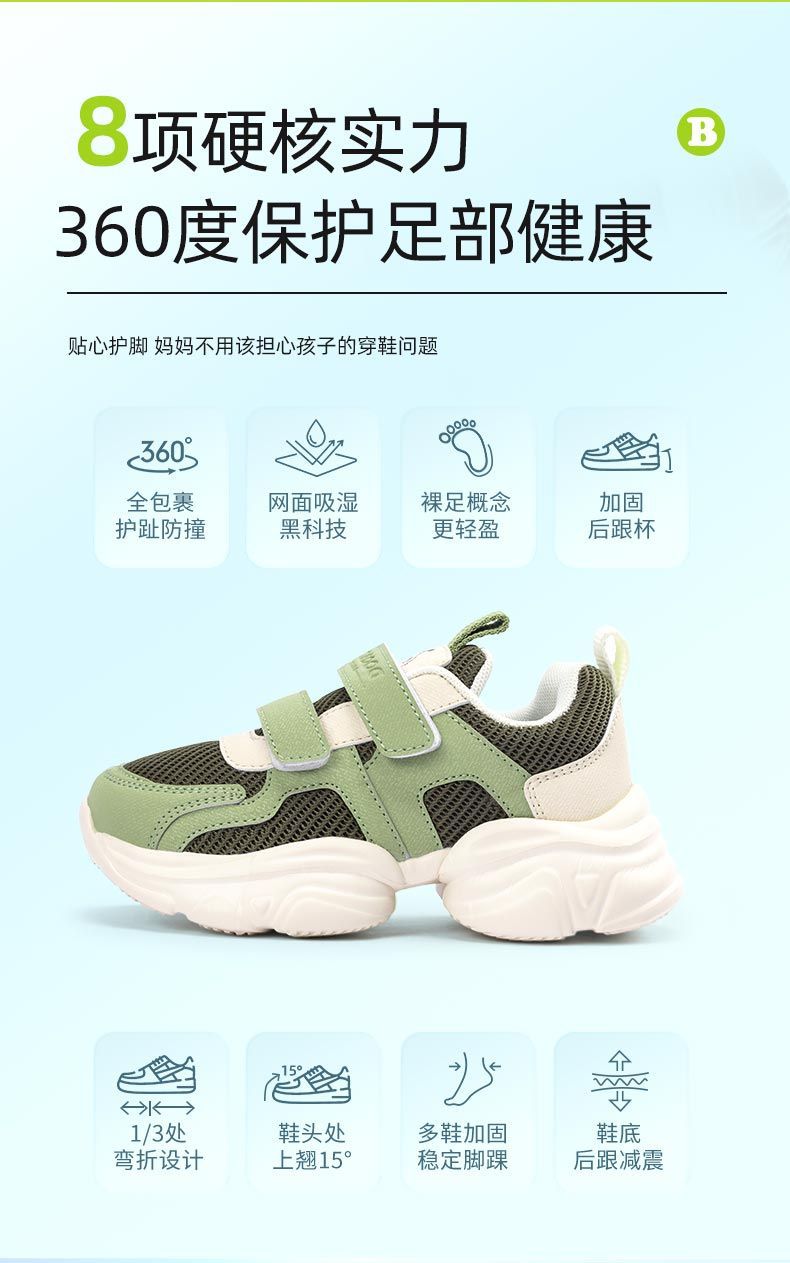 Babu Bean Boys 운동화 봄과 가을 2024 새로운 어린이 신발 메쉬 통기성 중대형 어린이 캐주얼 러닝 슈즈스토어 가기