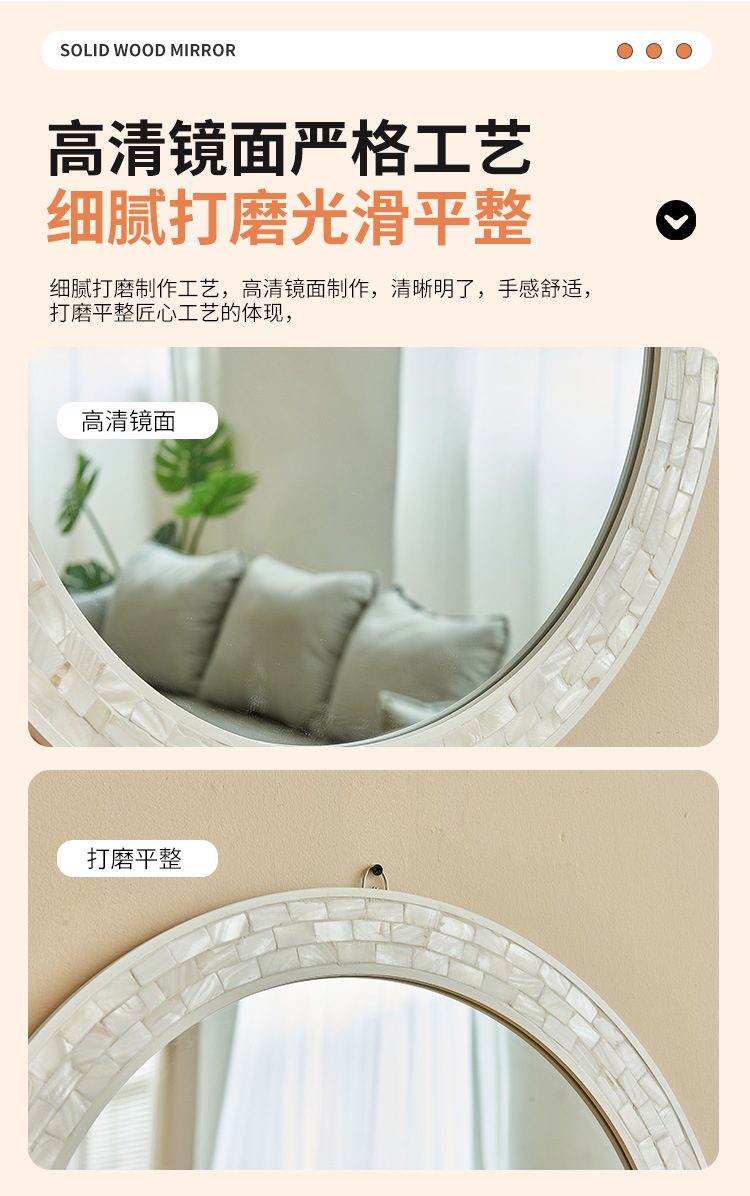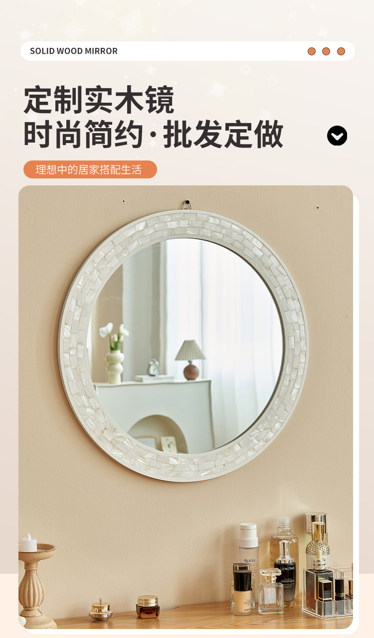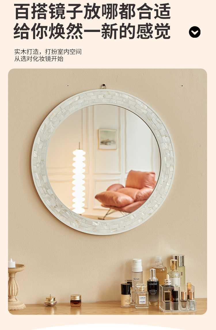 흰색 나비 쉘 욕실 거울 라운드 하이 엔드 입구 벽 매달려 장식 거울 벽 스티커 빌라 클럽 벽 교수형 욕실 거울스토어 가기
