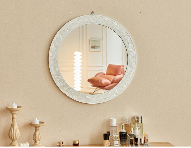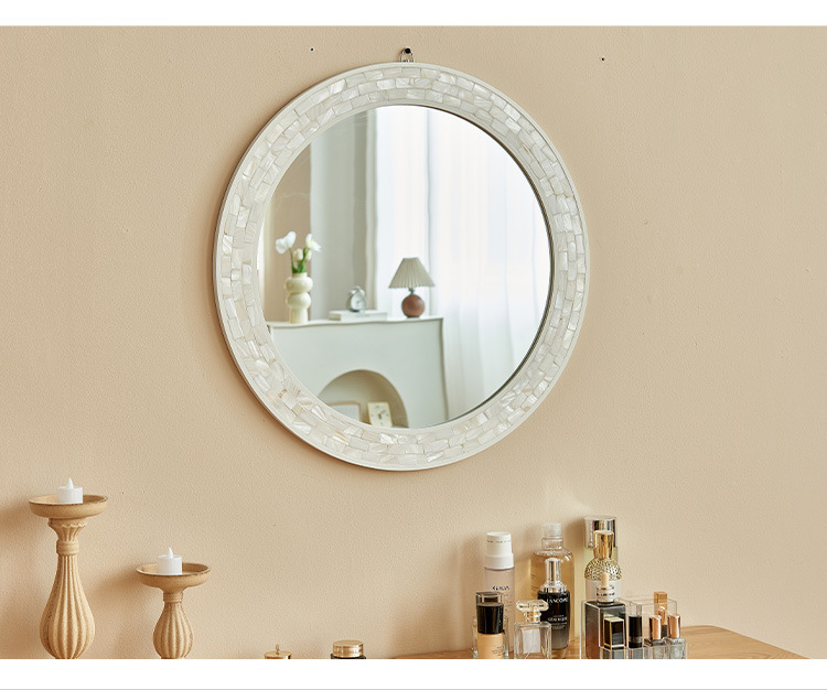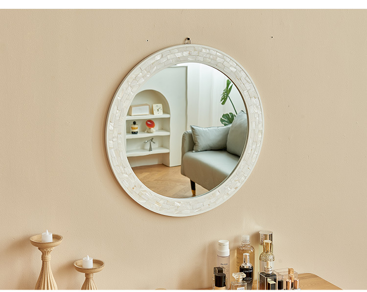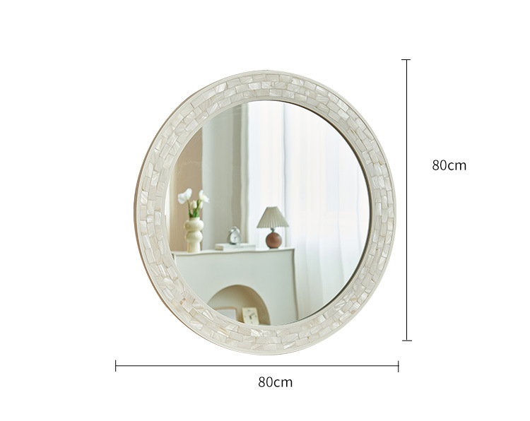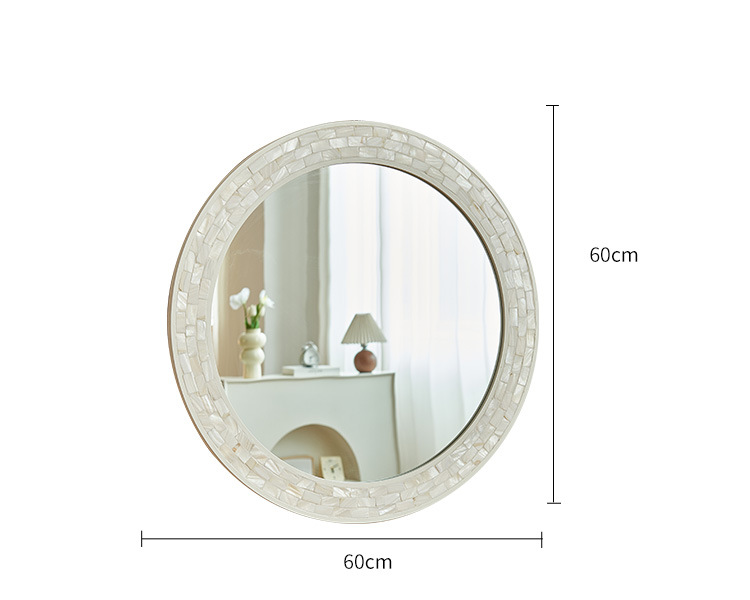 흰색 나비 쉘 욕실 거울 라운드 하이 엔드 입구 벽 매달려 장식 거울 벽 스티커 빌라 클럽 벽 교수형 욕실 거울