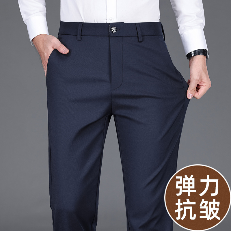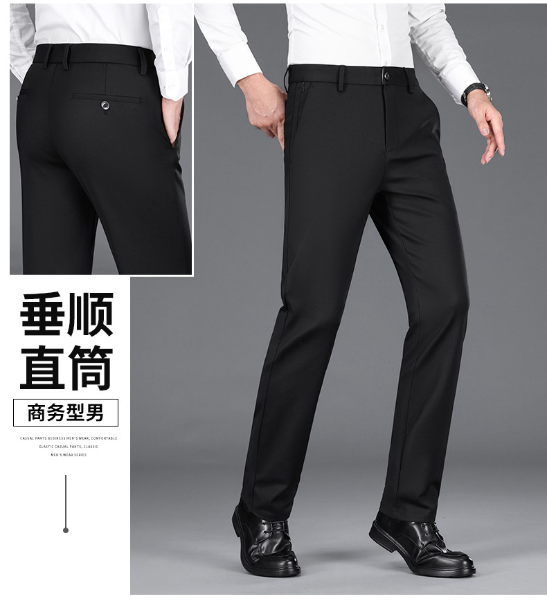 고급형 구김방지 남성 캐주얼 팬츠 2026 봄/가을 스타일의 드레이프 비즈니스 정장 바지 남성용 스트레이트 핏 신축성 있는 롱 팬츠스토어 가기
