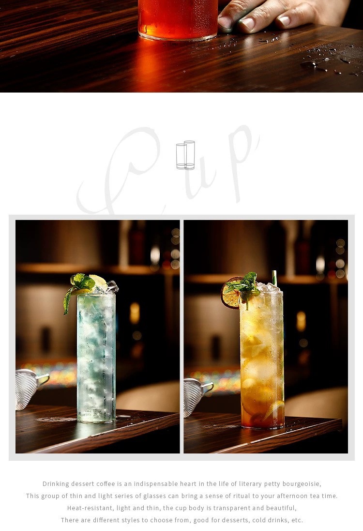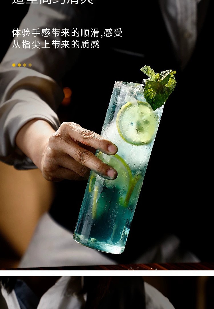가볍고 얇은 스트레이트 유리 칵테일 컵 간단한 긴 음료 컵 콜린 컵 주스 컵 롱 스트레이트 워터 컵 바
