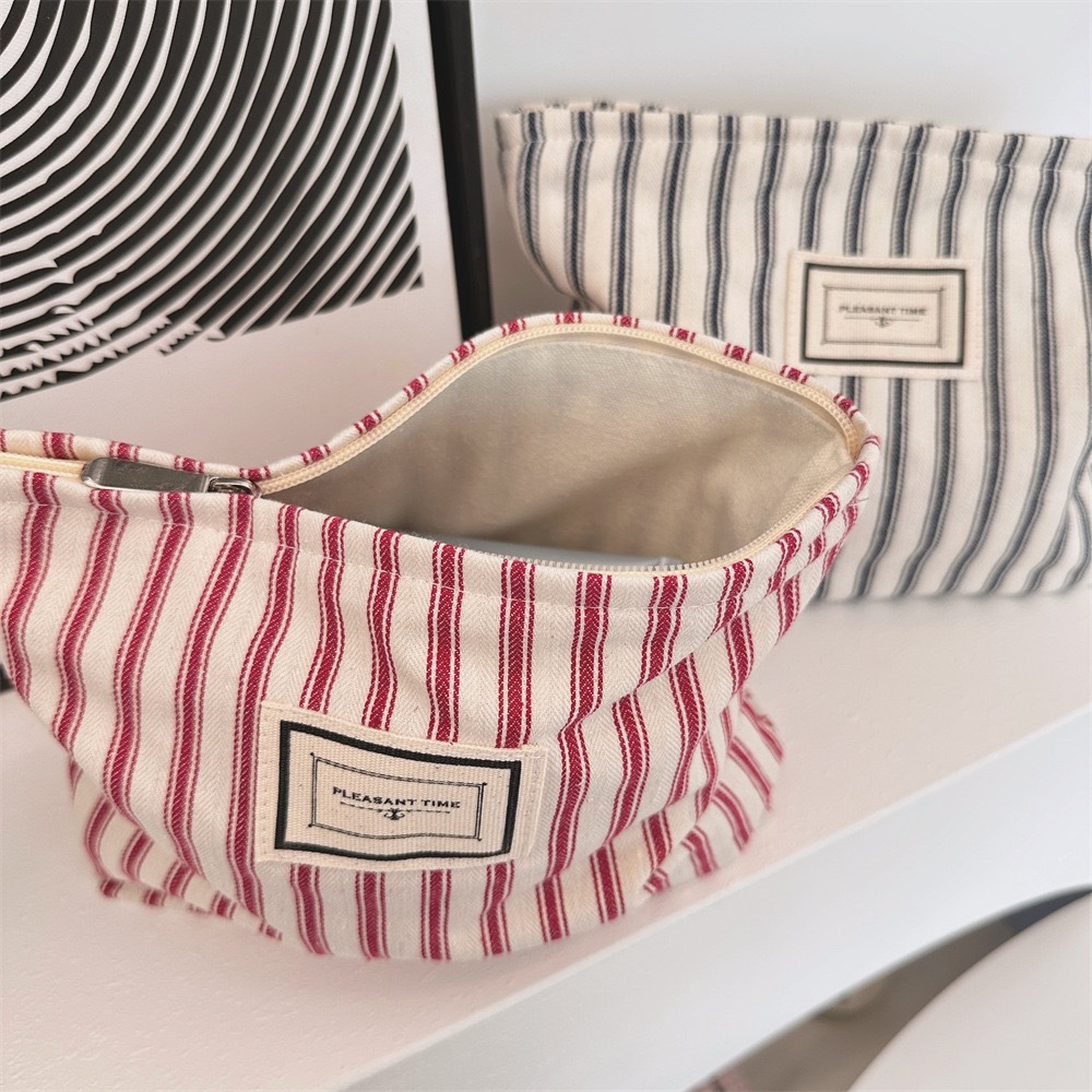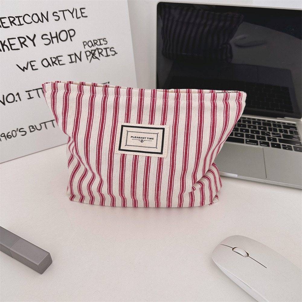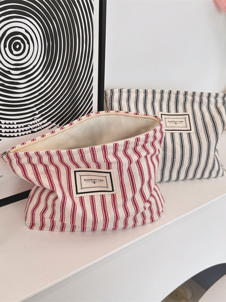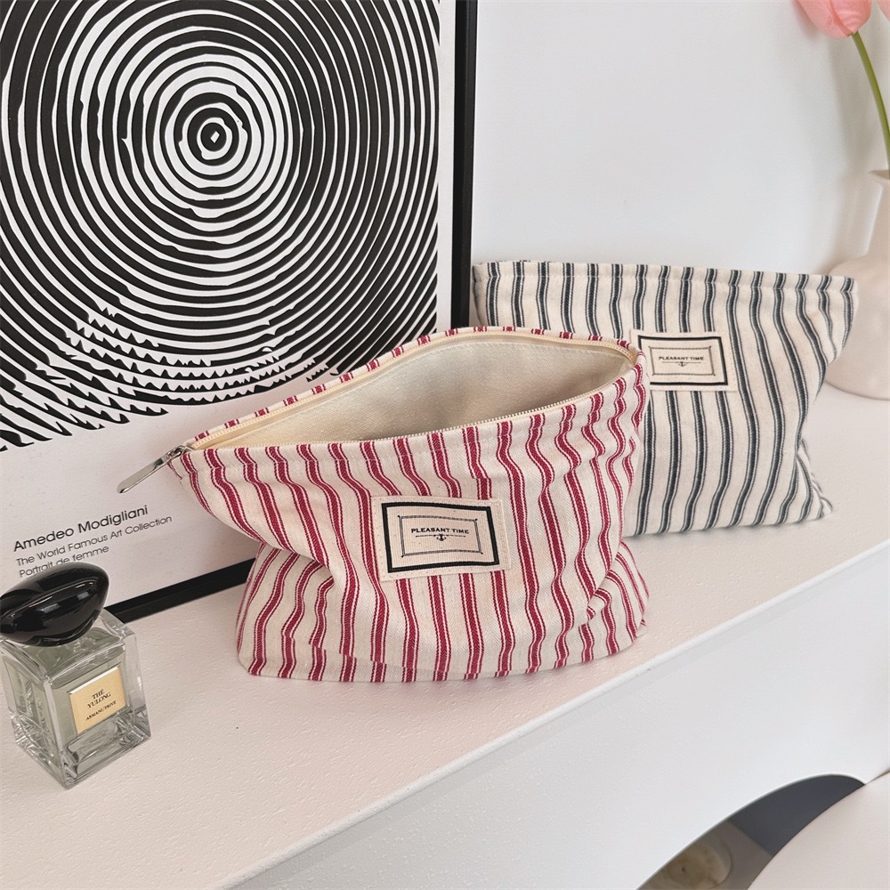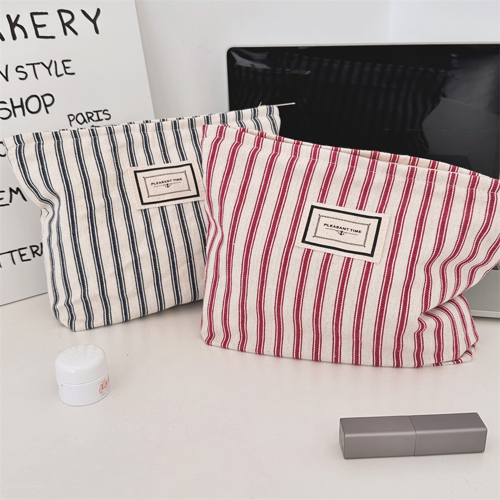 518655 Ins 초가을 빈티지 줄무늬 화장품 가방 대용량 화장실 가방 여행 휴대용 화장품 보관 가방스토어 가기