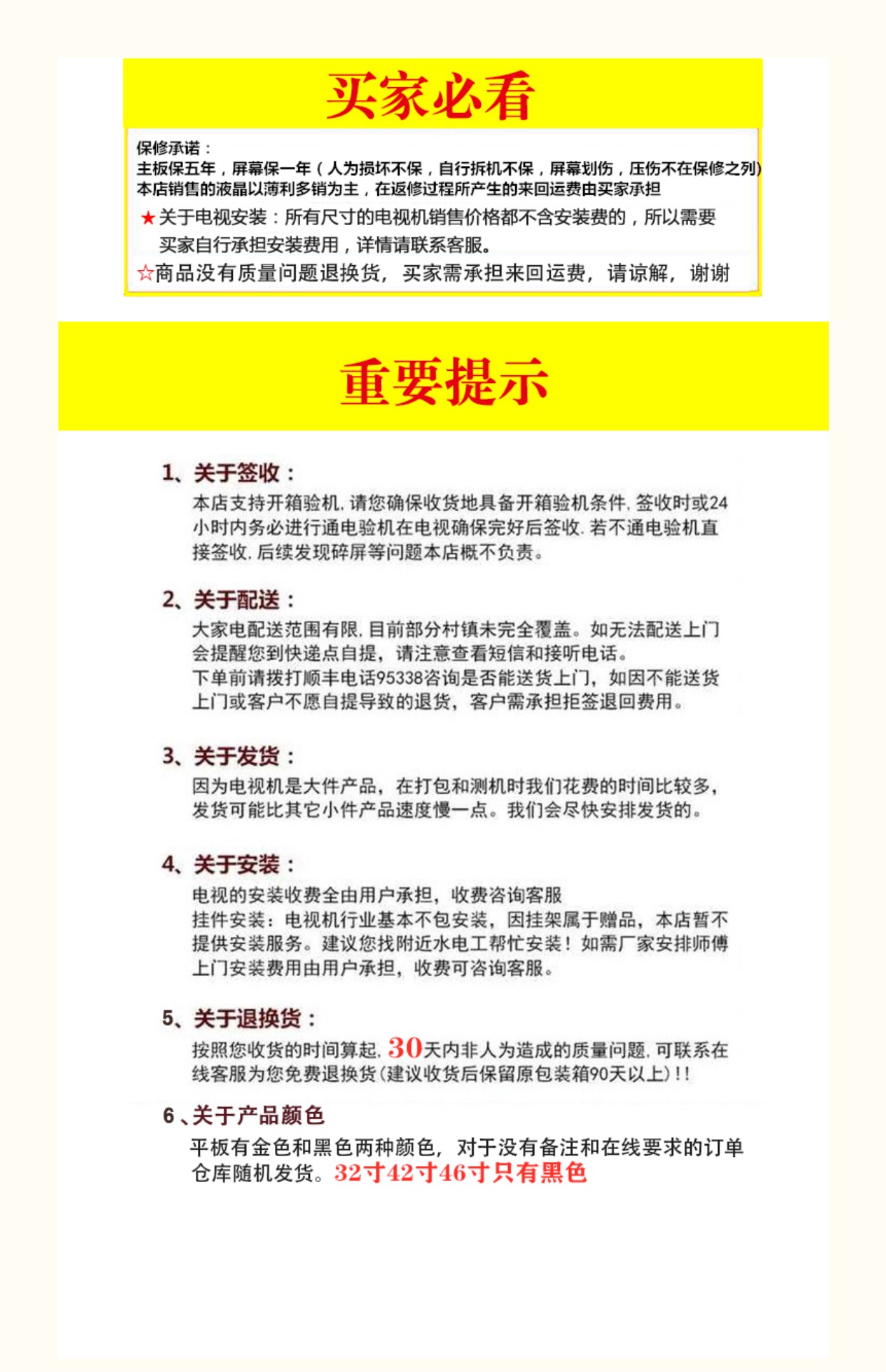 • 32 미국 등급 고화질 TV 버전, 10년 보증 및 1년 교체