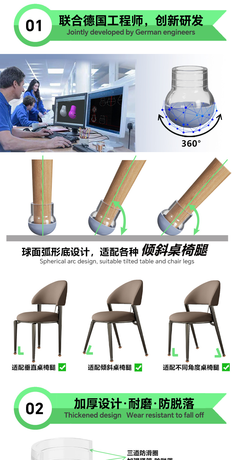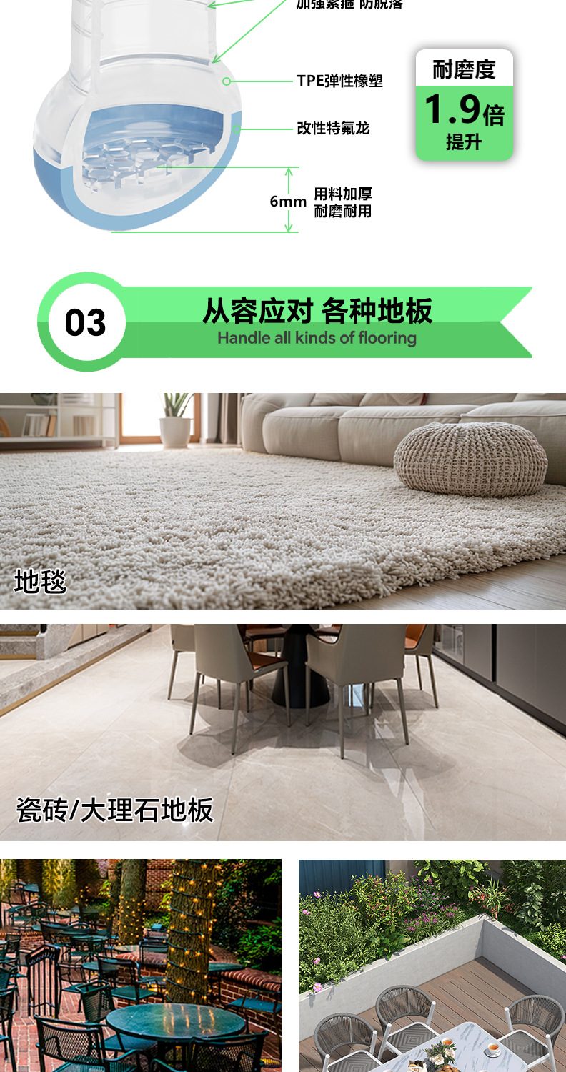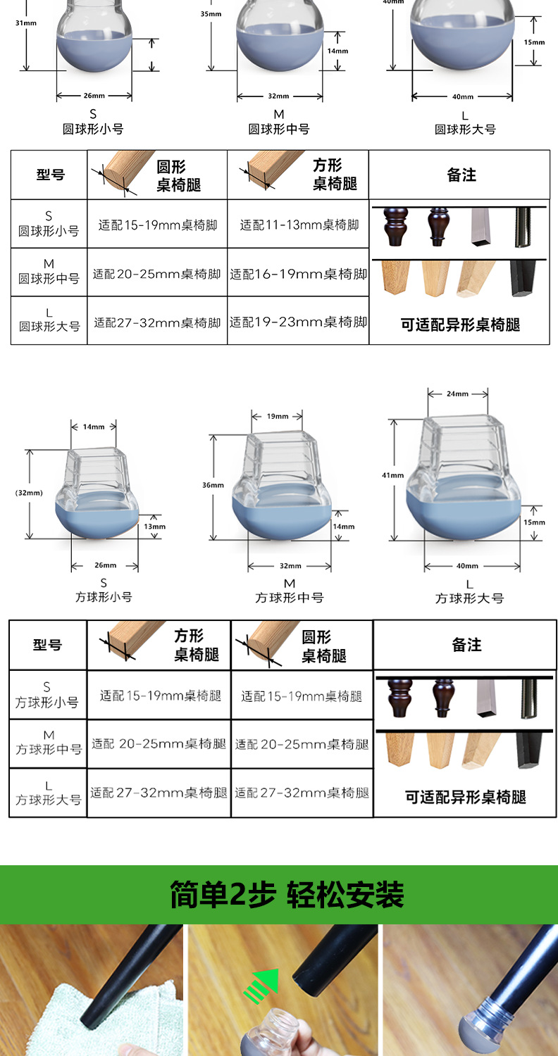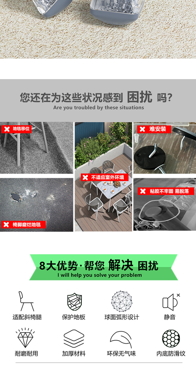 테이블 및 의자 발 패드, 의자 발 커버, 테플론 카펫 슬라이딩 패드, 바닥을 보호하는 내마모성 두꺼운 실리콘 가구 발 패드스토어 가기