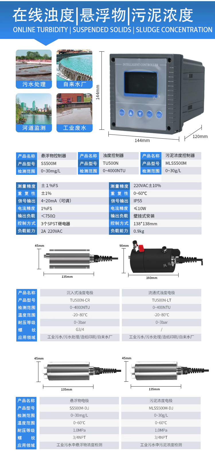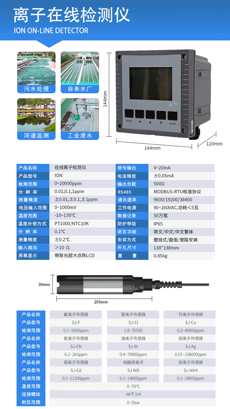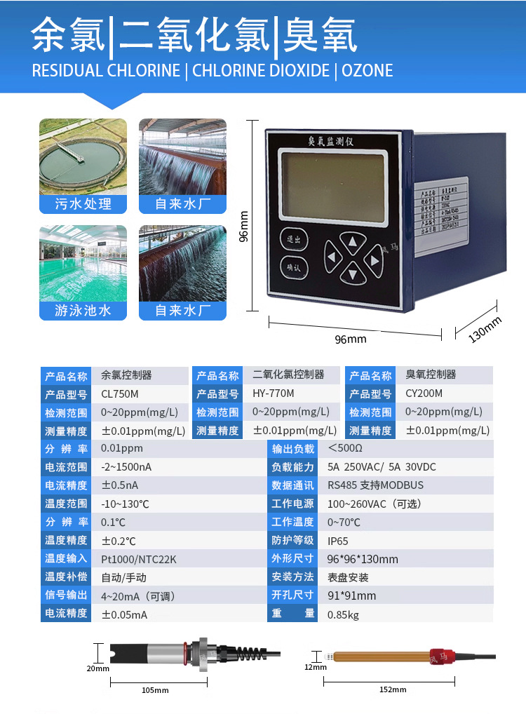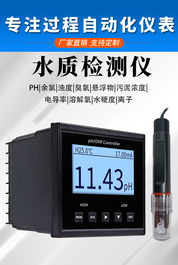 산업 온라인 PH 미터 탁도 잔류 염소 전도도 오존 탐지기 하수 수질 탐지기