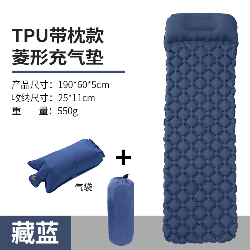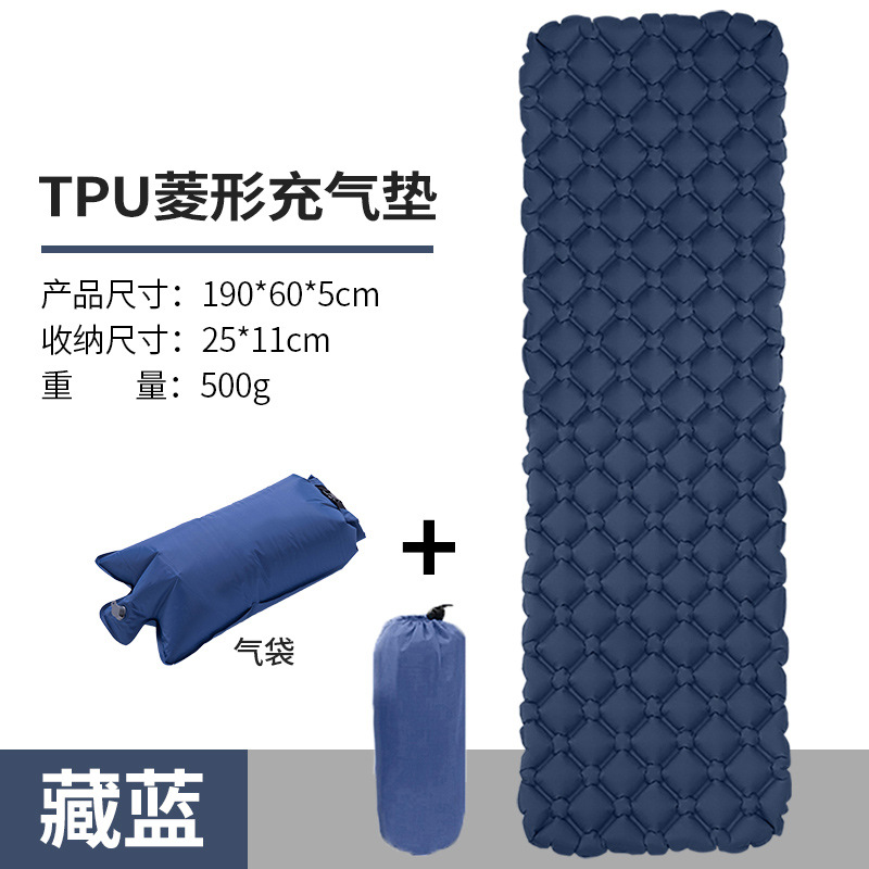 • ↢↢↢표준 모델 - TPU 다이아몬드 모양의 베개가 있는 풍선 매트리스(네이비 블루) + 풍선 가방↴↴↴