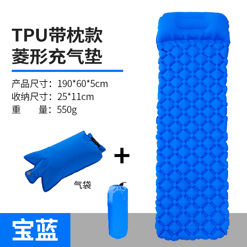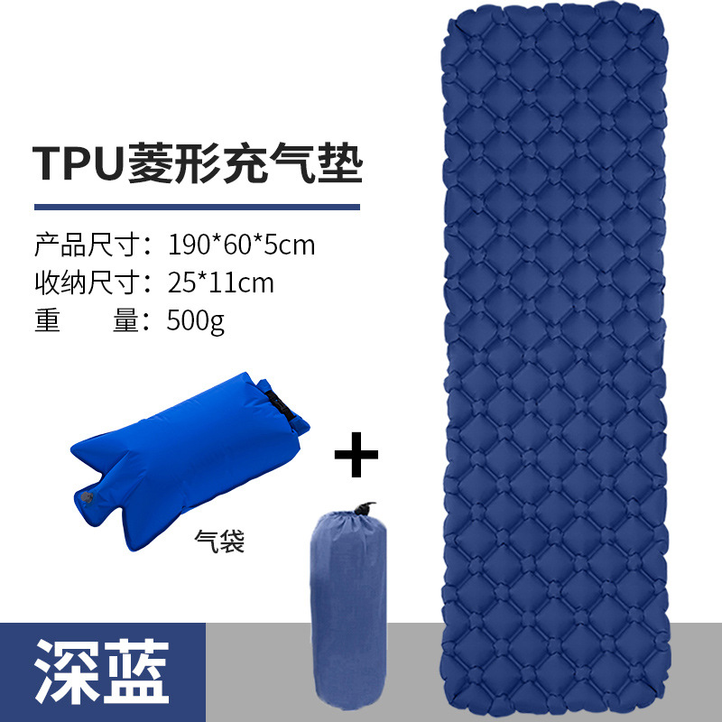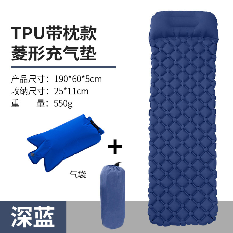 • ↢↢↢표준 모델 - TPU 다이아몬드 모양의 베개가 있는 풍선 매트리스(진한 파란색) + 풍선 가방↴↴↴