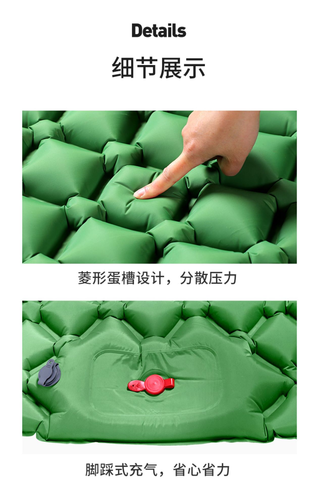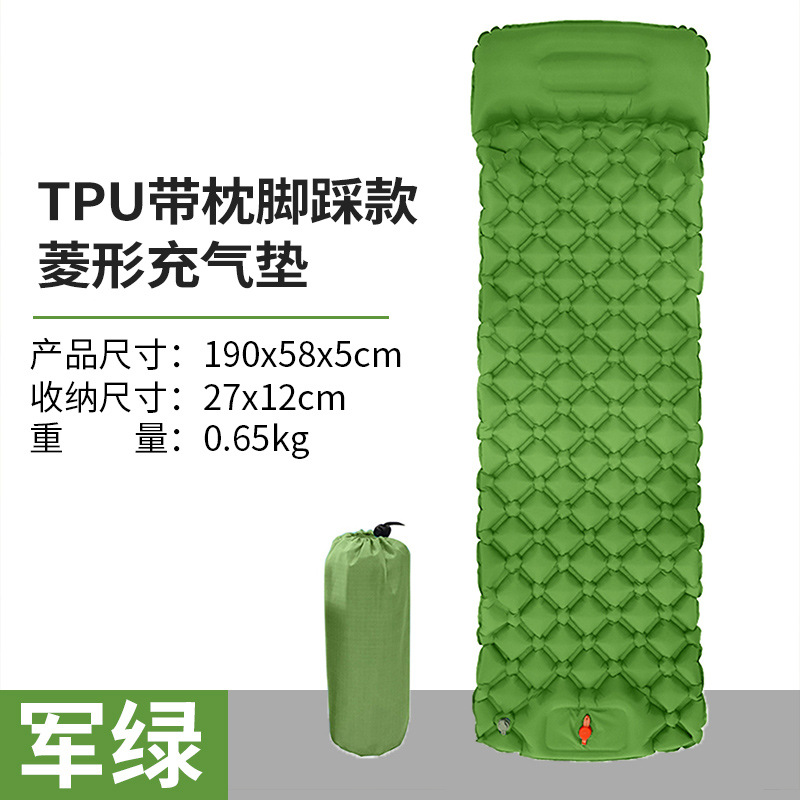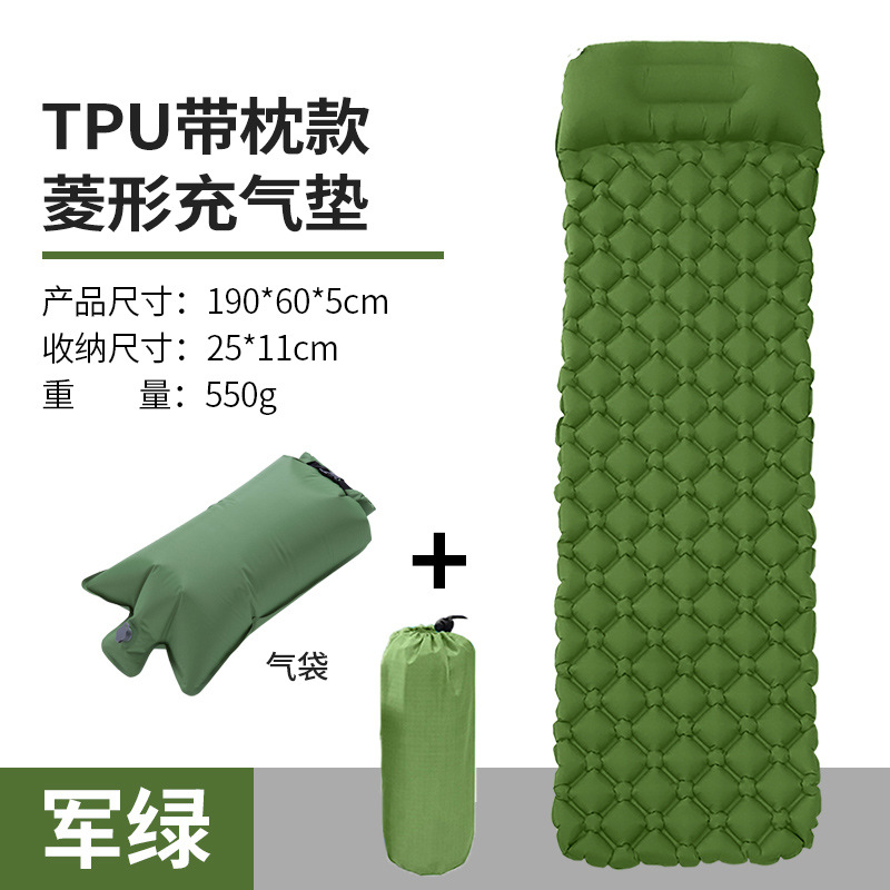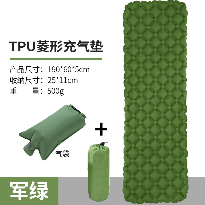 • ↢↢↢표준 모델 - TPU 다이아몬드 모양의 베개가 있는 풍선 매트(밀리터리 그린) + 풍선 가방↴↴↴