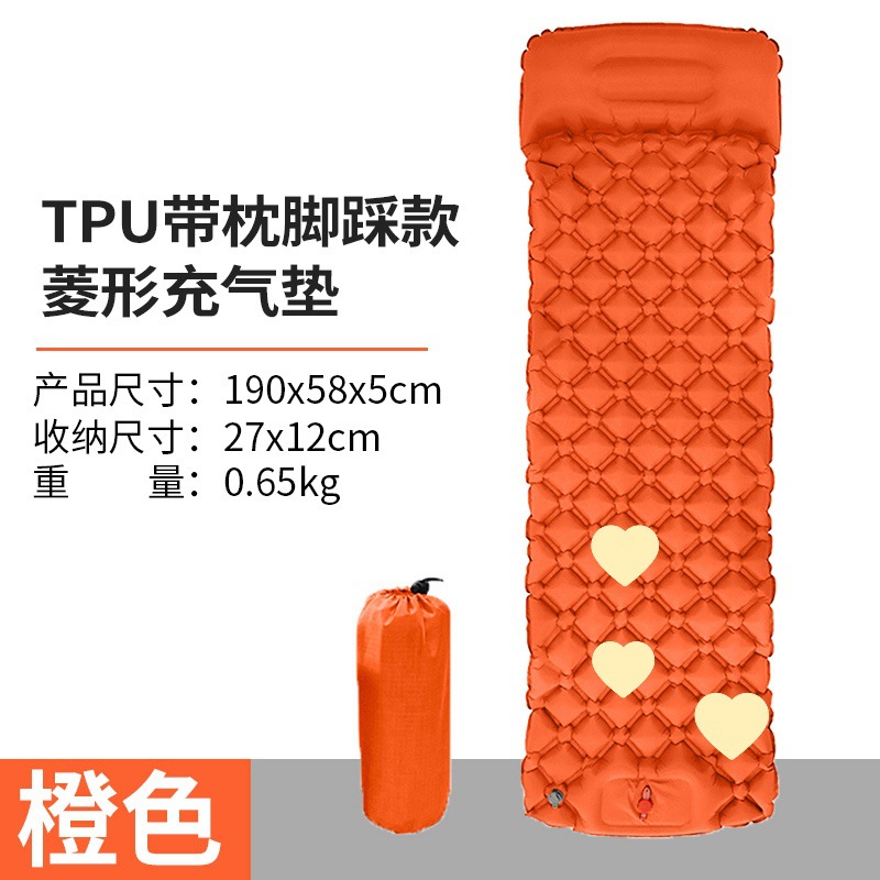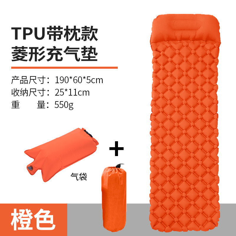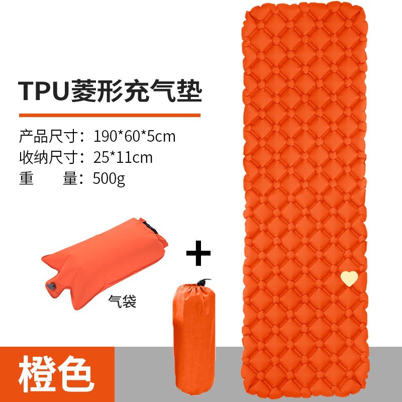 • ↢↢↢표준 모델 - TPU 다이아몬드 모양의 베개가 있는 풍선 매트리스(주황색) + 풍선 가방↴↴↴