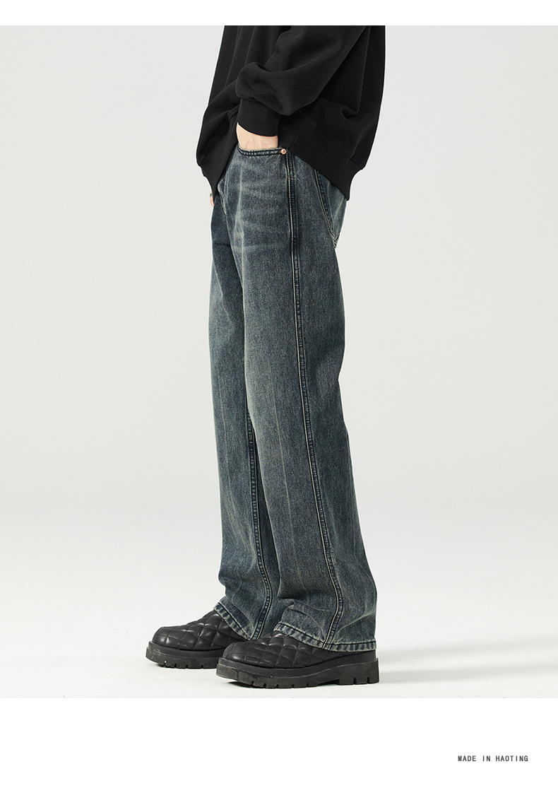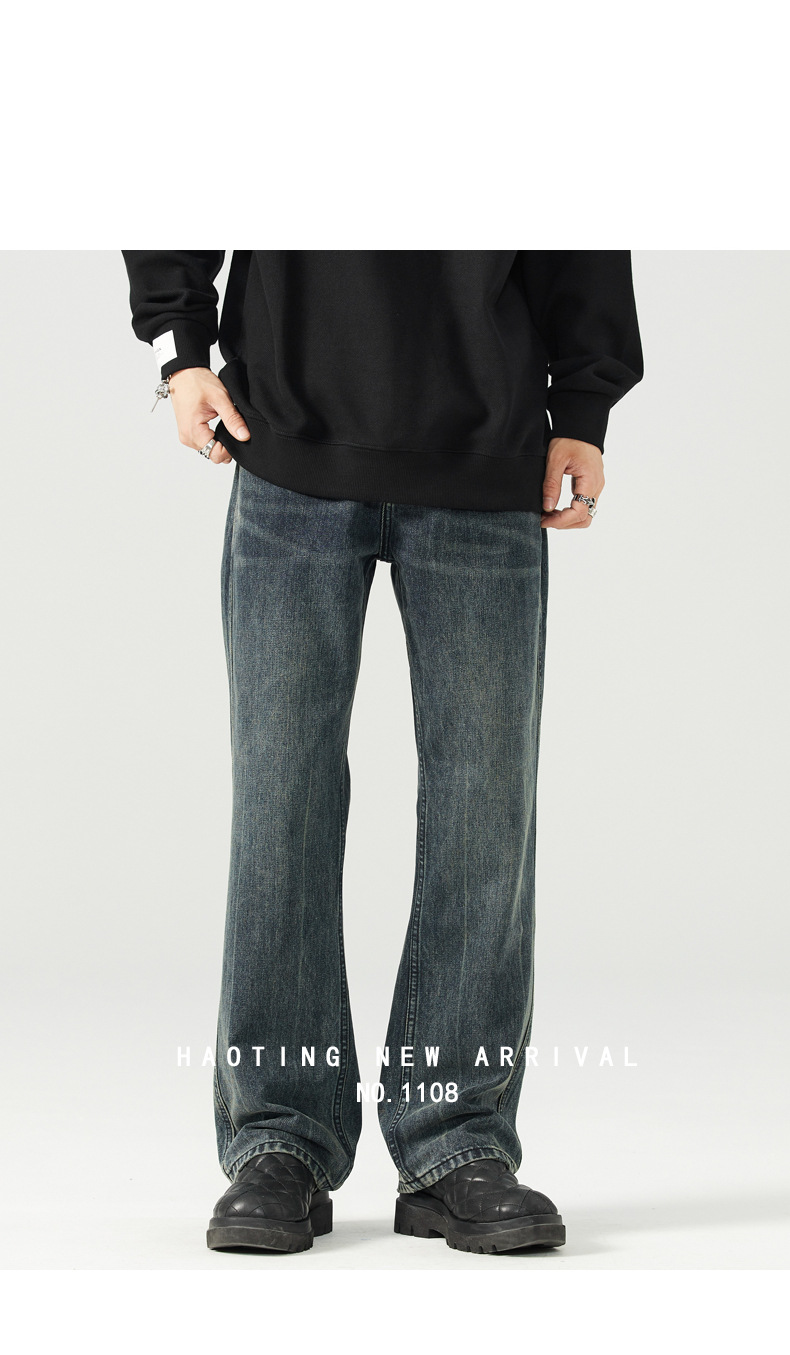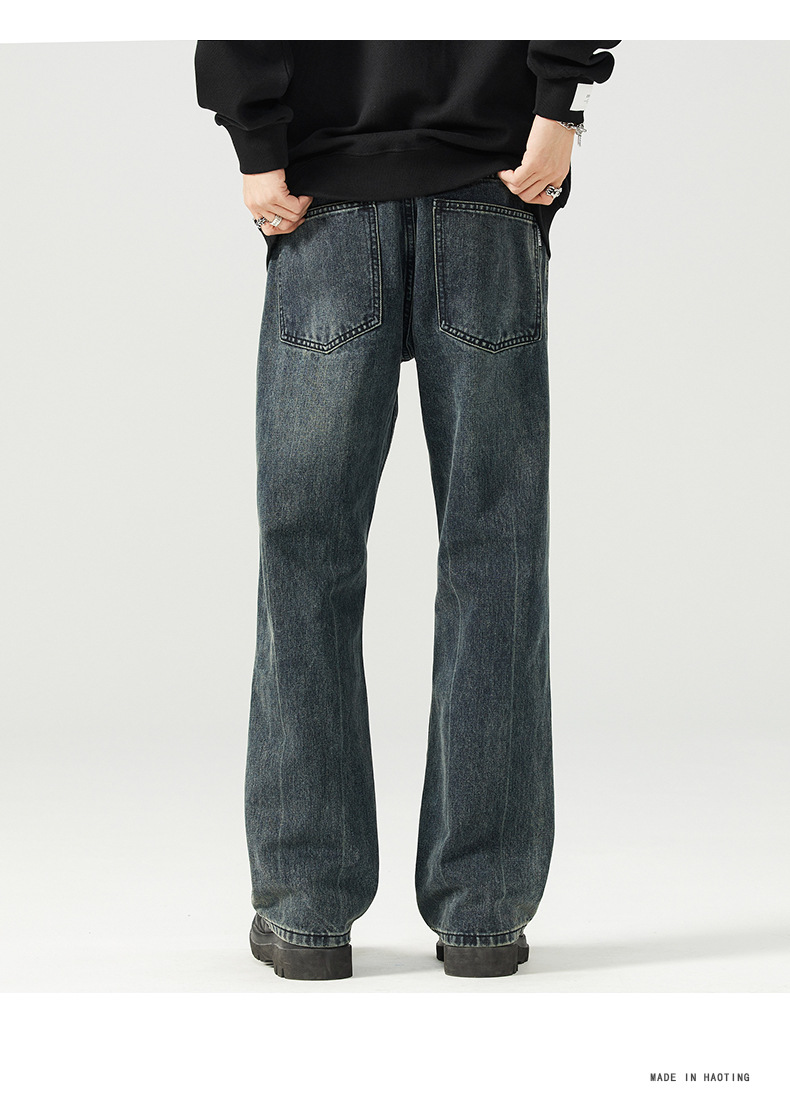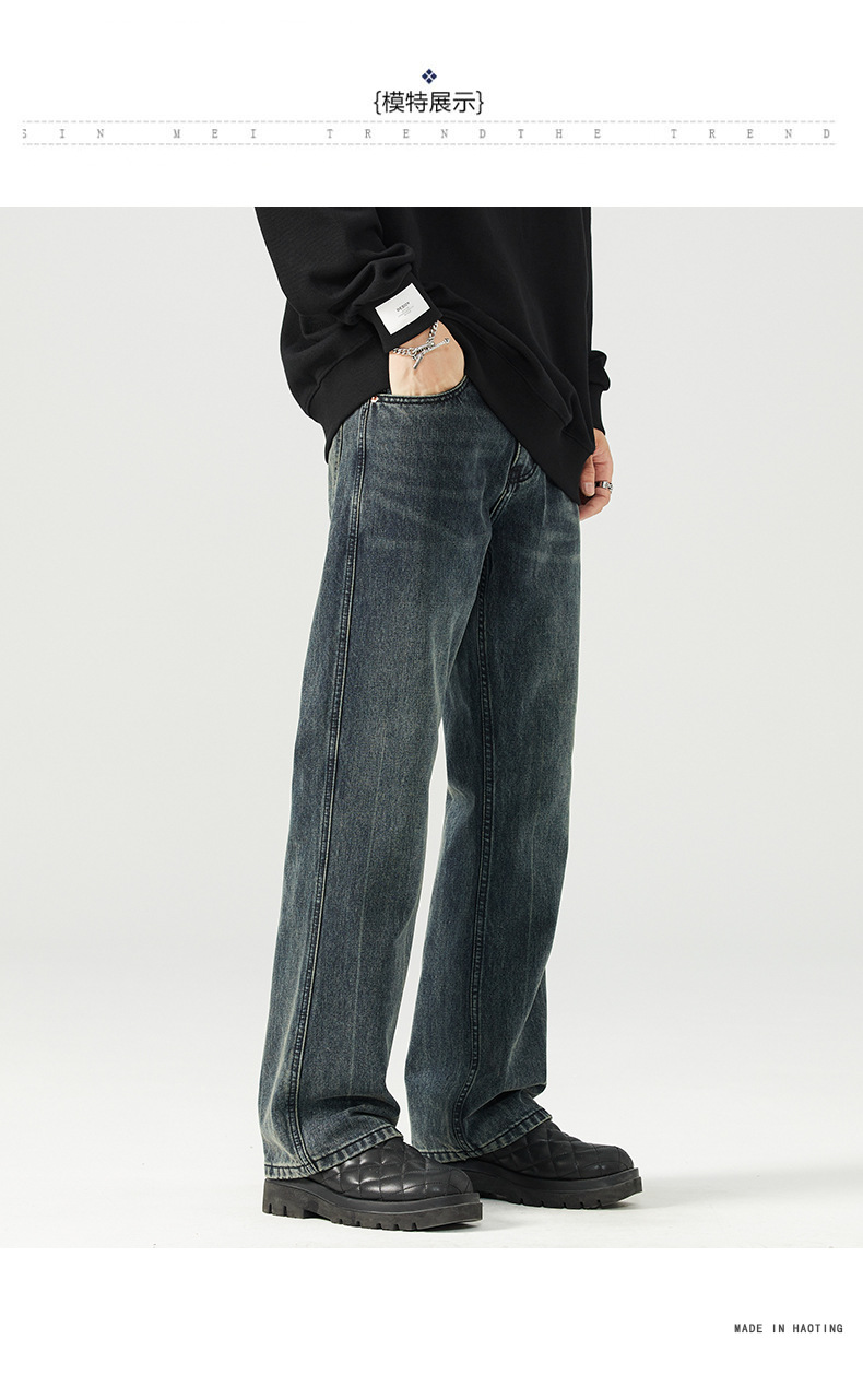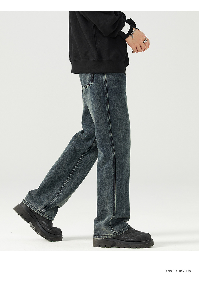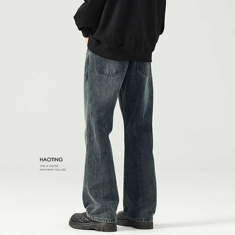 가을 신상품 마이크로 플레어 레트로 워싱 진 남성 캐주얼 루즈핏 빅사이즈 스트레이트 트렌디 와이드 팬츠스토어 가기