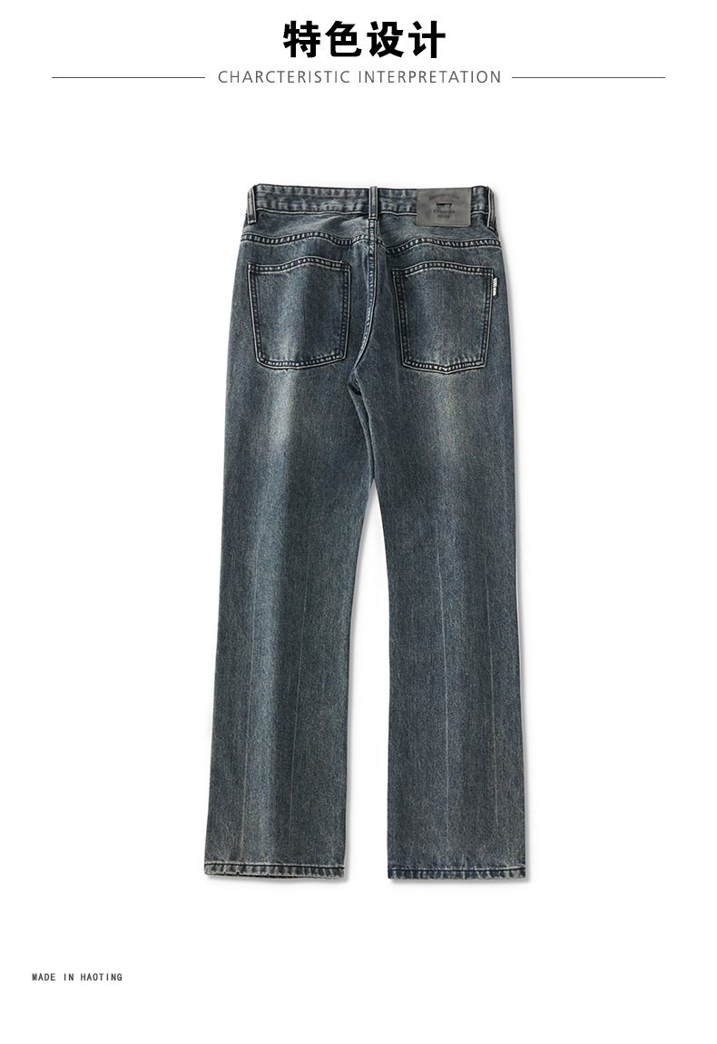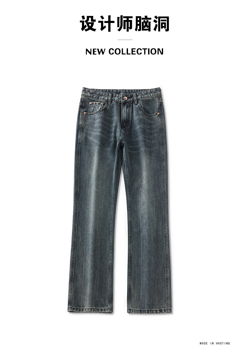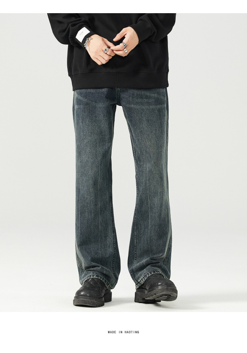 가을 신상품 마이크로 플레어 레트로 워싱 진 남성 캐주얼 루즈핏 빅사이즈 스트레이트 트렌디 와이드 팬츠