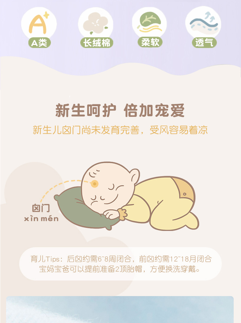 봄과 가을에 태어난 아기 면화 모자 뼈없는 아기 0-3 개월 된 더블 레이어 태아 모자 폰타 넬 모자 6스토어 가기