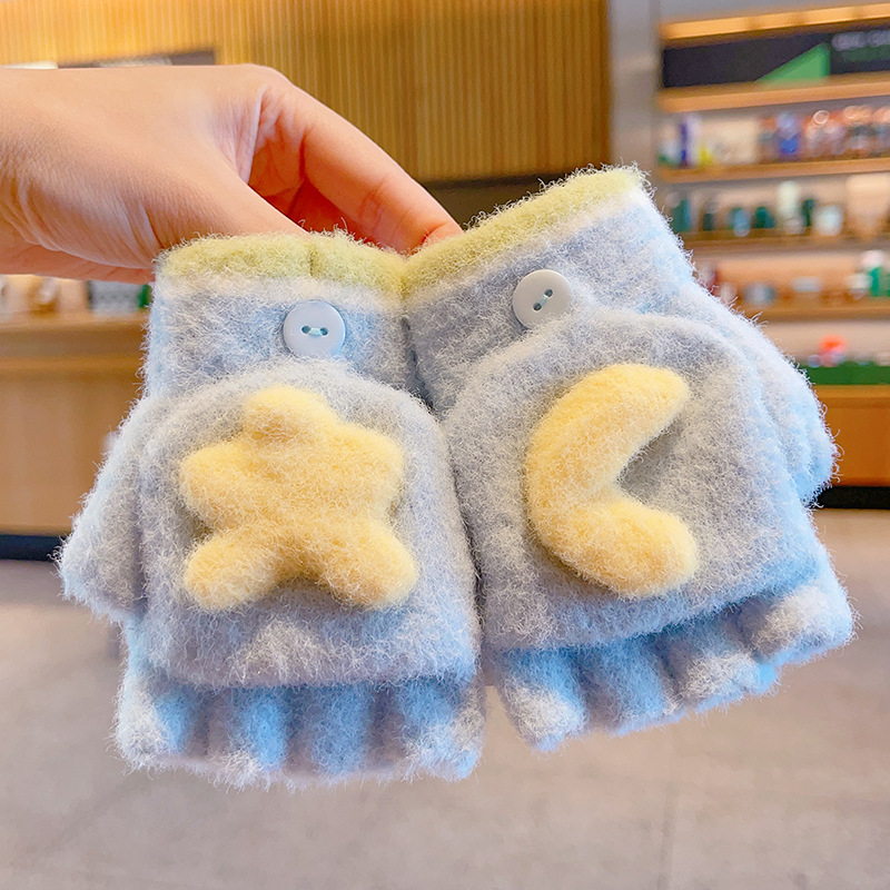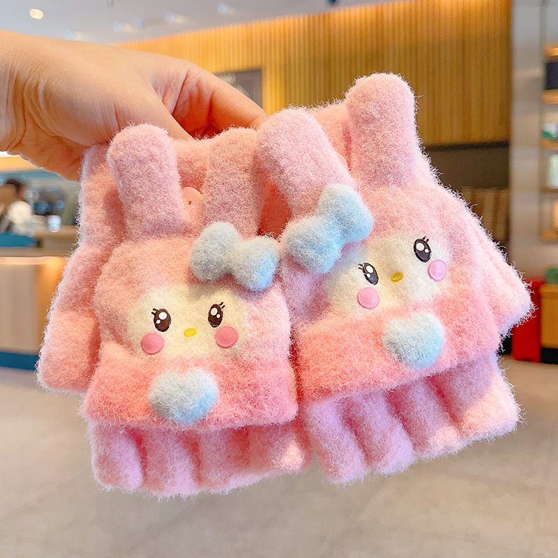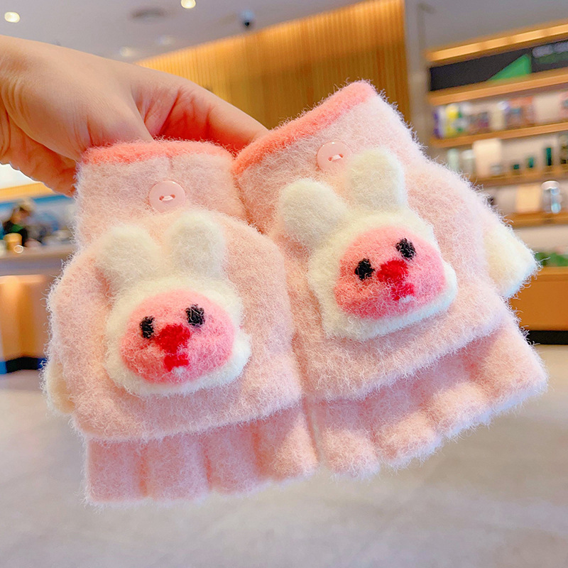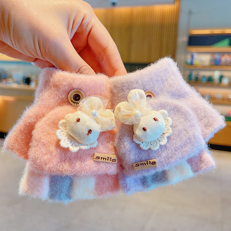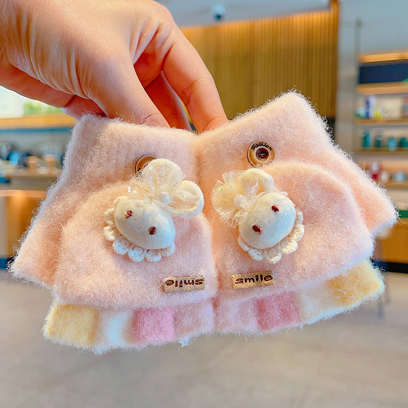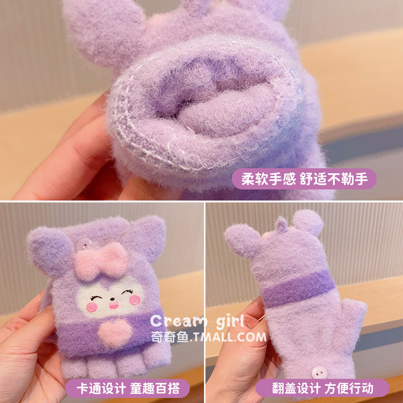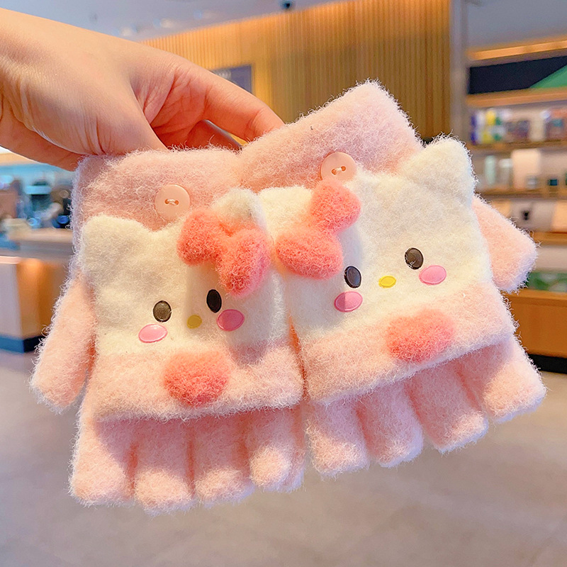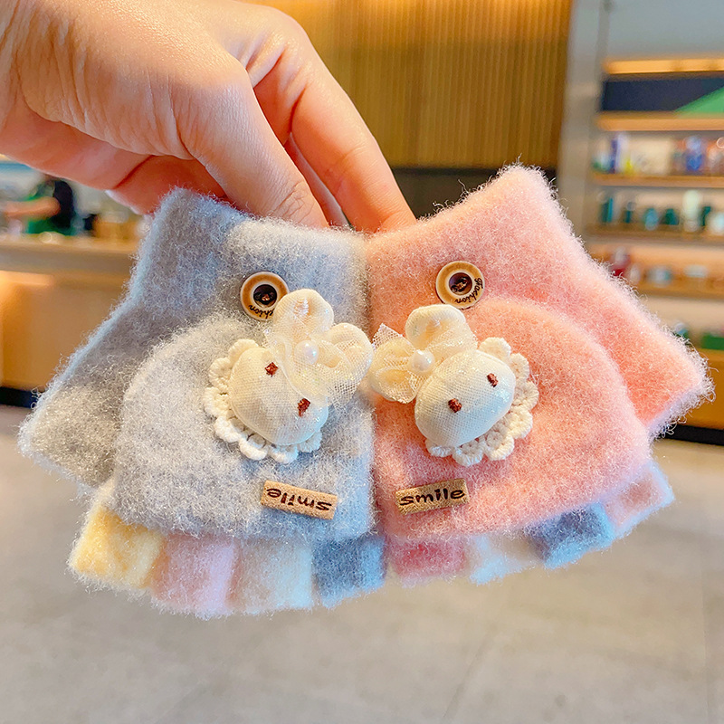 아기의 하프 핑거 장갑 가을과 겨울 아기 따뜻한 플립 니트 손가락 Leaky 소녀의 손가락 만화 2024 새로운스토어 가기