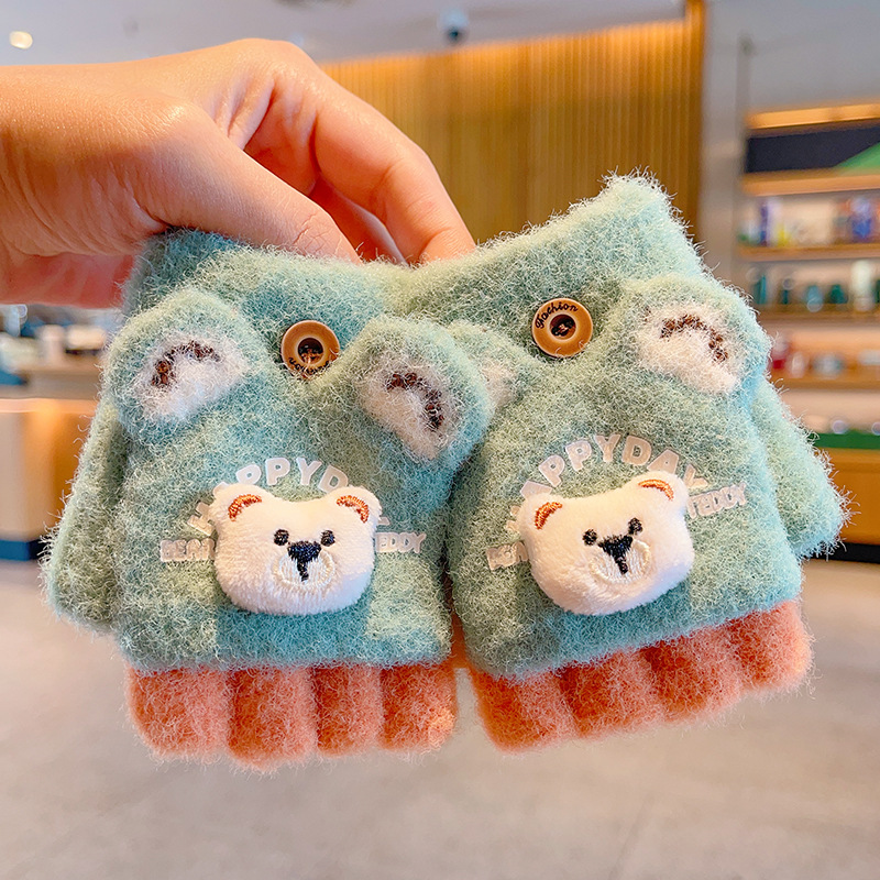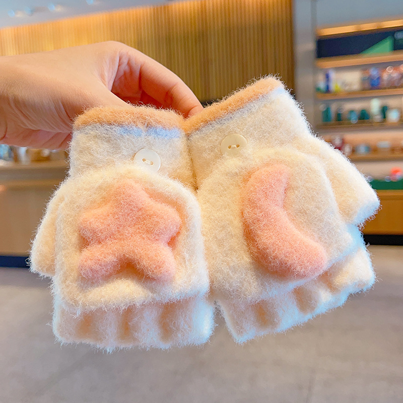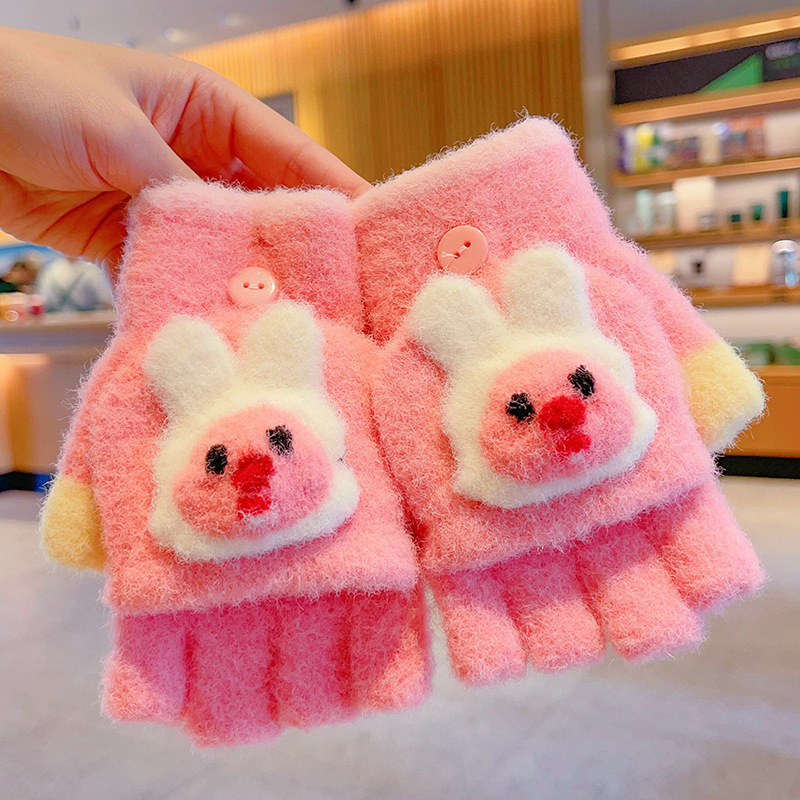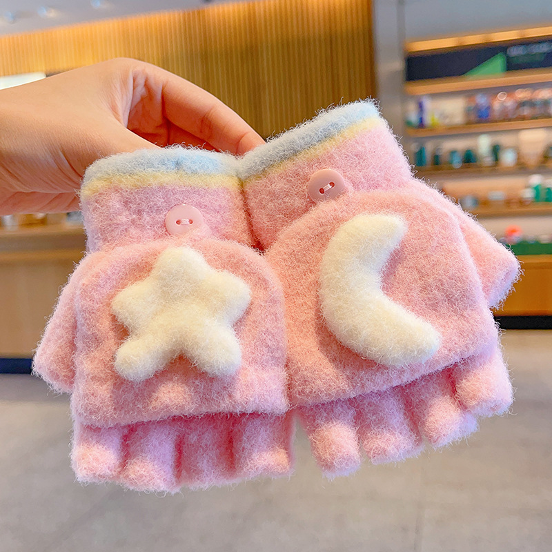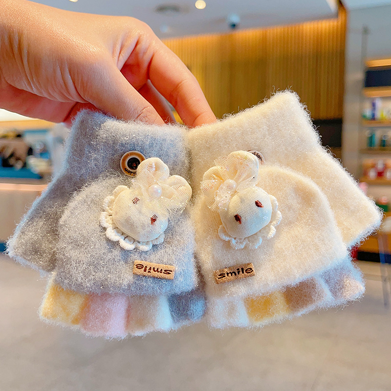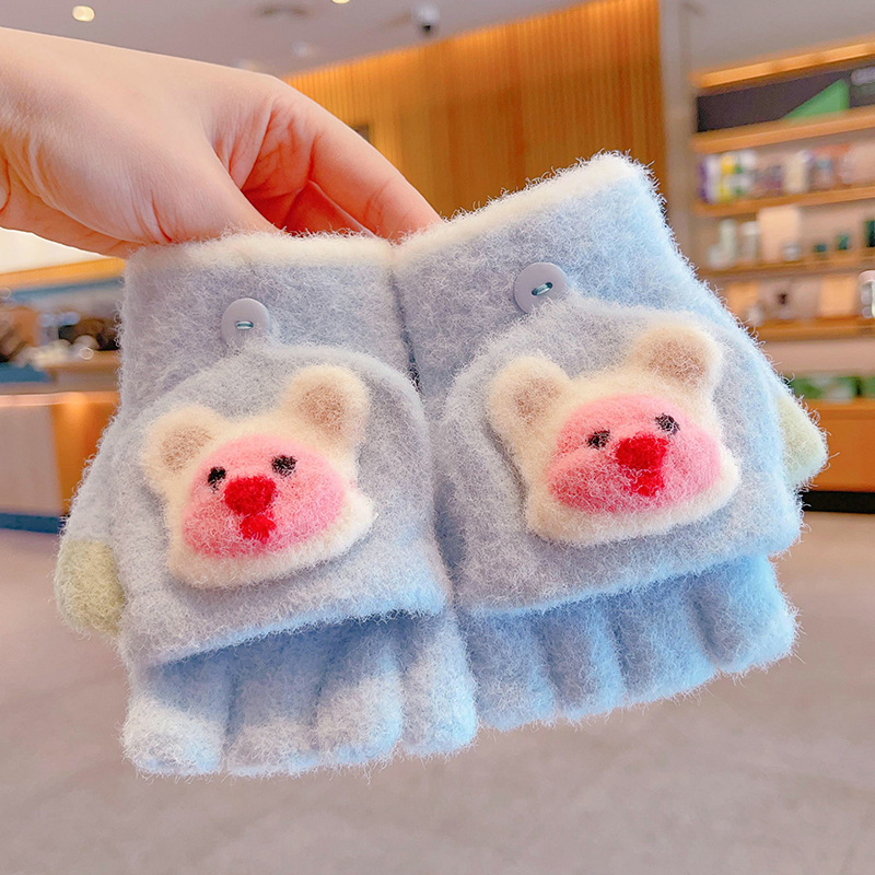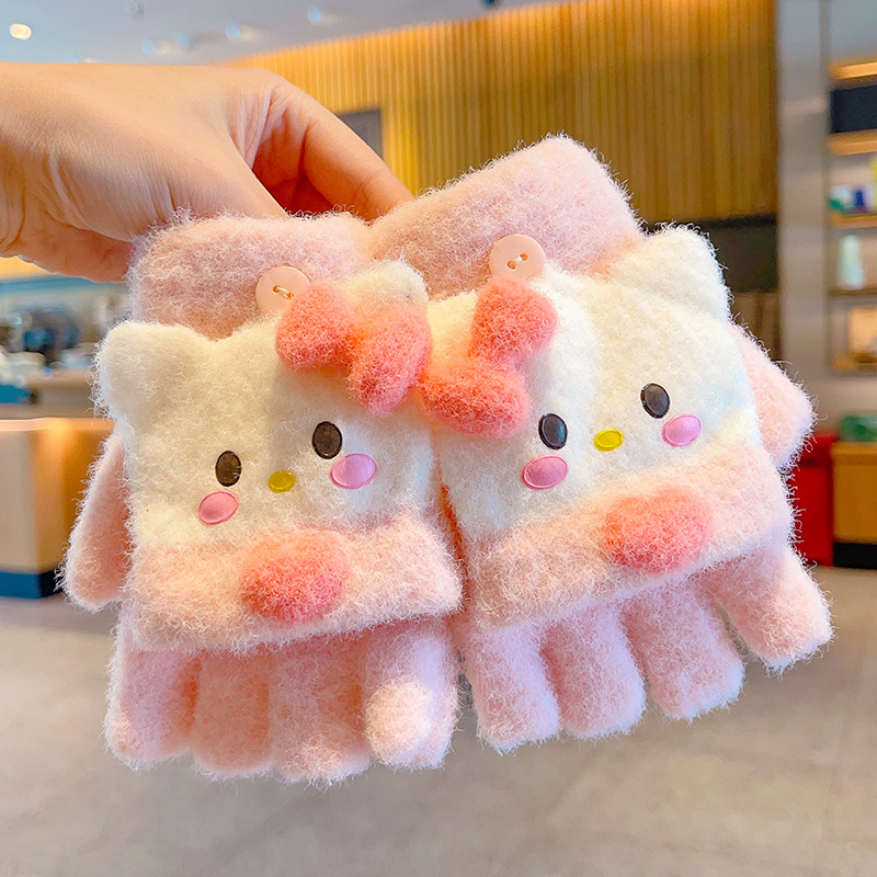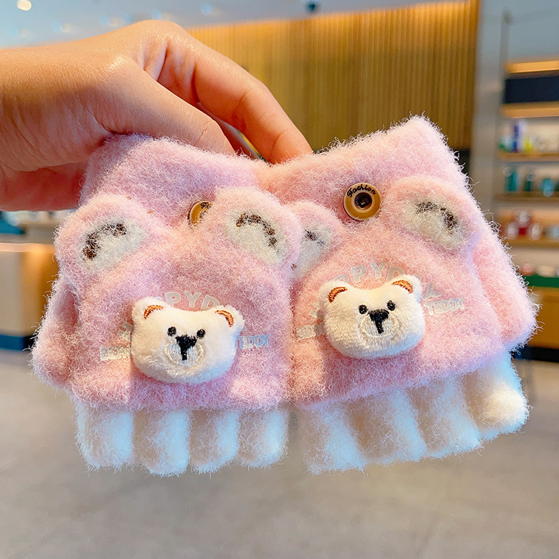 아기의 하프 핑거 장갑 가을과 겨울 아기 따뜻한 플립 니트 손가락 Leaky 소녀의 손가락 만화 2024 새로운스토어 가기