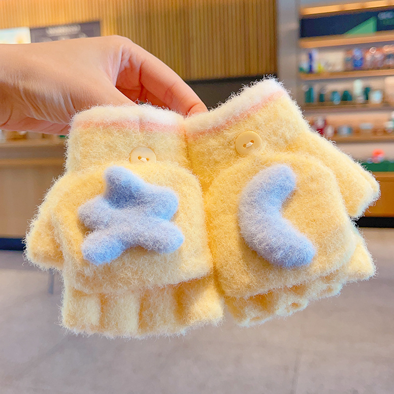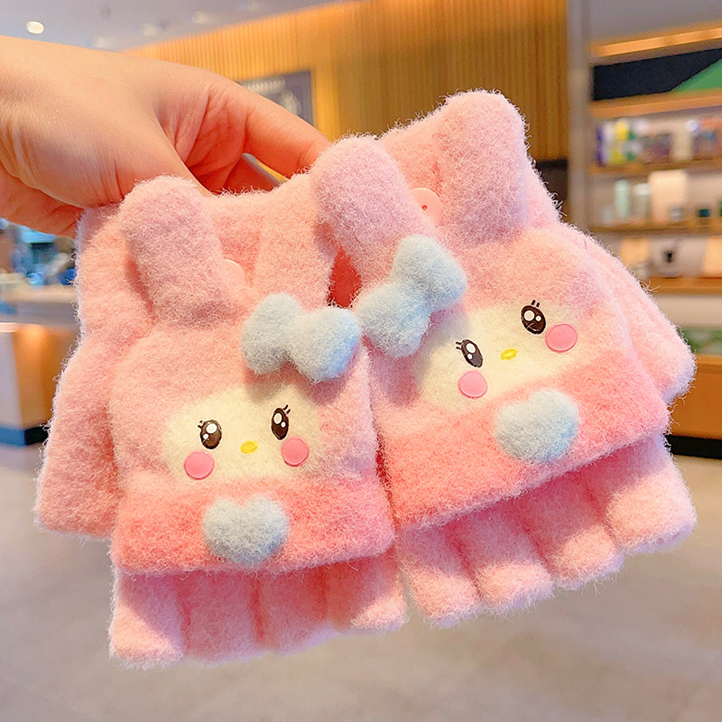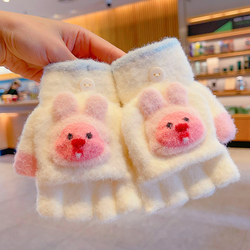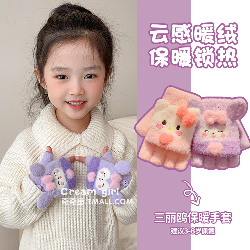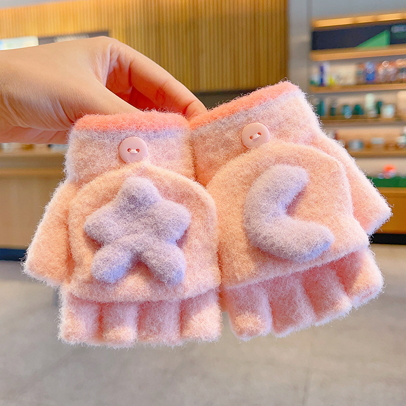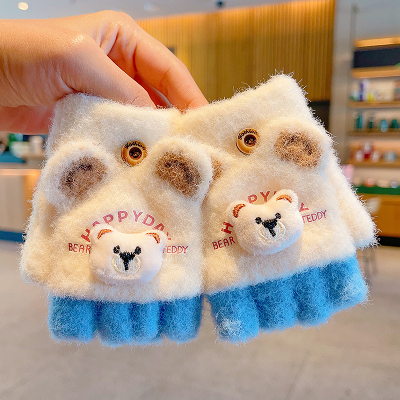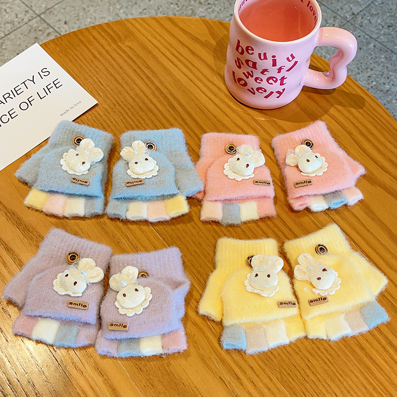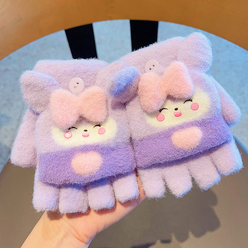 아기의 하프 핑거 장갑 가을과 겨울 아기 따뜻한 플립 니트 손가락 Leaky 소녀의 손가락 만화 2024 새로운스토어 가기