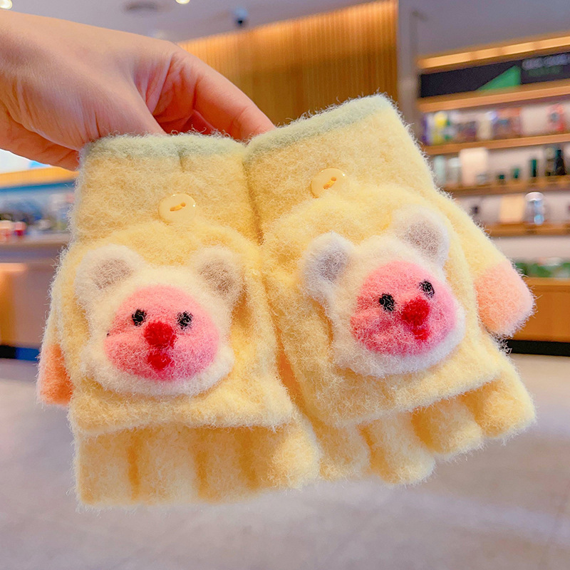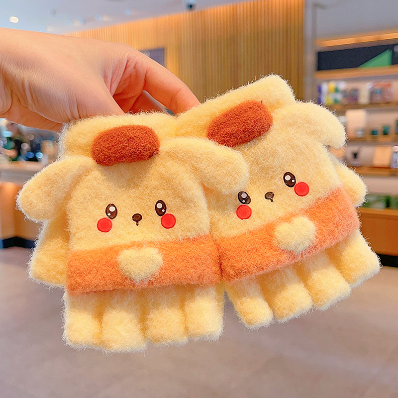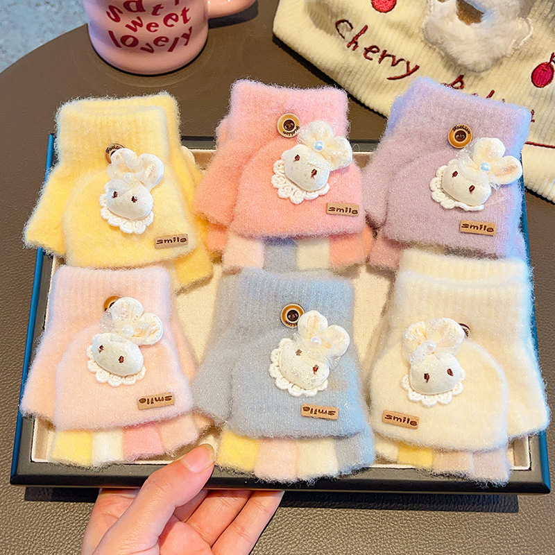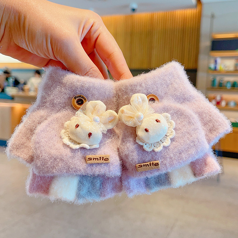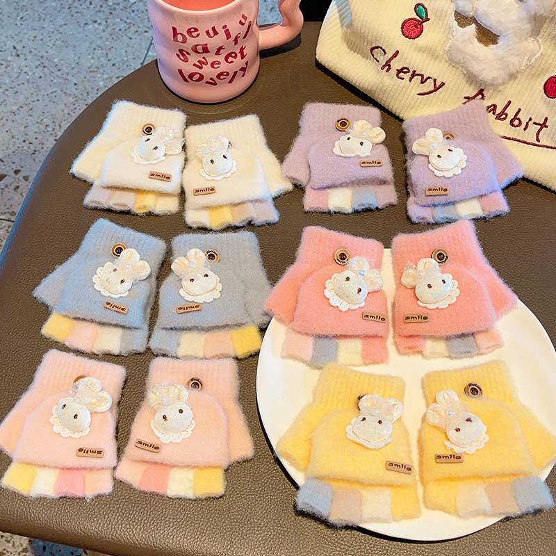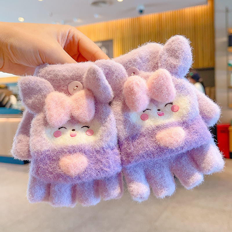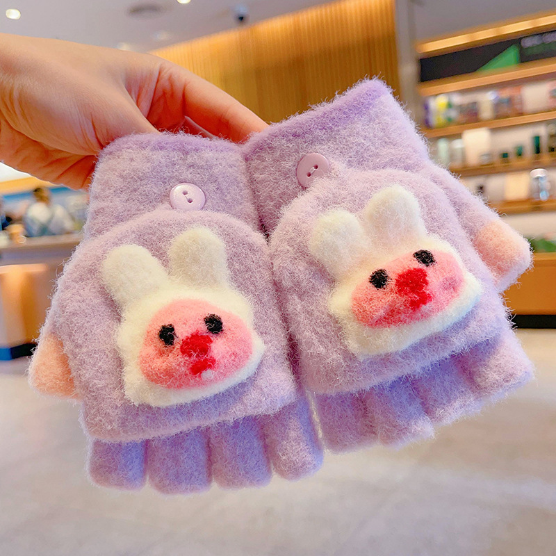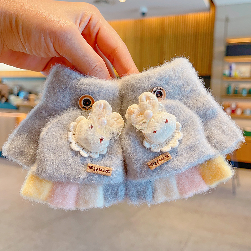 아기의 하프 핑거 장갑 가을과 겨울 아기 따뜻한 플립 니트 손가락 Leaky 소녀의 손가락 만화 2024 새로운스토어 가기