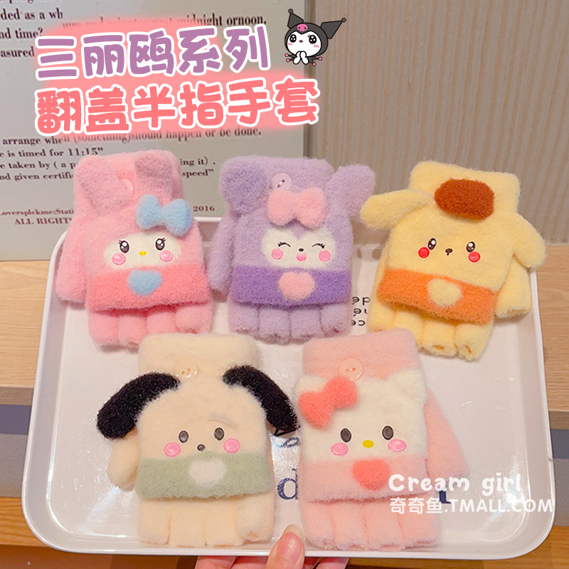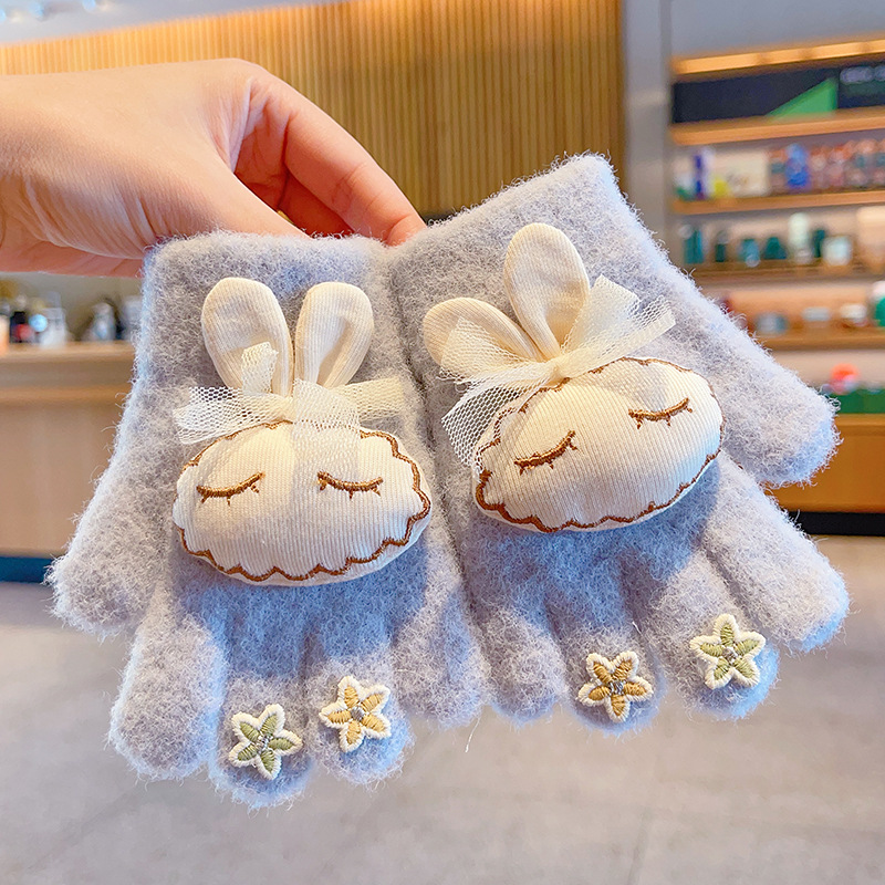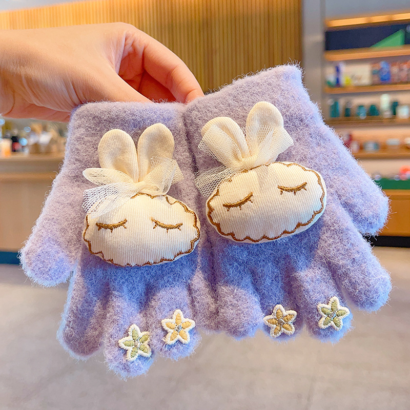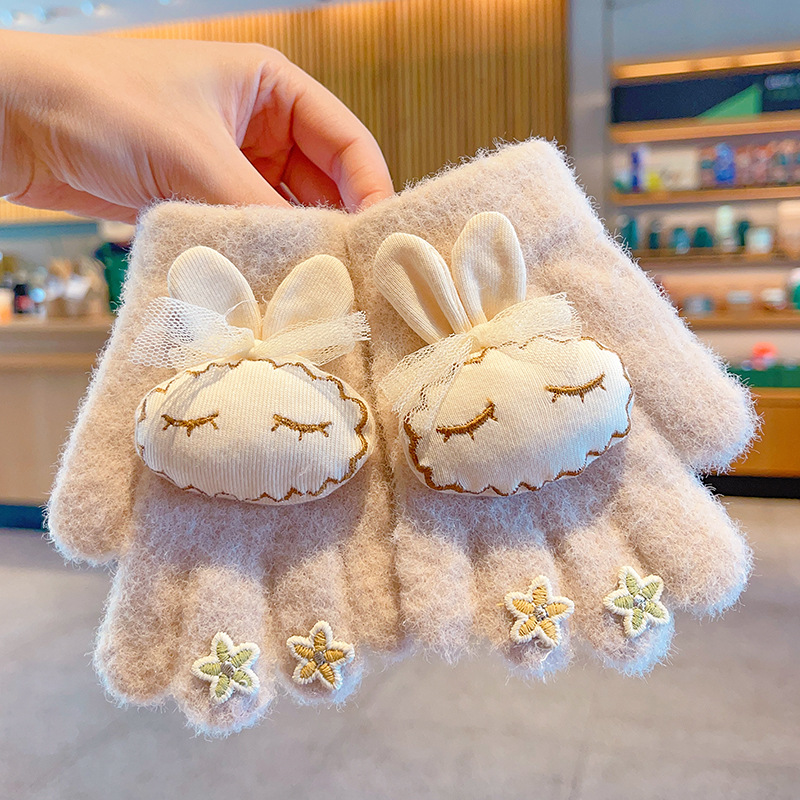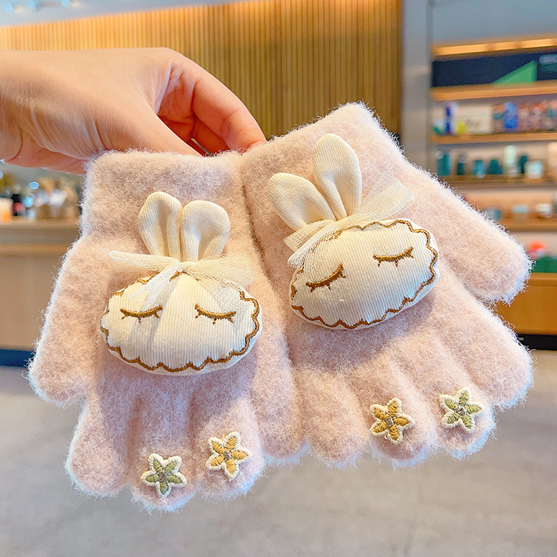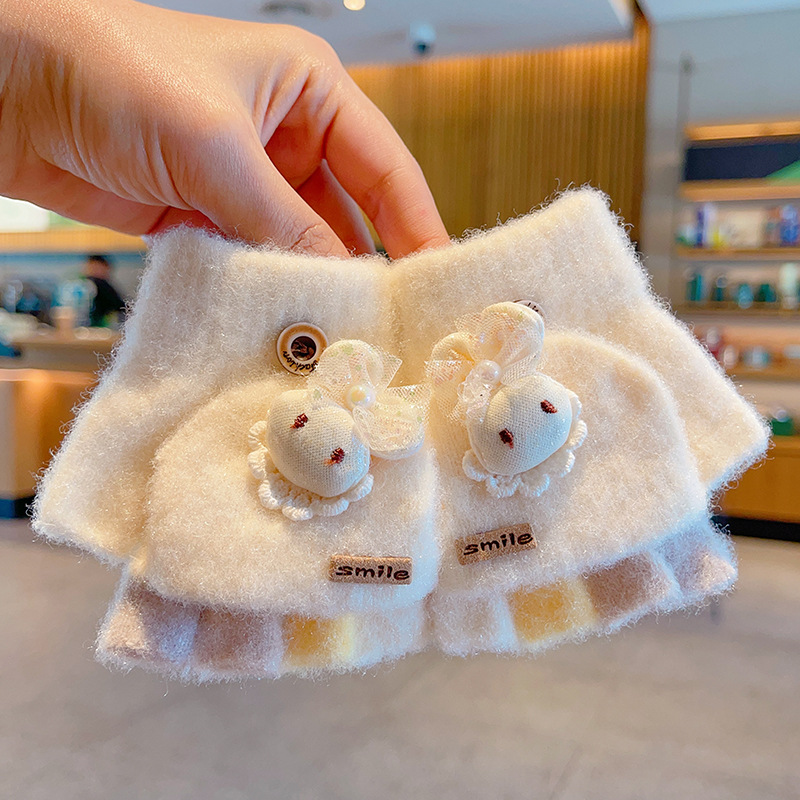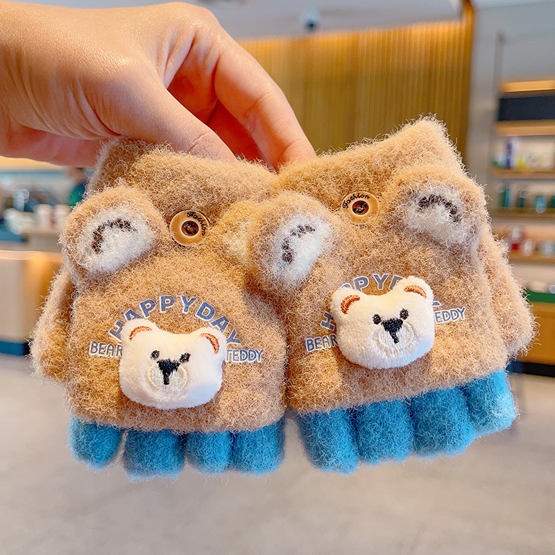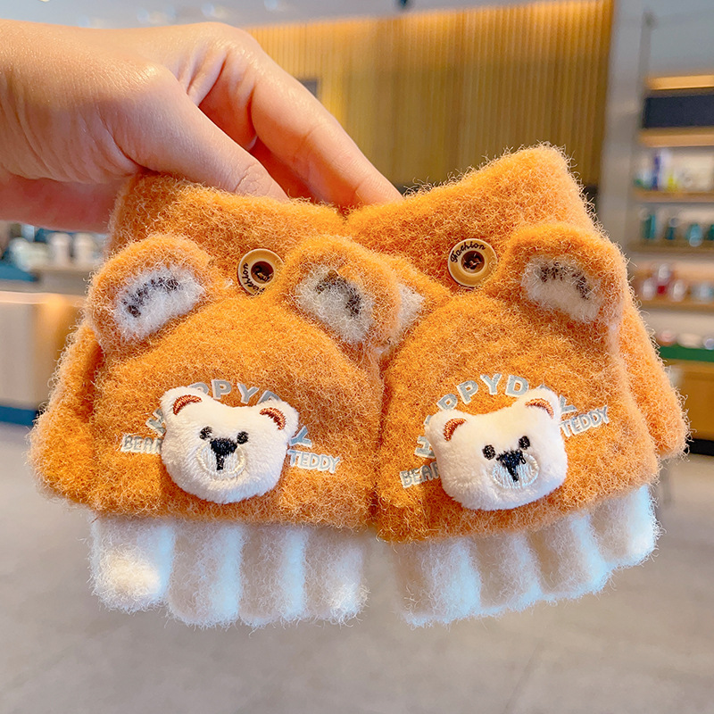 아기의 하프 핑거 장갑 가을과 겨울 아기 따뜻한 플립 니트 손가락 Leaky 소녀의 손가락 만화 2024 새로운스토어 가기