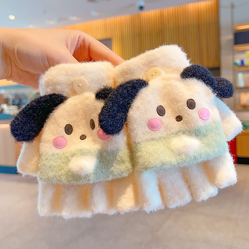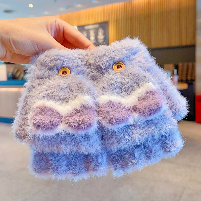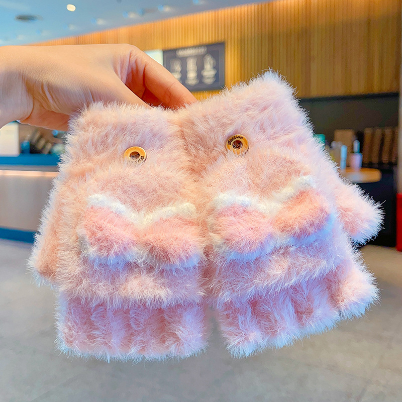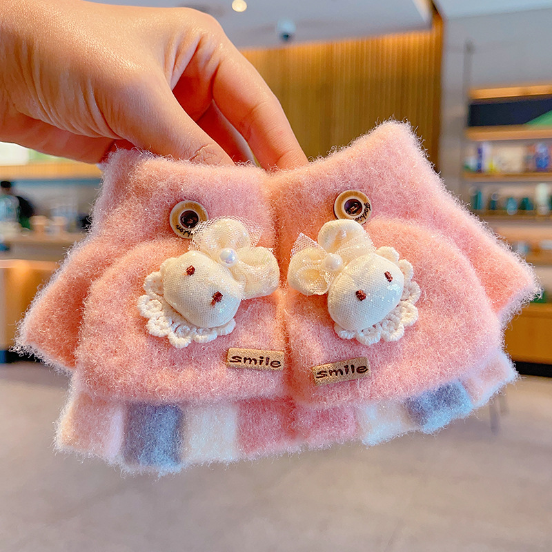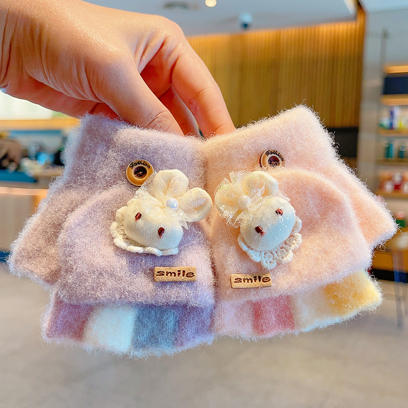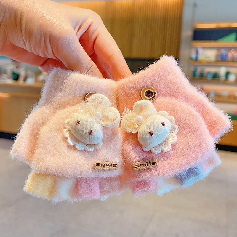 아기의 하프 핑거 장갑 가을과 겨울 아기 따뜻한 플립 니트 손가락 Leaky 소녀의 손가락 만화 2024 새로운