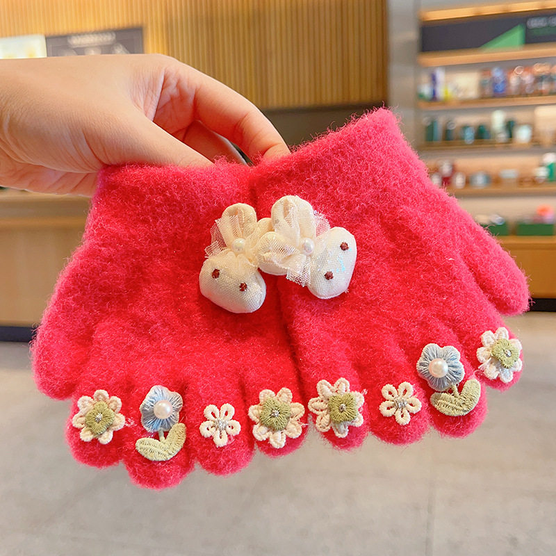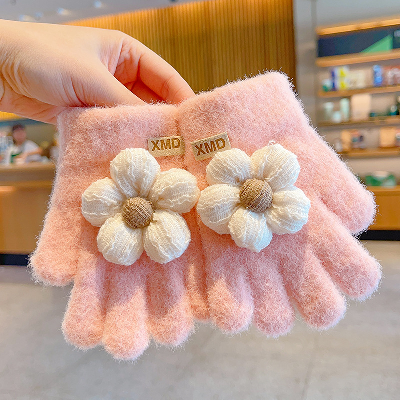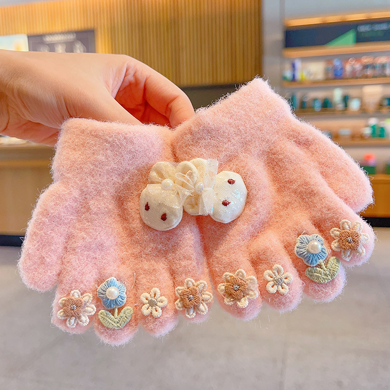 • 64#핑크 플러시 보우 풀 핑거 [5-10세]