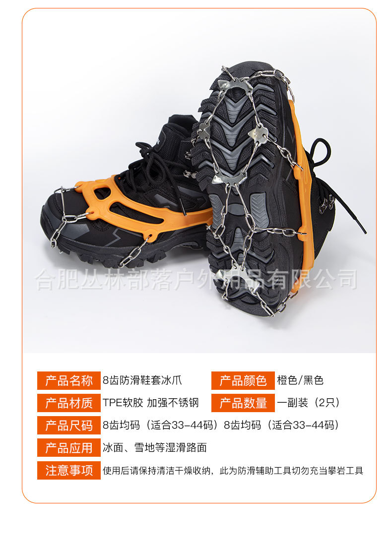 8 치아 얼음 발톱 야외 미끄럼 방지 신발 커버 스테인레스 스틸 얼음 표면 눈 낙하 발 커버 등산 얼음 등반 전문 스노우 그랩스토어 가기