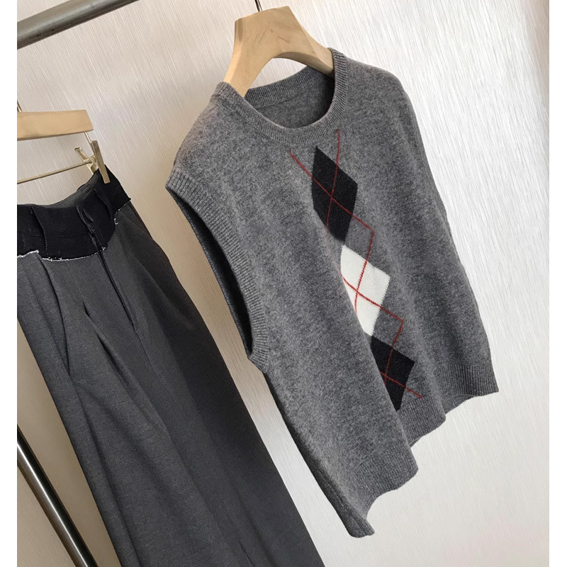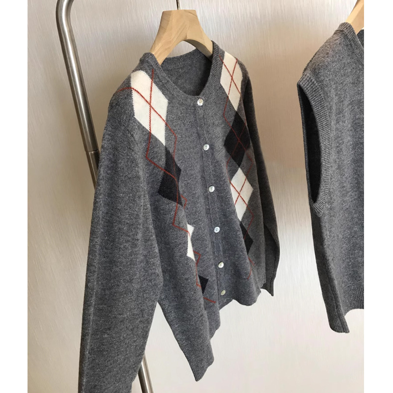 말이없는 아름다운!! R 싱글 ~ 하이 퀄리티 레트로 영국 스타일 나이를 줄이는 마름모 니트 양모 조끼 카디건