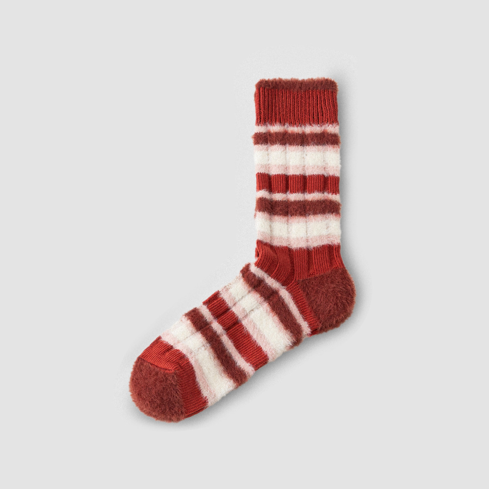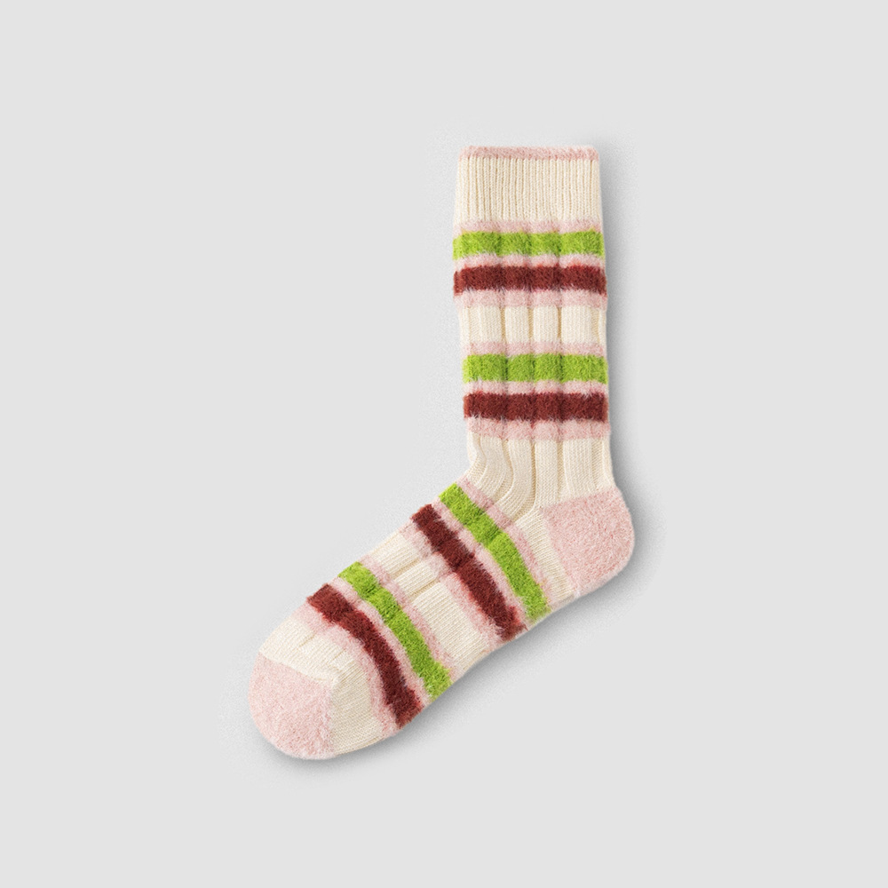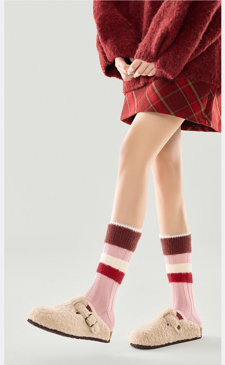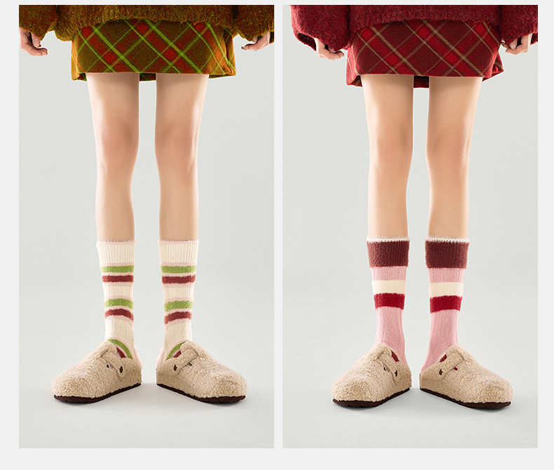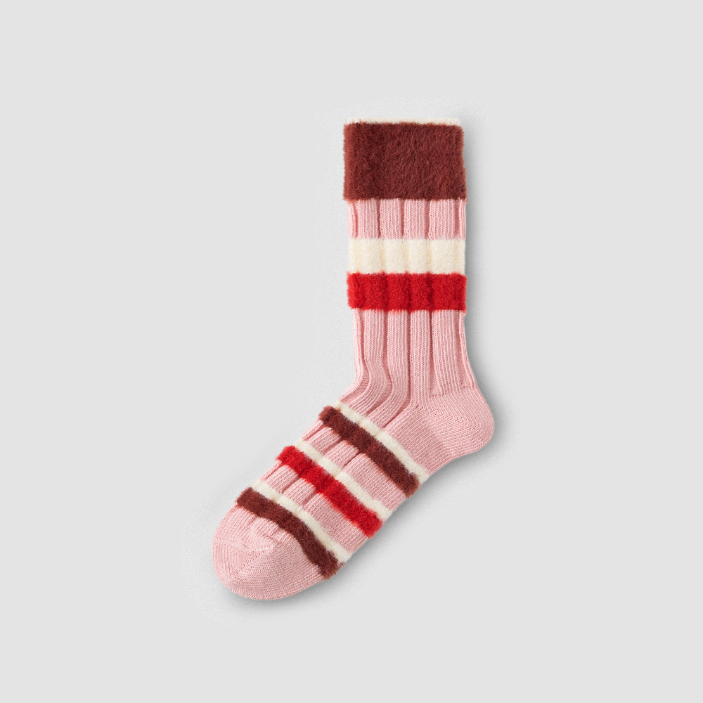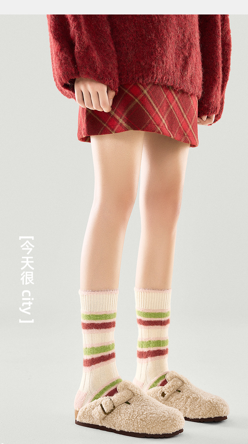 [가을과 겨울 두꺼운 신장 면화 보풀] 슈안 양말 여성용 미드 튜브 스타킹 겨울 여성 줄무늬 스타킹