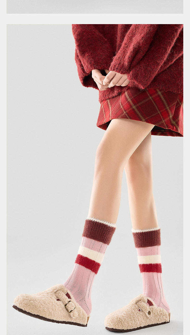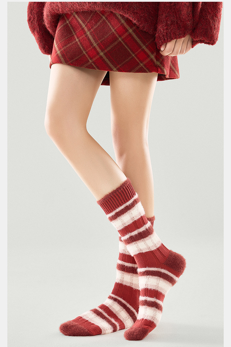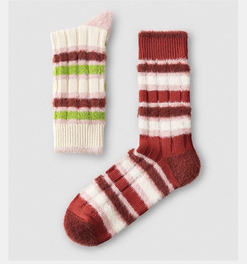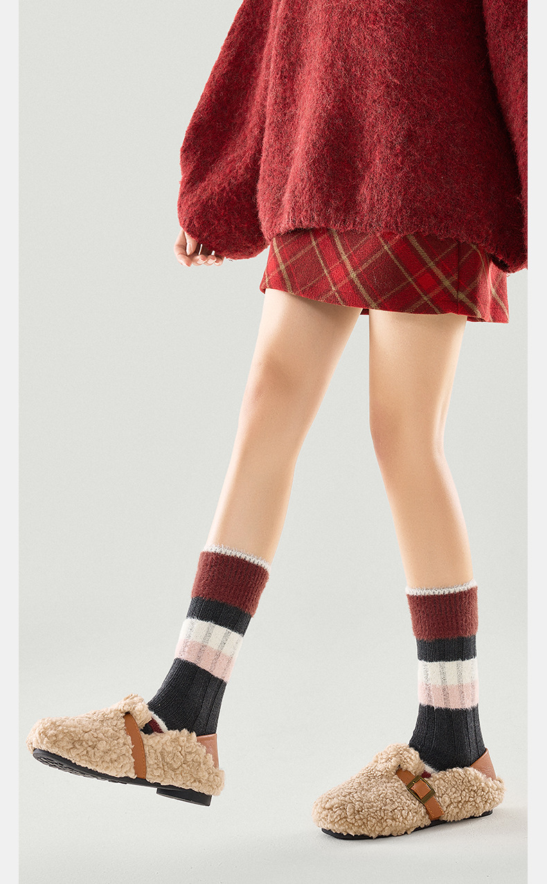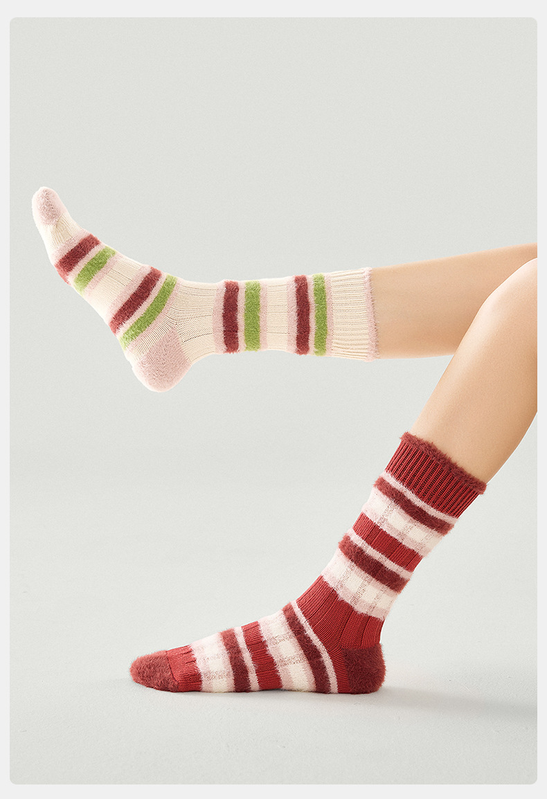 [가을과 겨울 두꺼운 신장 면화 보풀] 슈안 양말 여성용 미드 튜브 스타킹 겨울 여성 줄무늬 스타킹