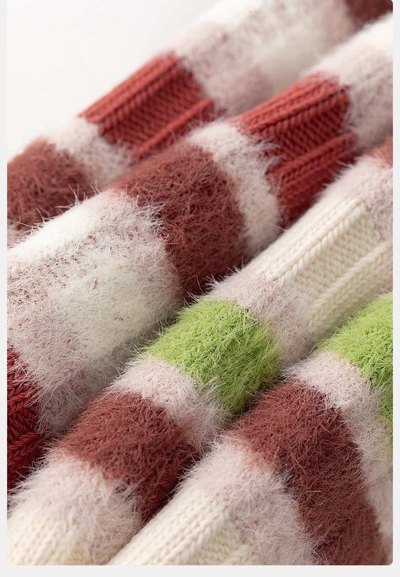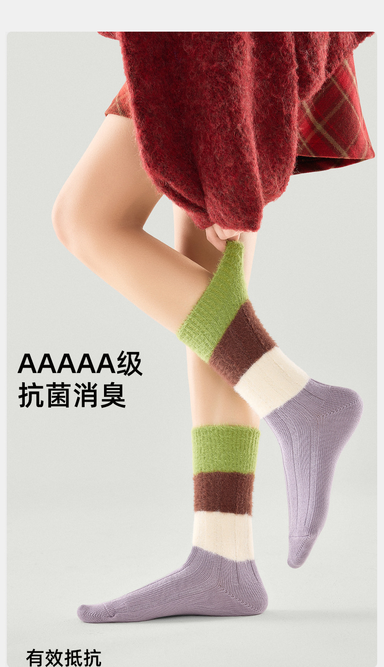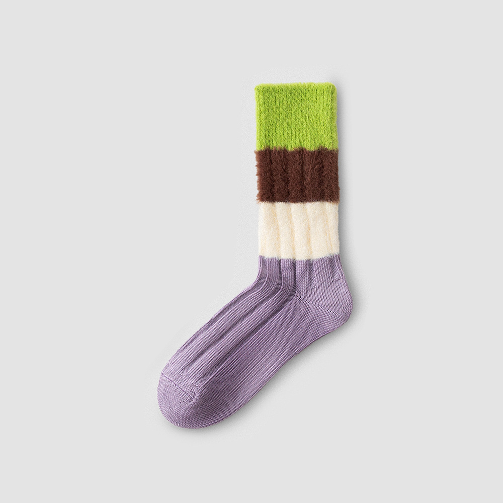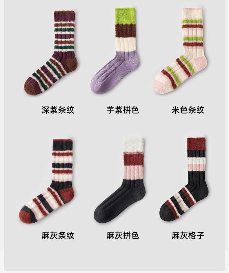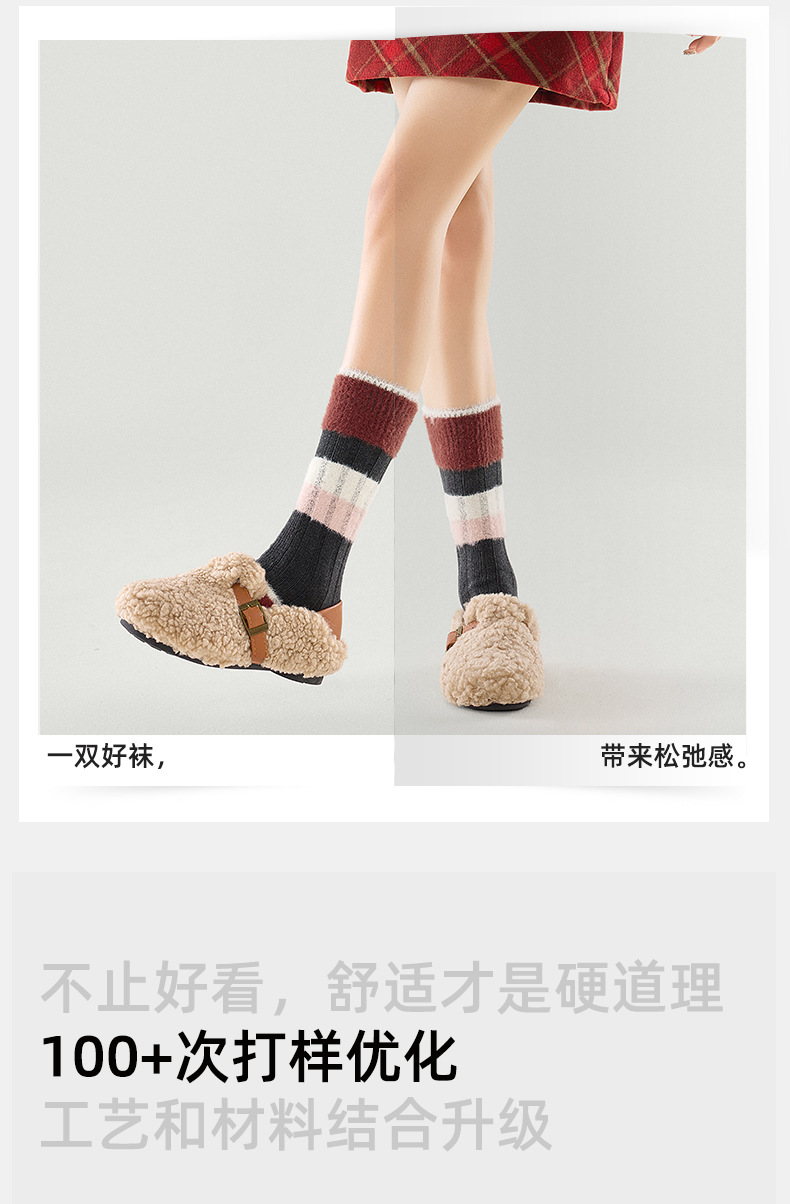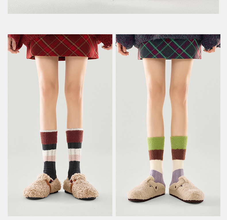 [가을과 겨울 두꺼운 신장 면화 보풀] 슈안 양말 여성용 미드 튜브 스타킹 겨울 여성 줄무늬 스타킹