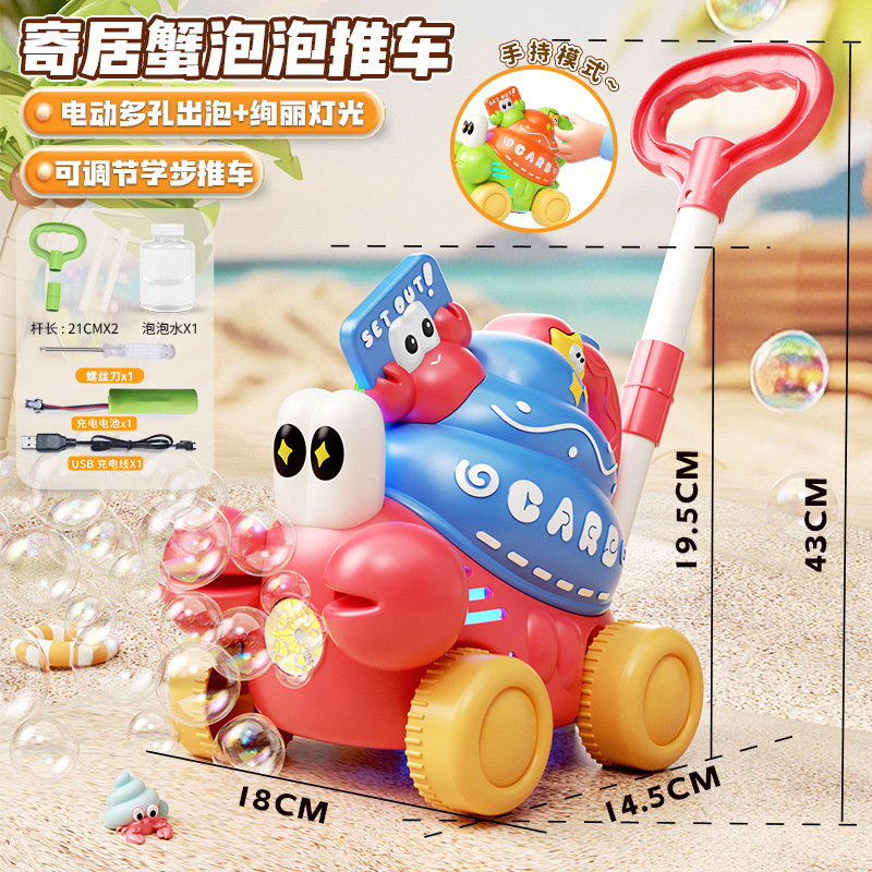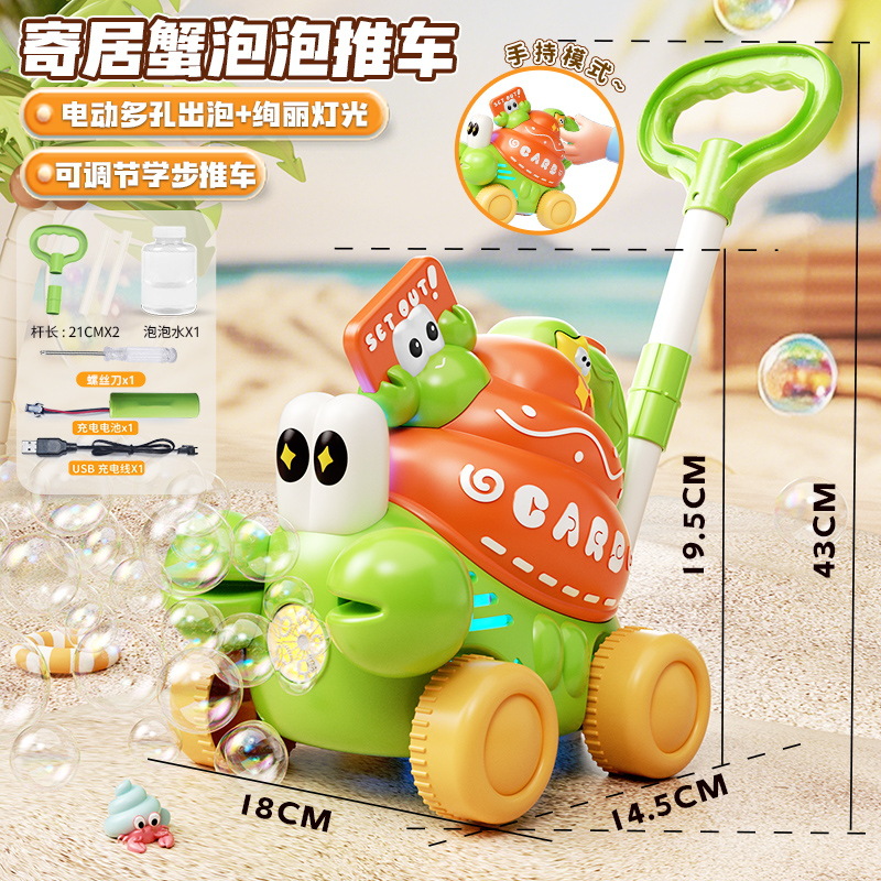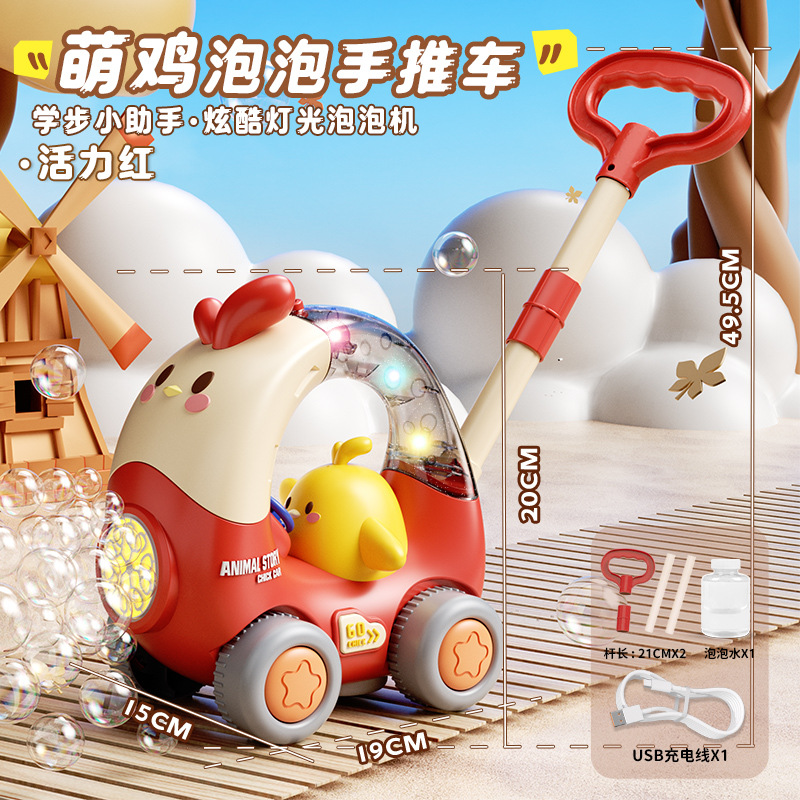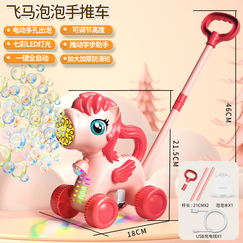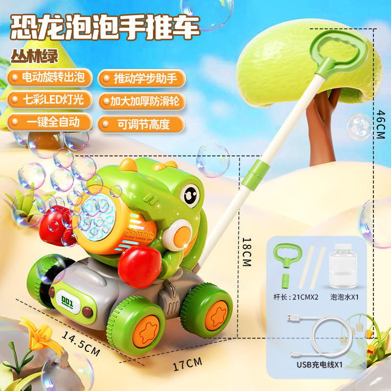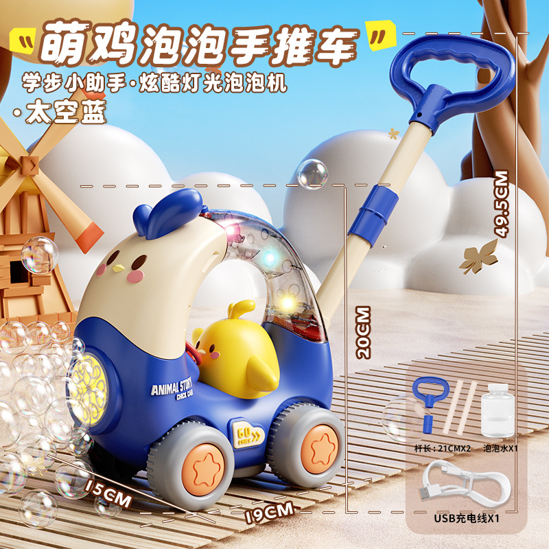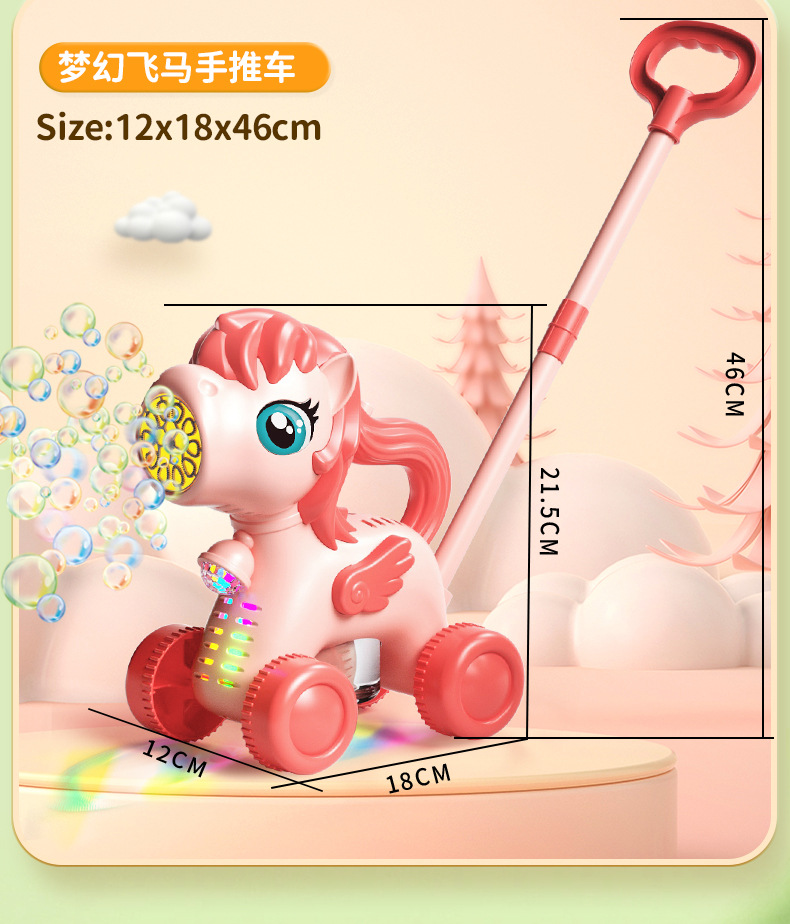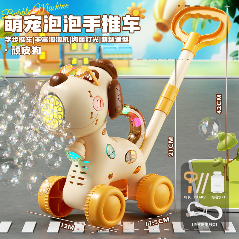 어린이 만화 사슴 모양 손으로 밀어주는 버블 머신 유아용 푸시카 2-in-1 전동 버블카 조명 야외 장난감