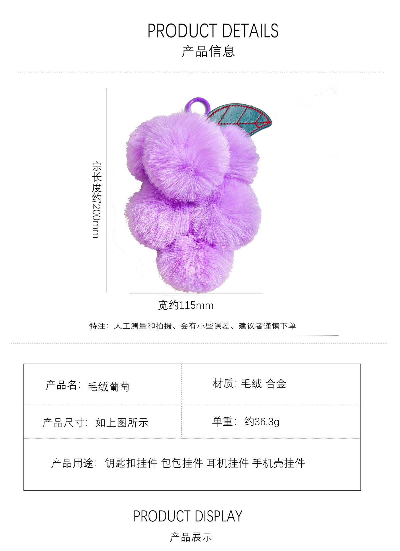 도매 진짜 rex 토끼 모피 공 포도 키 체인 플러시 자동차 키 체인 귀여운 인형 보석 가방 펜던트스토어 가기