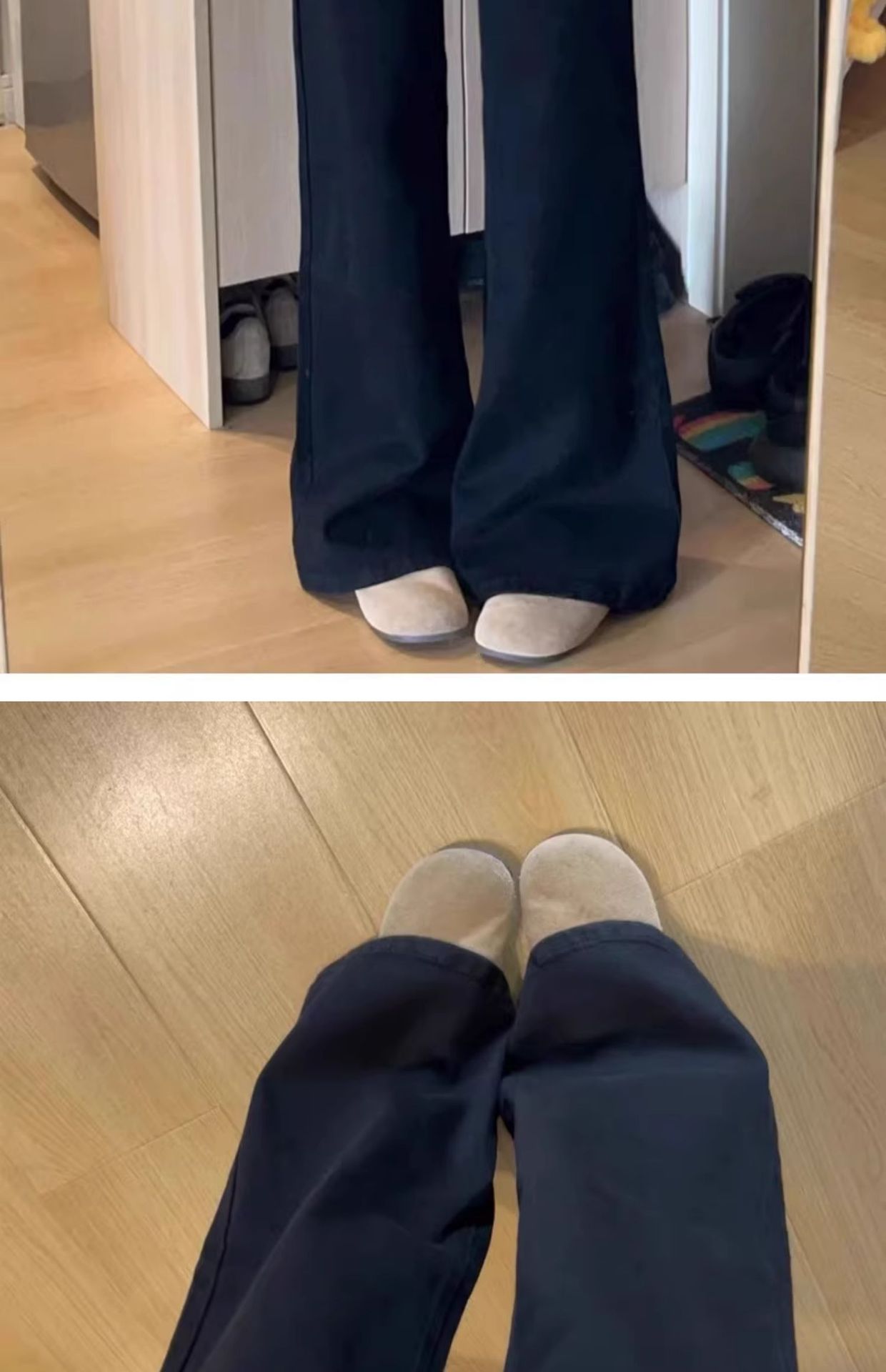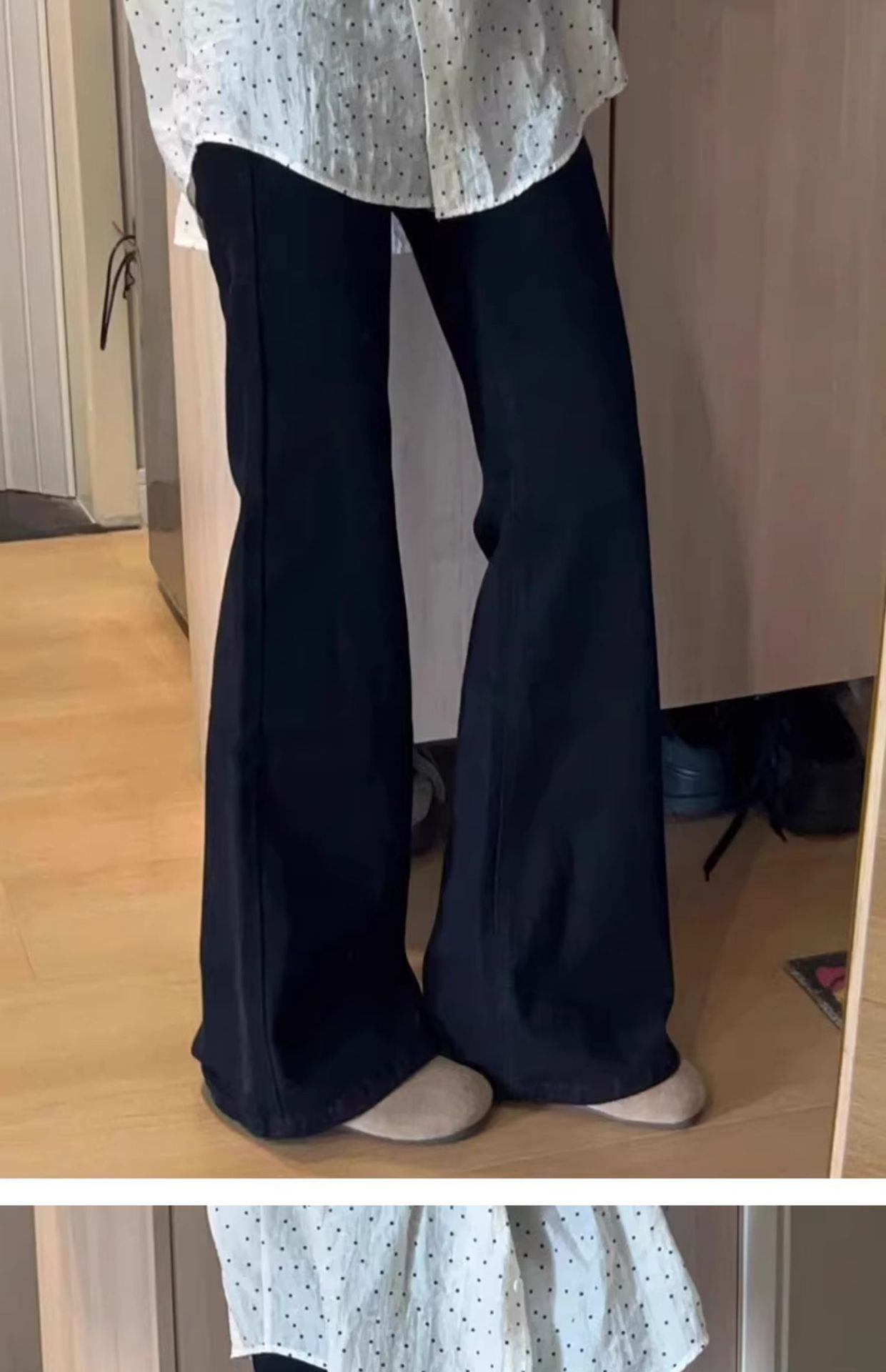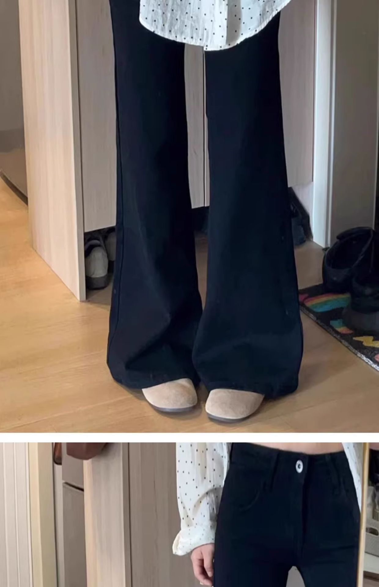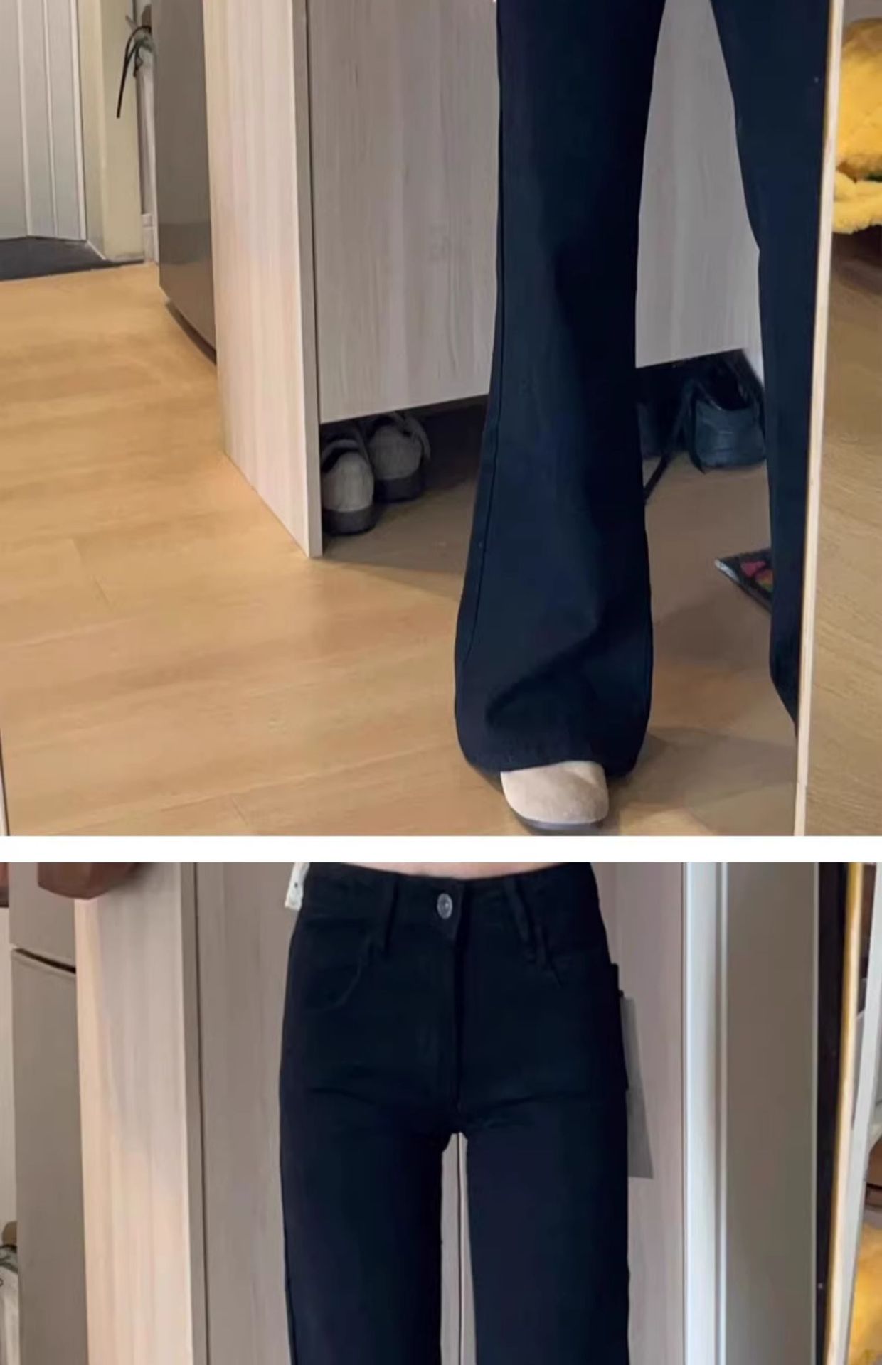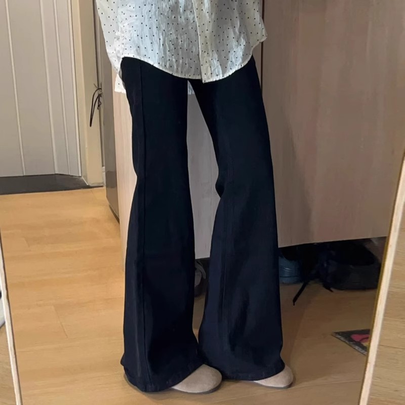 플러스 사이즈 플레어 팬츠 여성용 청바지 가을 높은 허리 슬리밍 통통녀 느슨한 넓은 다리 바지 검은 다리 바지스토어 가기
