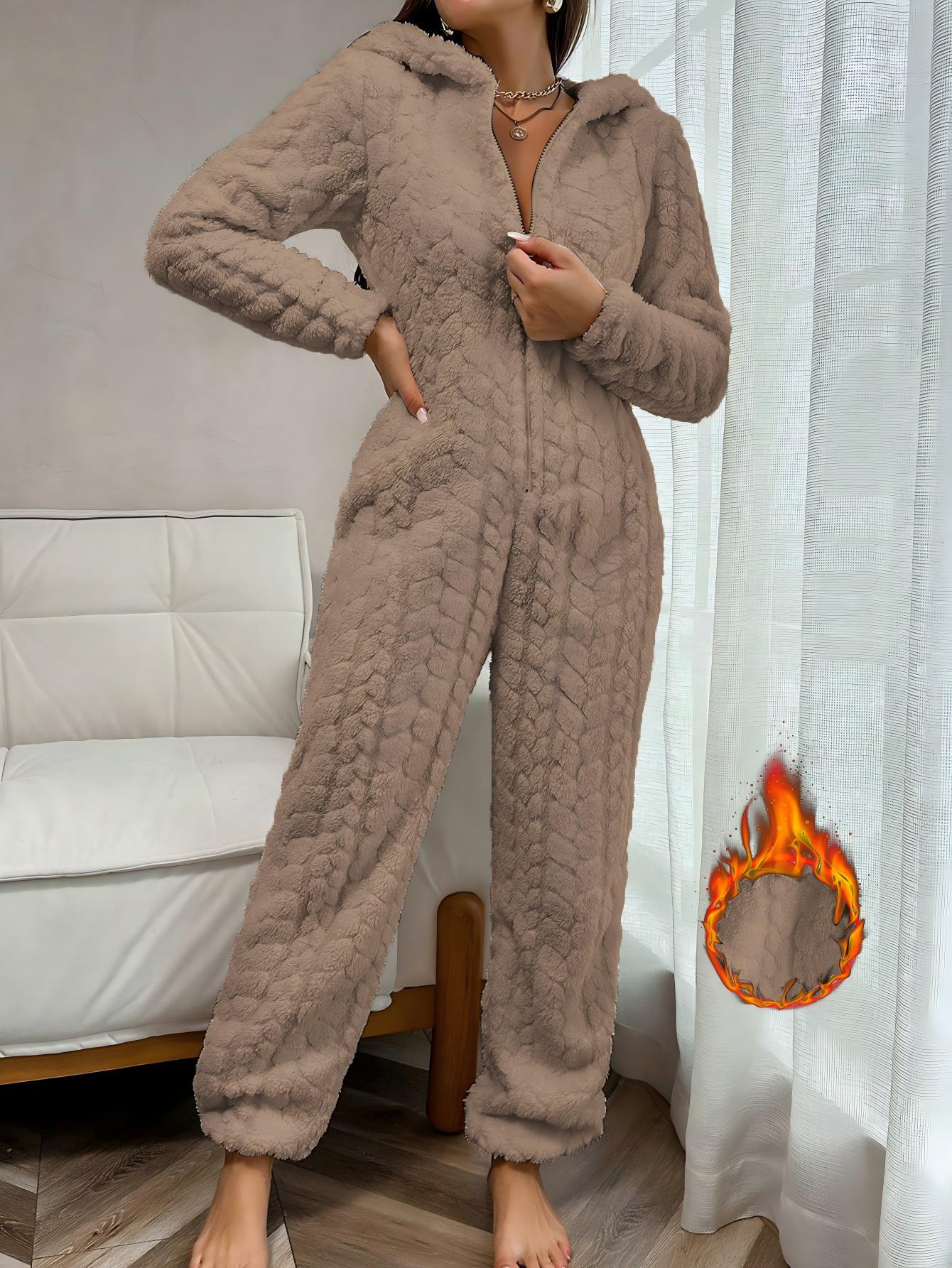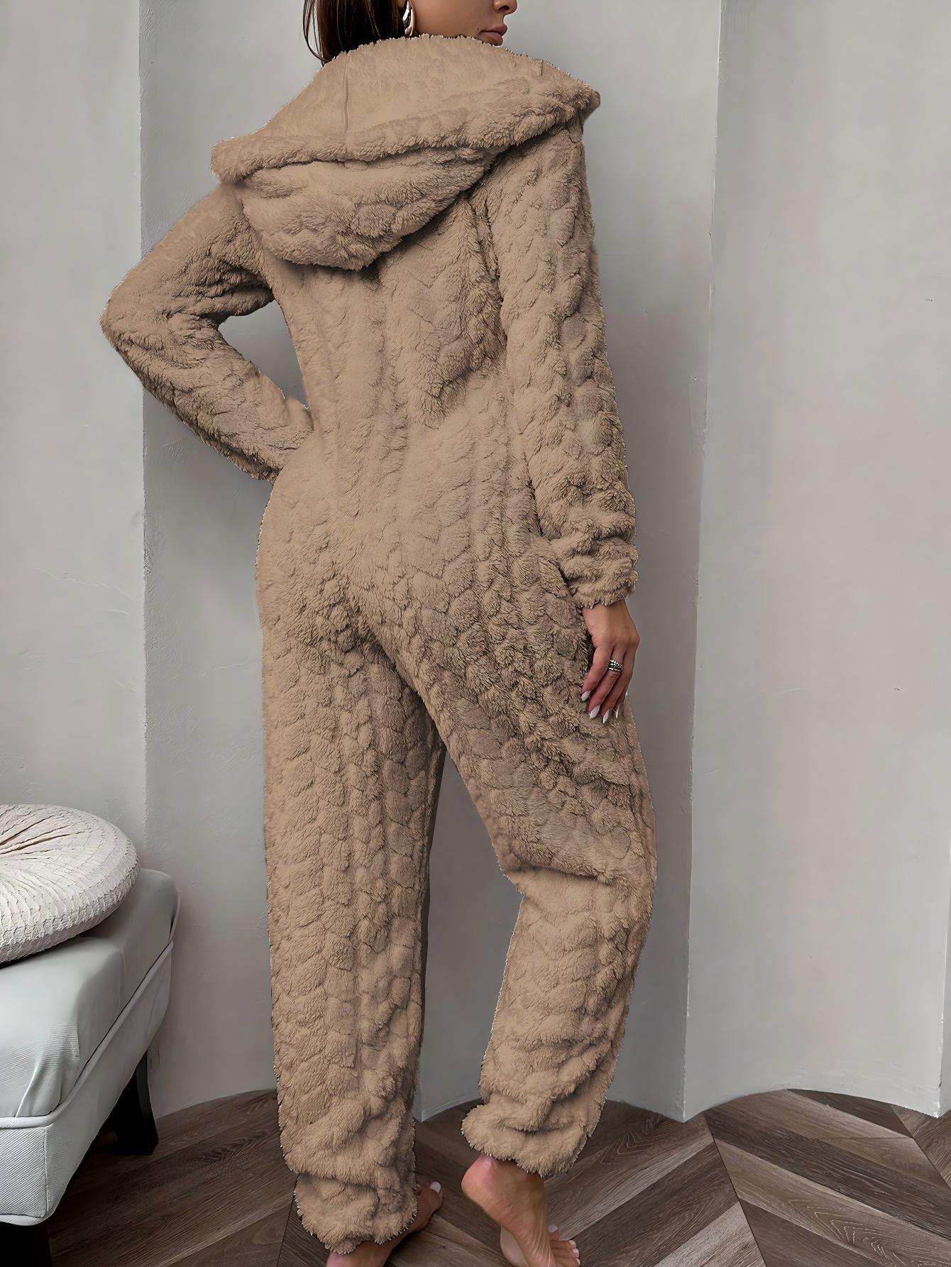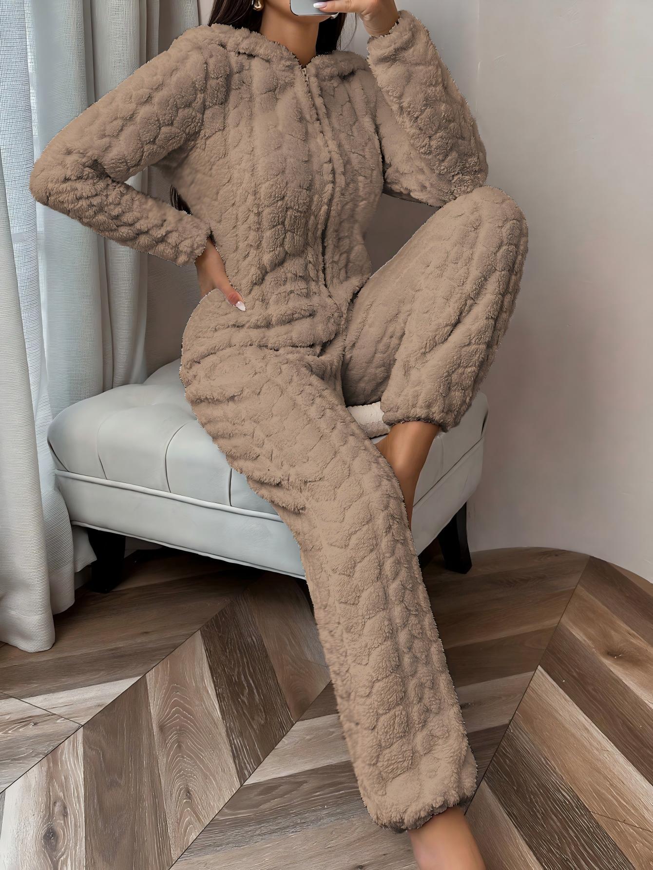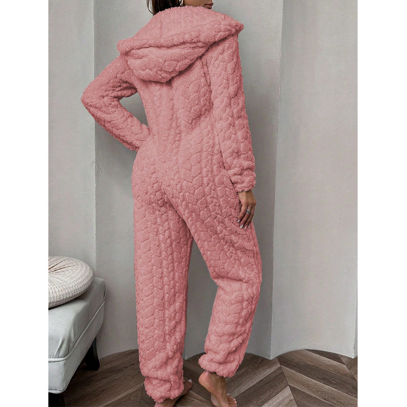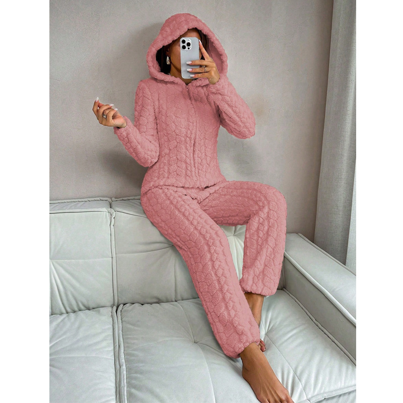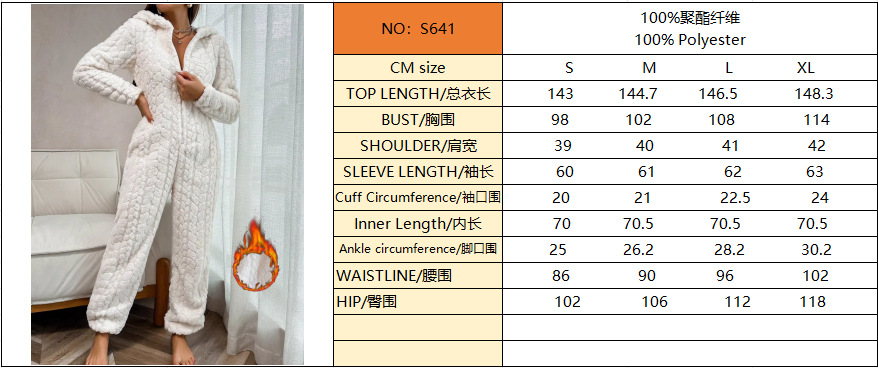 유럽과 미국의 국경 간 따뜻한 산호 양털 점프 수트 잠옷 여성 가을 및 겨울 새로운 하이 엔드 털 후드 홈 의류
