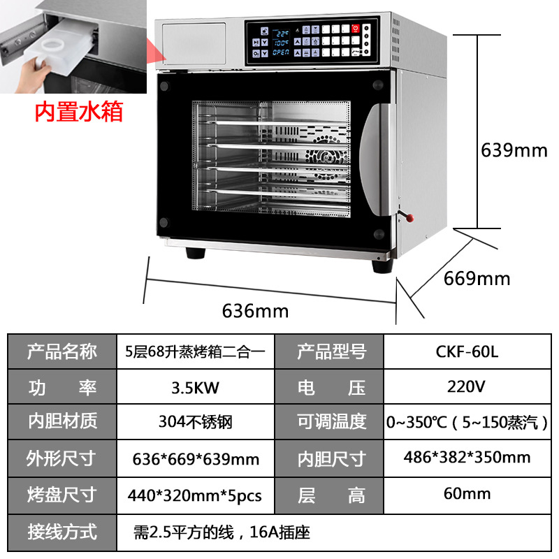 • 68리터 5접시 찜과 베이킹 투인원(베이킹팬:440_320mm) 업그레이드된 내장형 물탱크