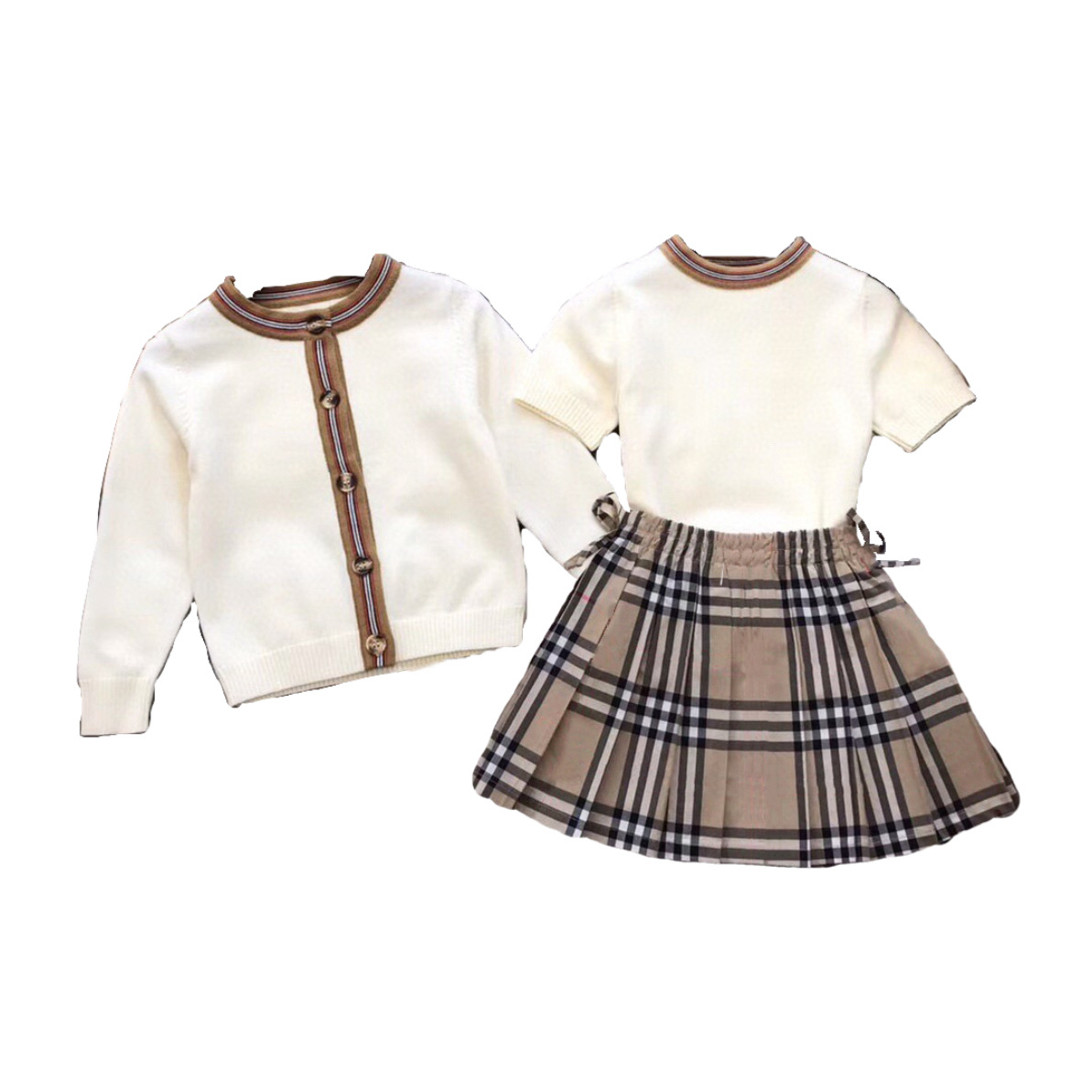 포시즌, 대외 무역 신종 걸스 반팔 니트 자켓 플리츠 오버 스커트 3 피스 캐주얼 영국 스타일 웨스턴 스타일