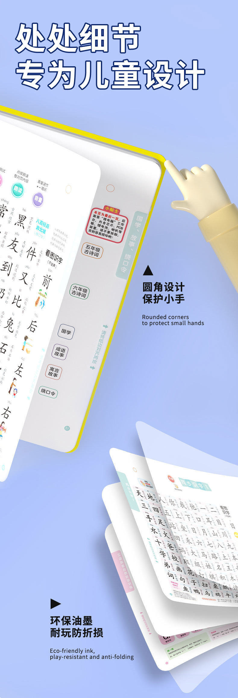 말하는 중국 병음 아기 계몽주의 조기 교육 훈련 오디오 북 손가락 포인트 읽기 음성 책 어린이 장난감