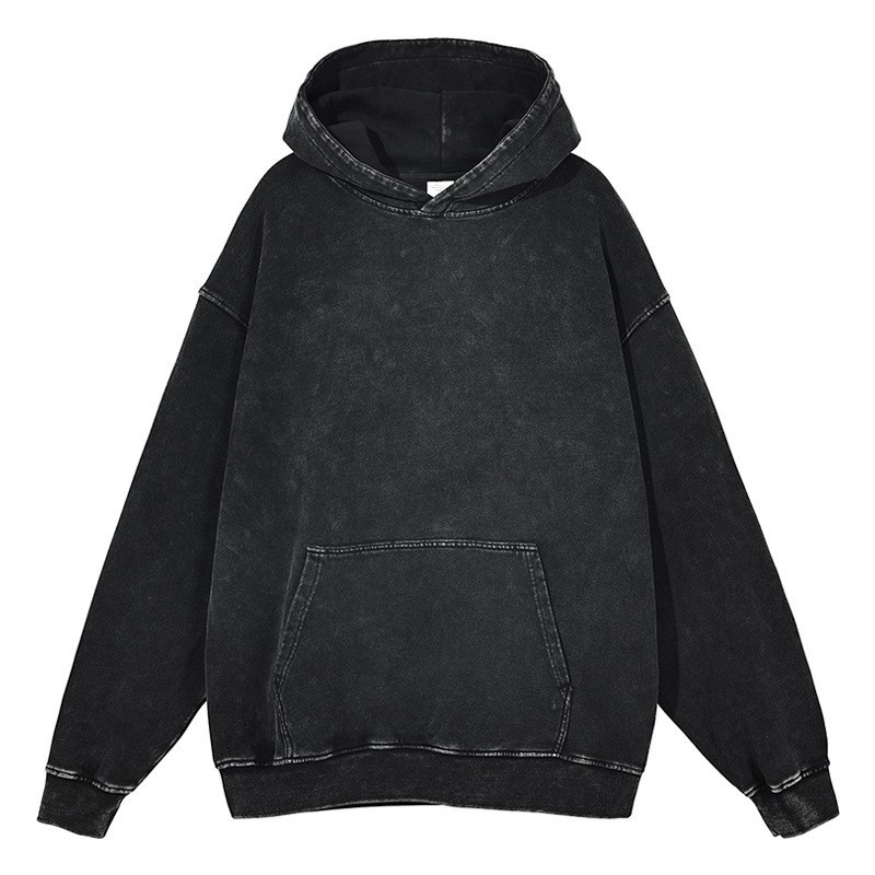 새로운 느슨한 씻은 빈 티셔츠 대외 무역 단색 봄과 가을 씻은 셔츠 후드 패턴 로고