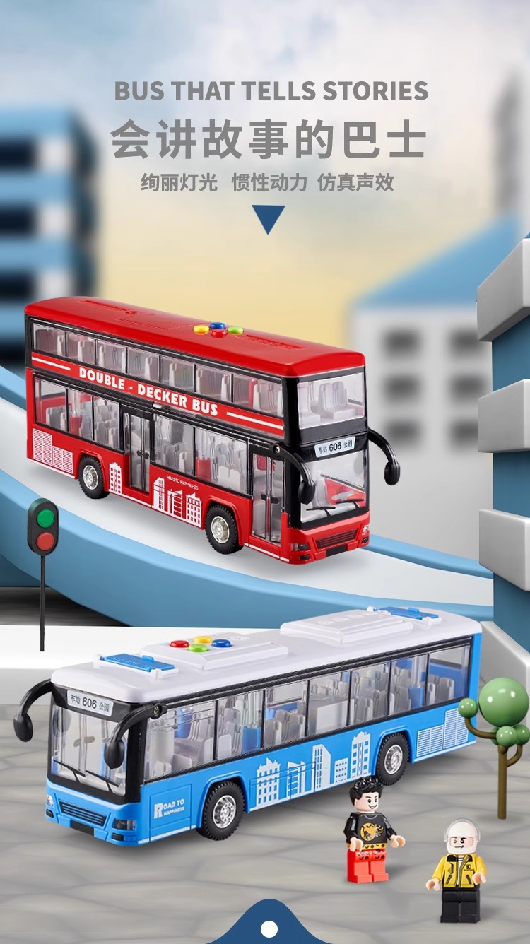 어린이용 이층버스 장난감 자동차, 남자아이용 풀세트 버스, 관성버스, 초대형 버스 모형스토어 가기