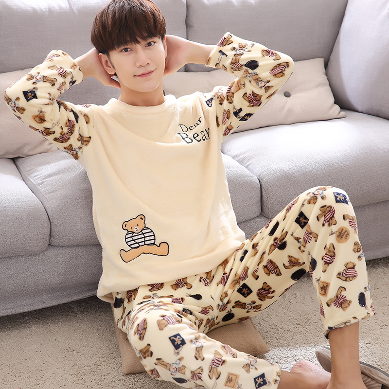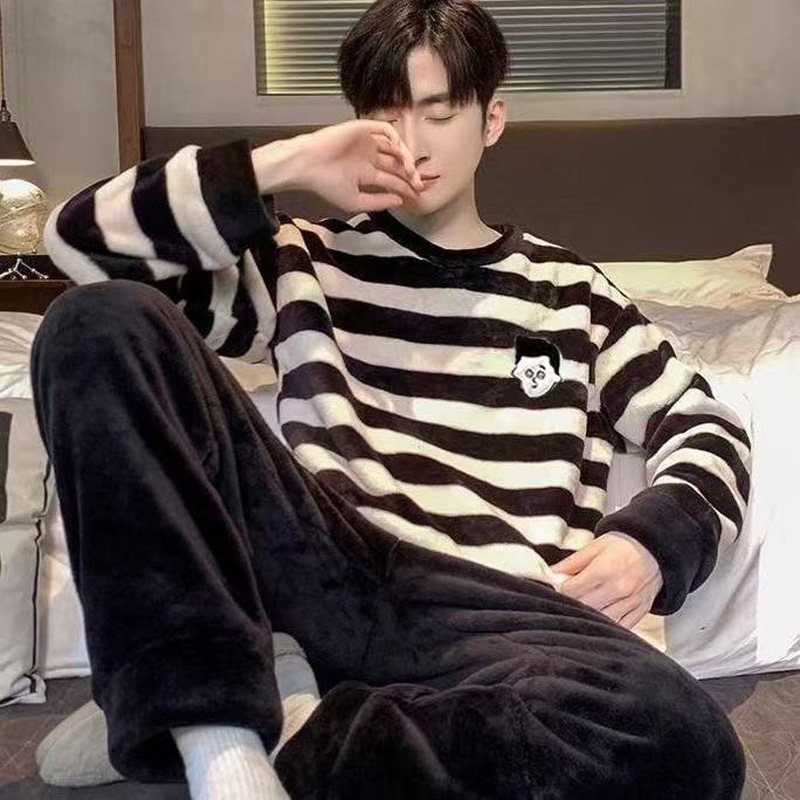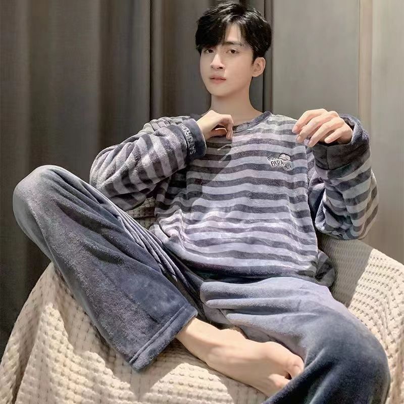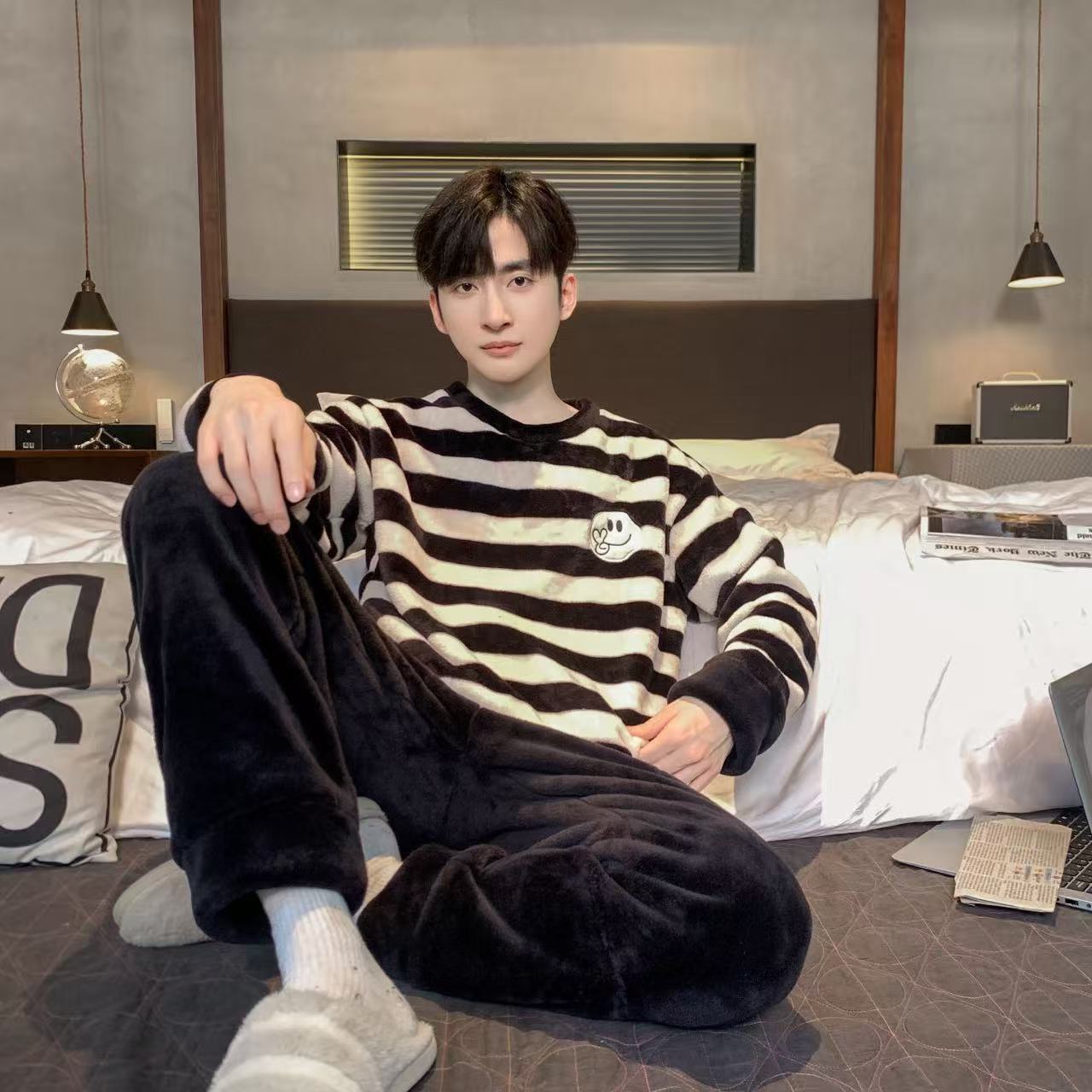 새로운 스타일의 대외 무역 소년 겨울 느슨한 플란넬 파자마 가을과 겨울 세트 남자 플러스 사이즈 산호 양털 홈 옷스토어 가기