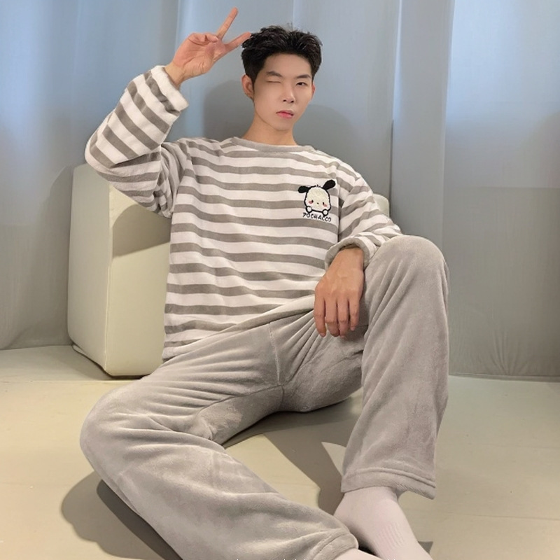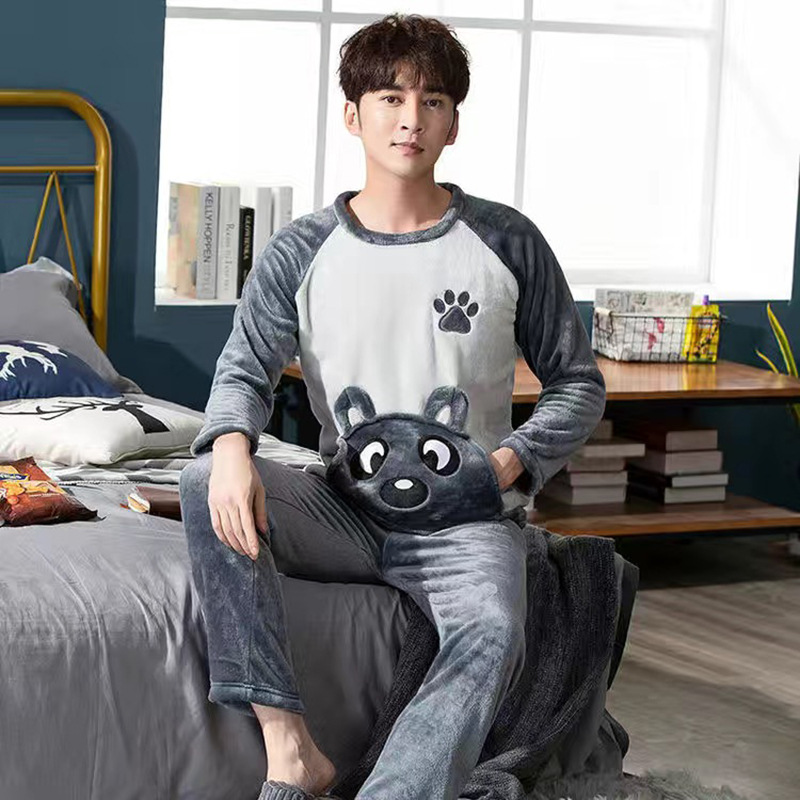 새로운 스타일의 대외 무역 소년 겨울 느슨한 플란넬 파자마 가을과 겨울 세트 남자 플러스 사이즈 산호 양털 홈 옷