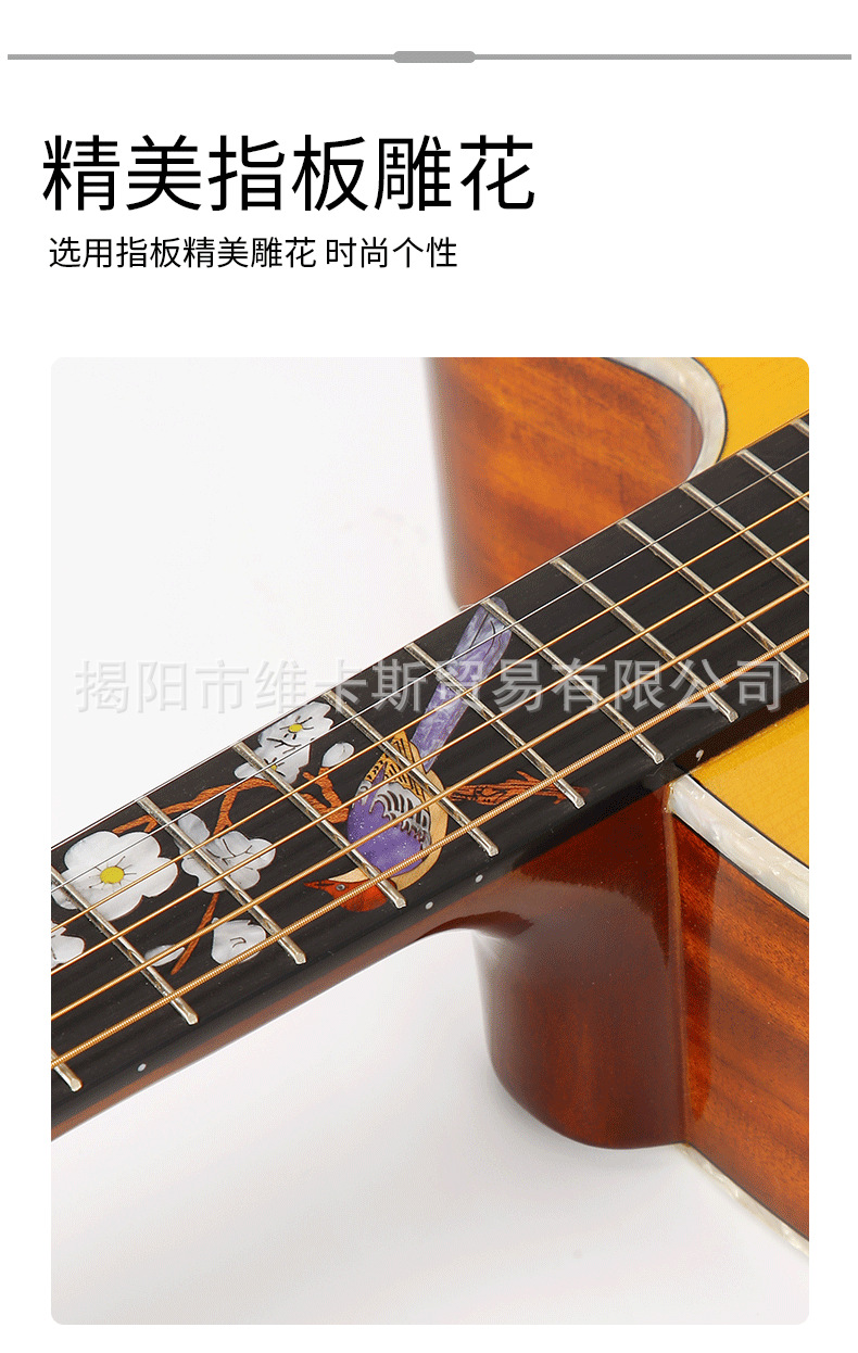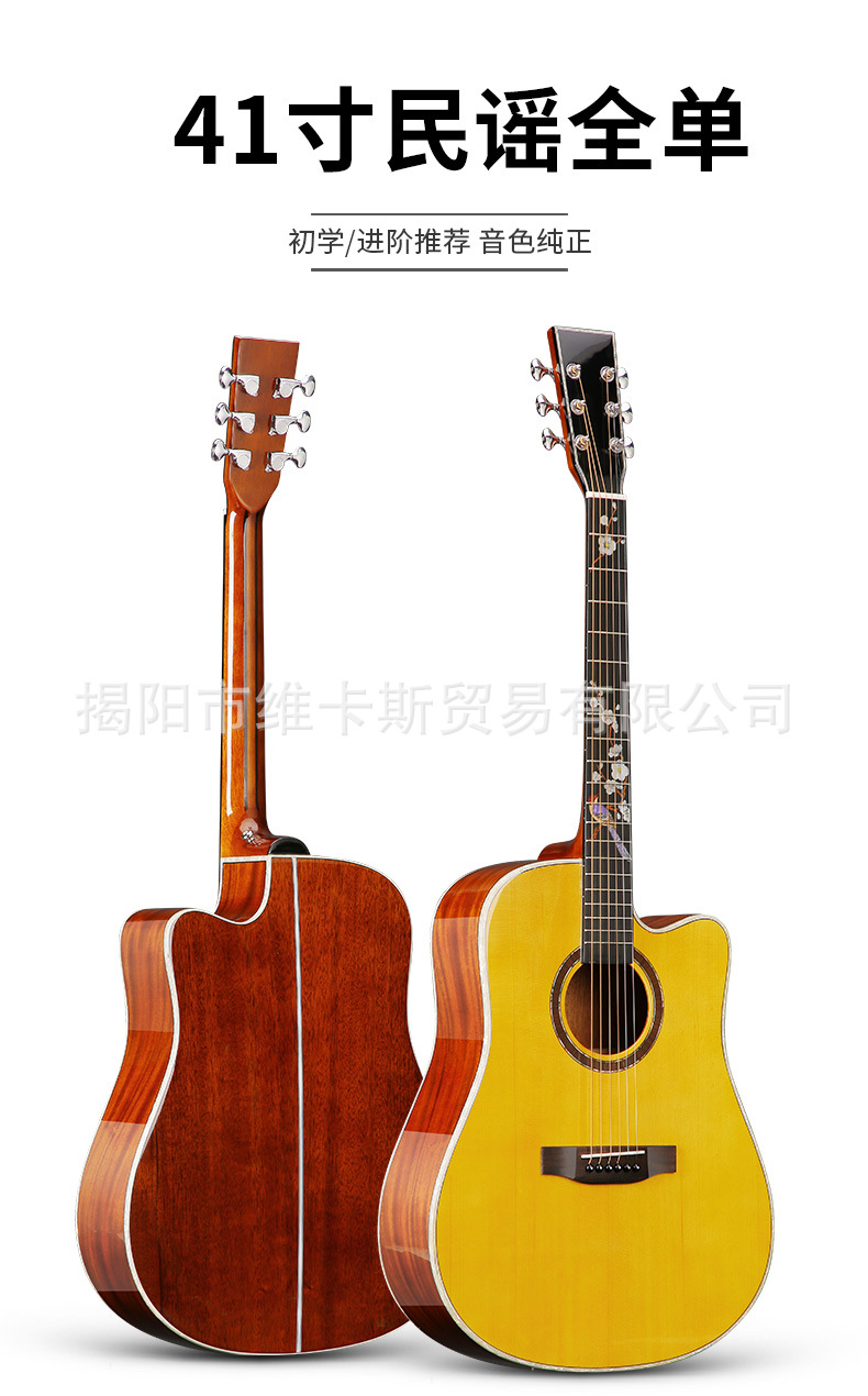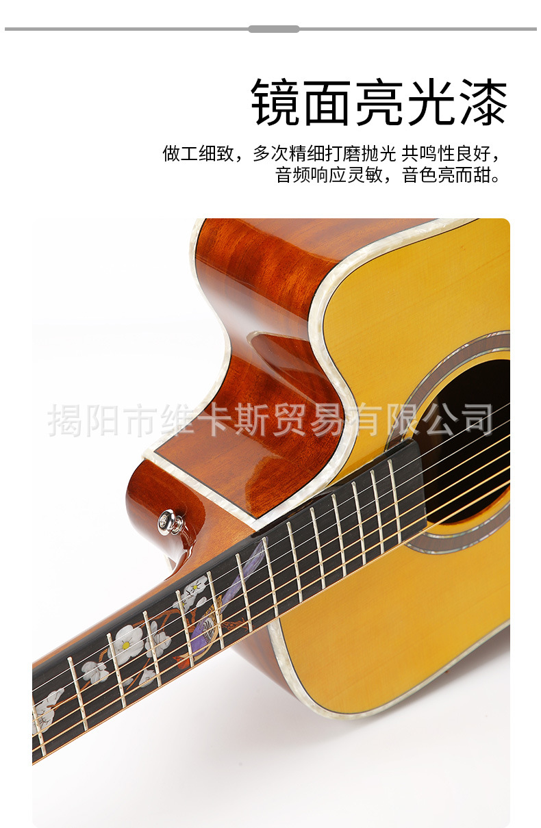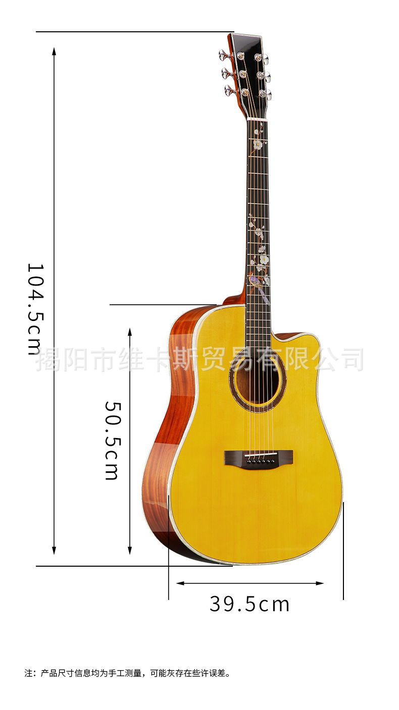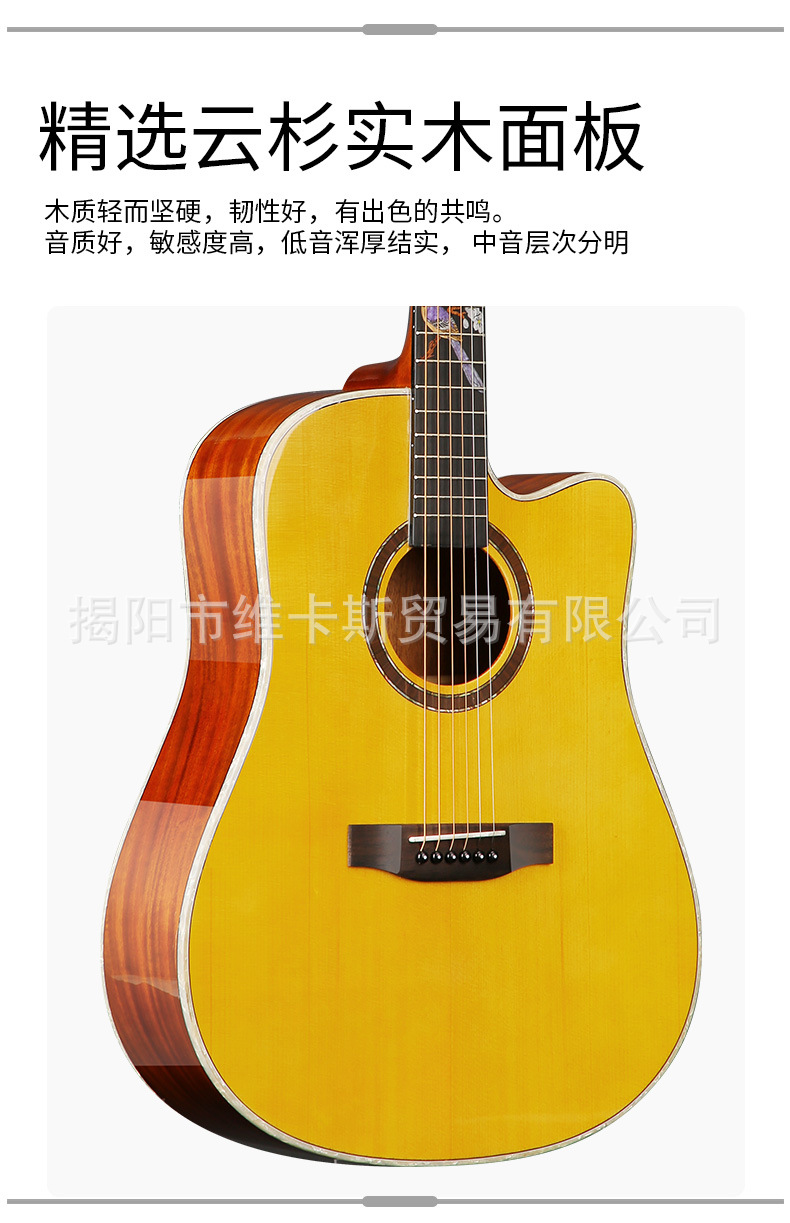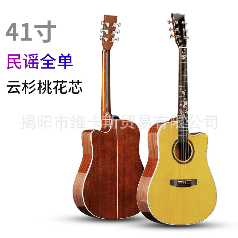 전체 싱글 기타 41 인치 민속 음악 공장 재고 가문비 나무 복숭아 꽃 전체 베니어 까치 조각 어쿠스틱 박스 진동