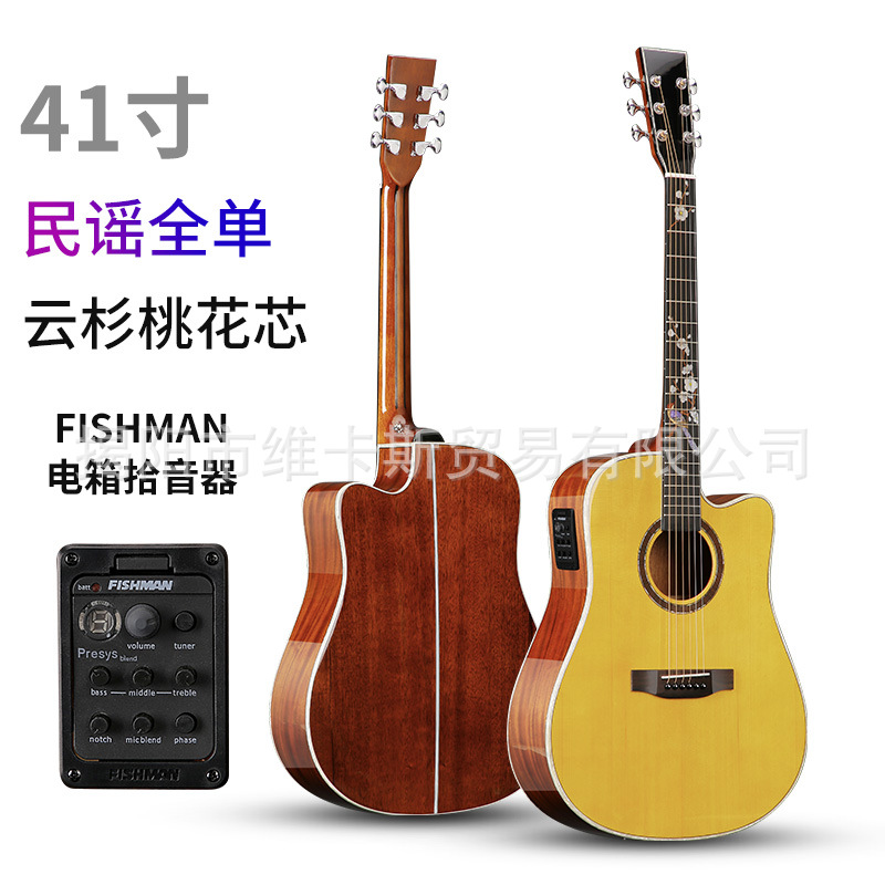 전체 싱글 기타 41 인치 민속 음악 공장 재고 가문비 나무 복숭아 꽃 전체 베니어 까치 조각 어쿠스틱 박스 진동스토어 가기