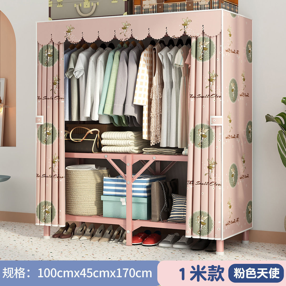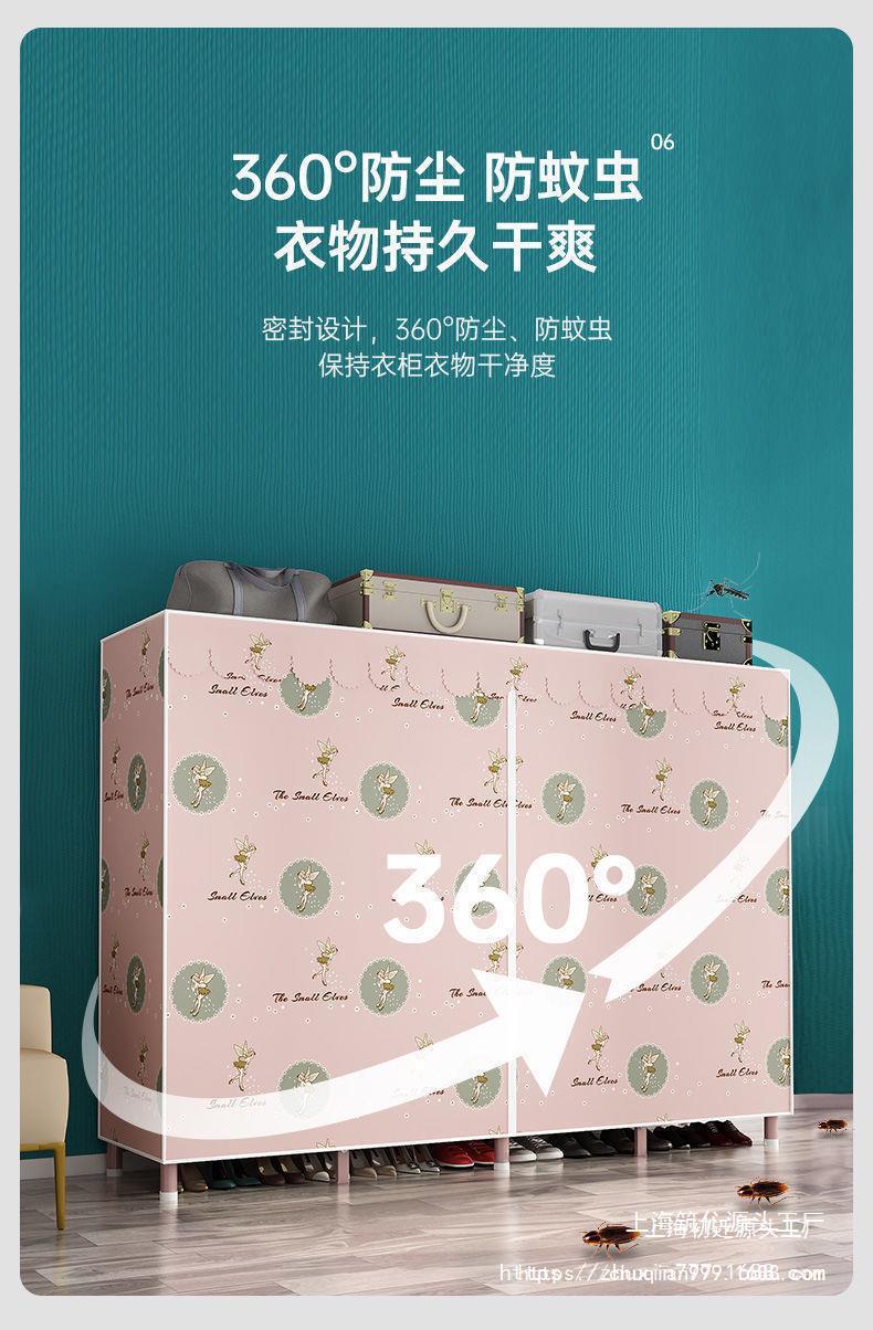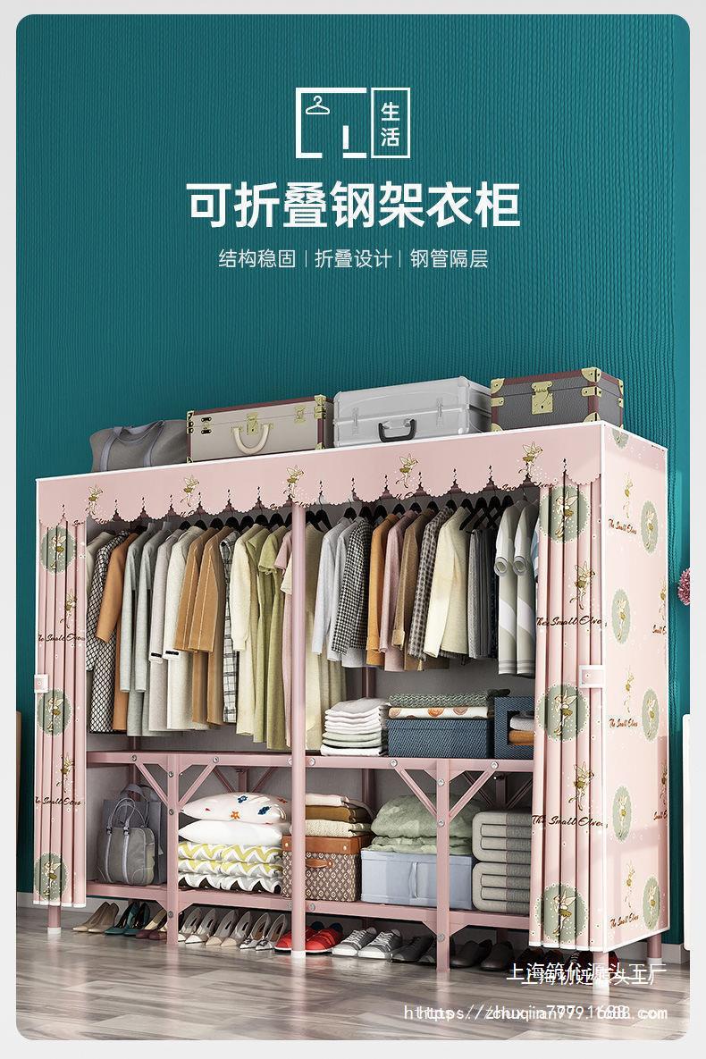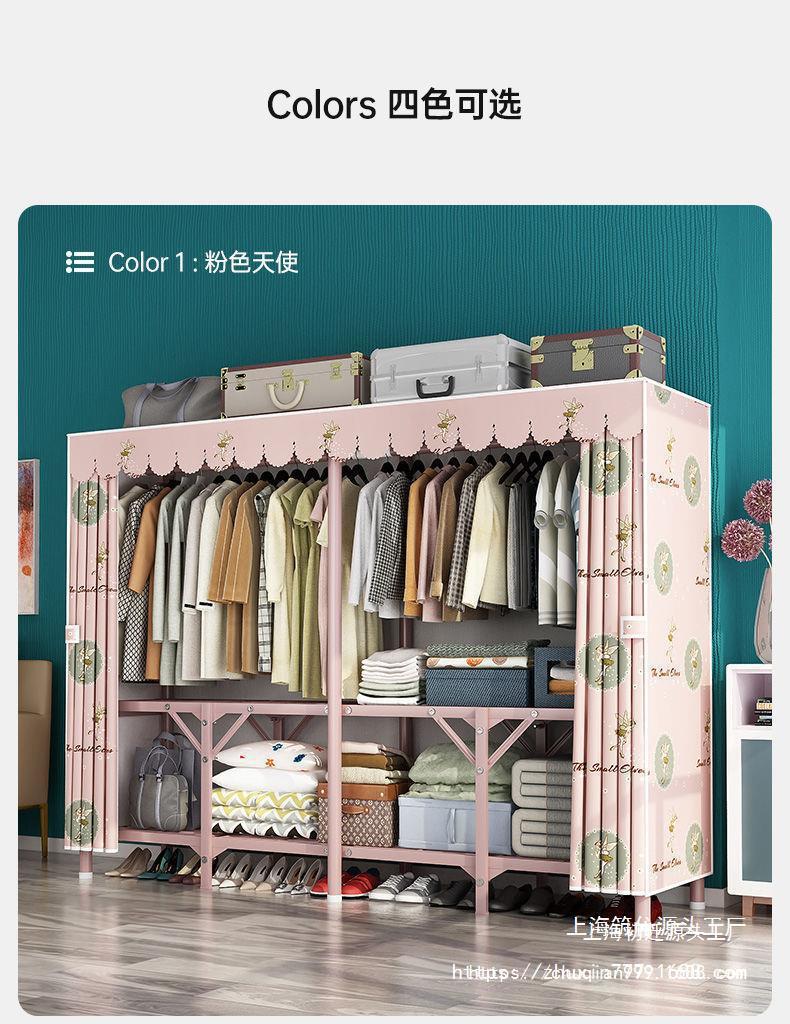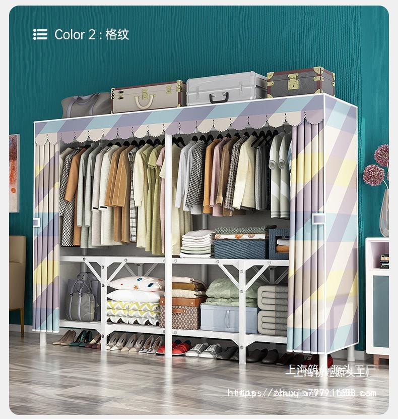 설치가 필요 없는 접이식 옷장, 가정용 침실 임대실, 간단한 천 옷장, 강철 파이프, 튼튼하고 내구성이 뛰어난 수납 옷장