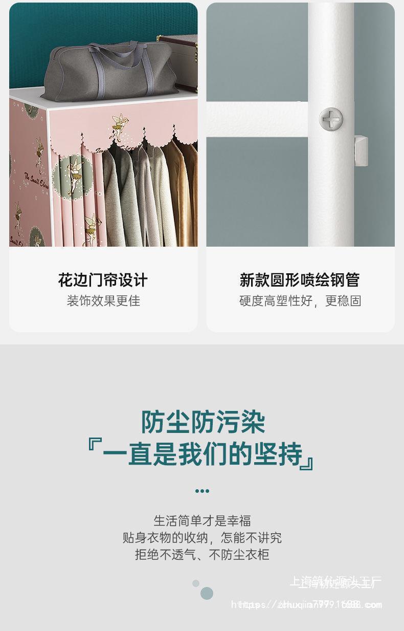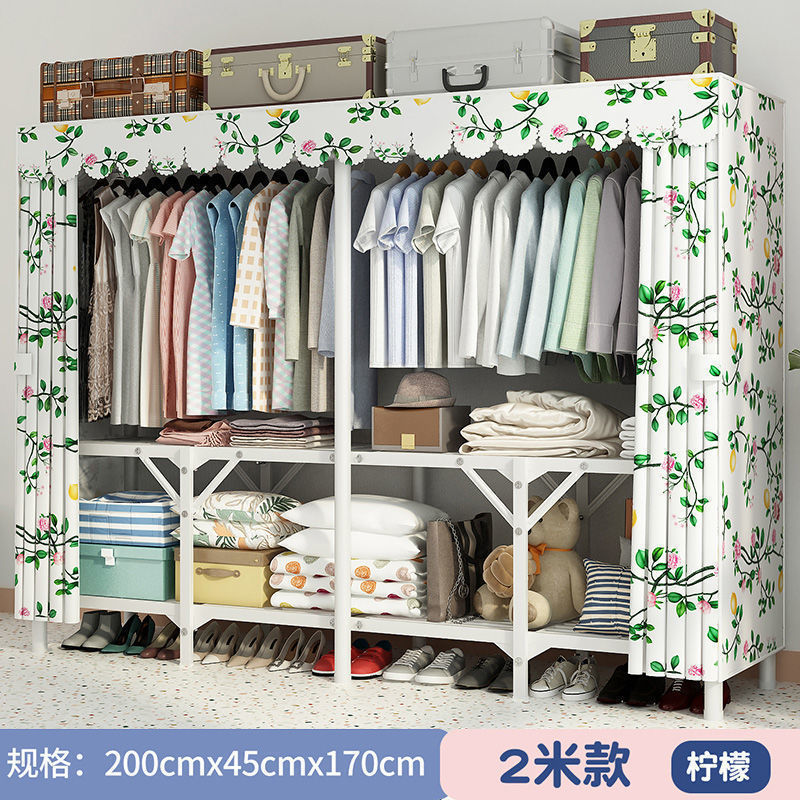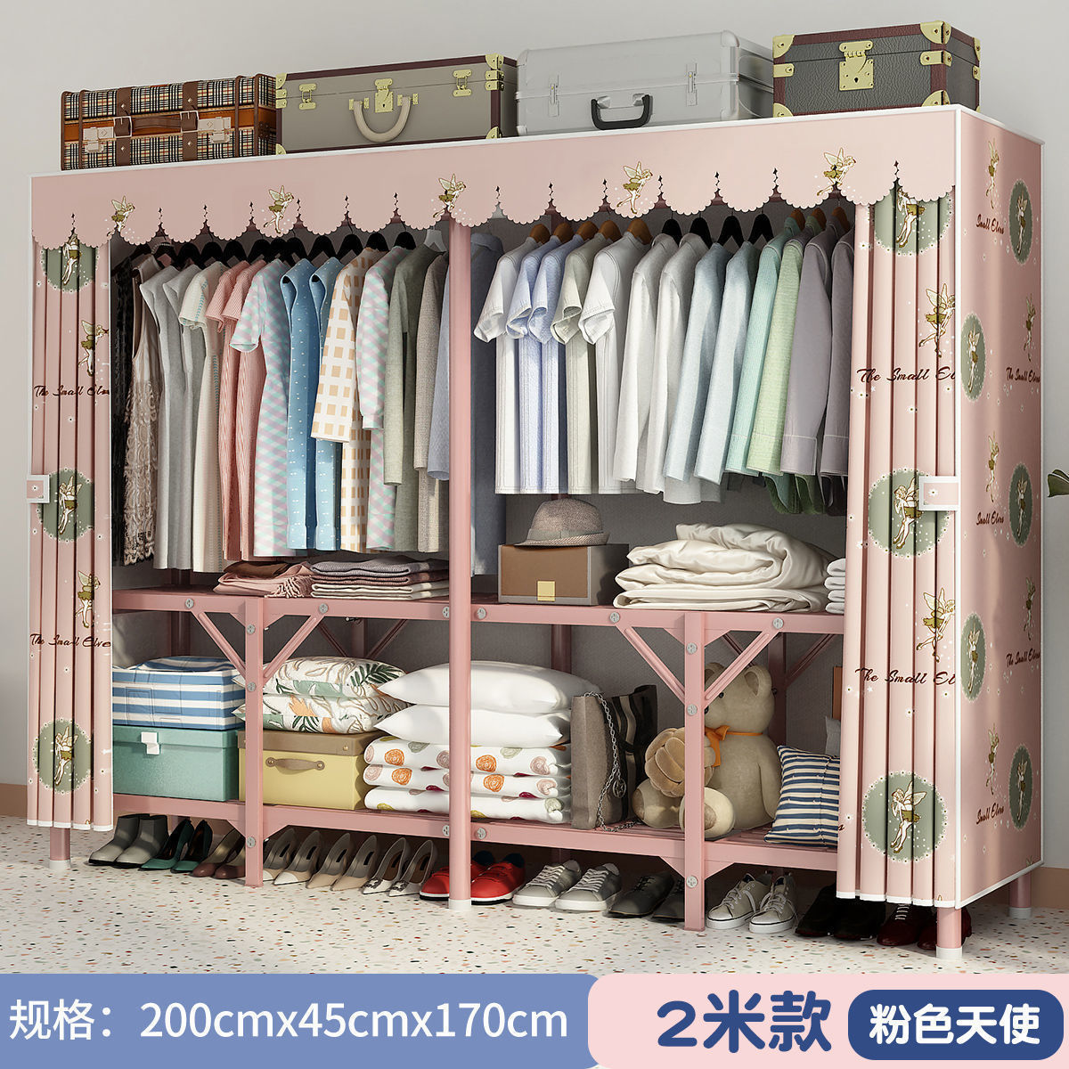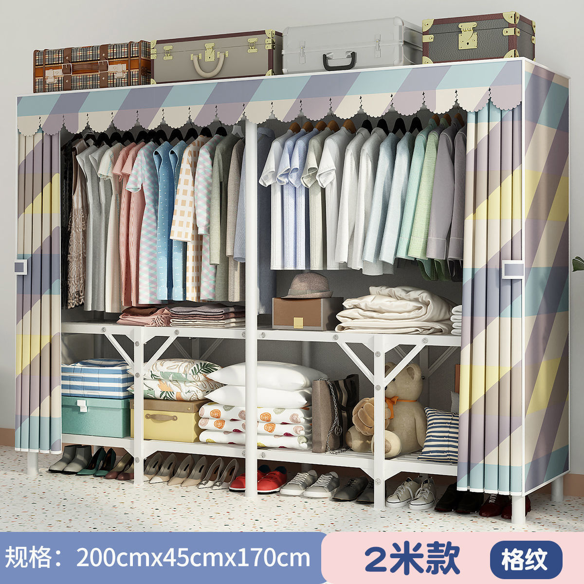 설치가 필요 없는 접이식 옷장, 가정용 침실 임대실, 간단한 천 옷장, 강철 파이프, 튼튼하고 내구성이 뛰어난 수납 옷장