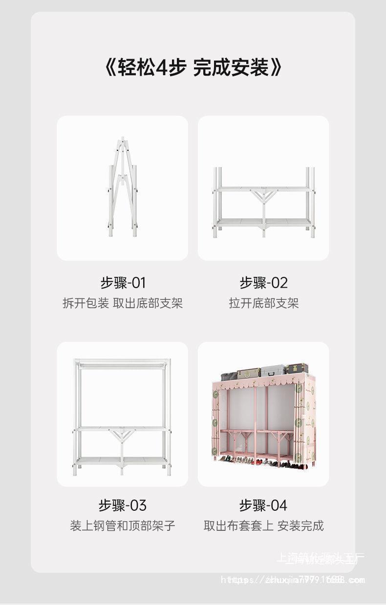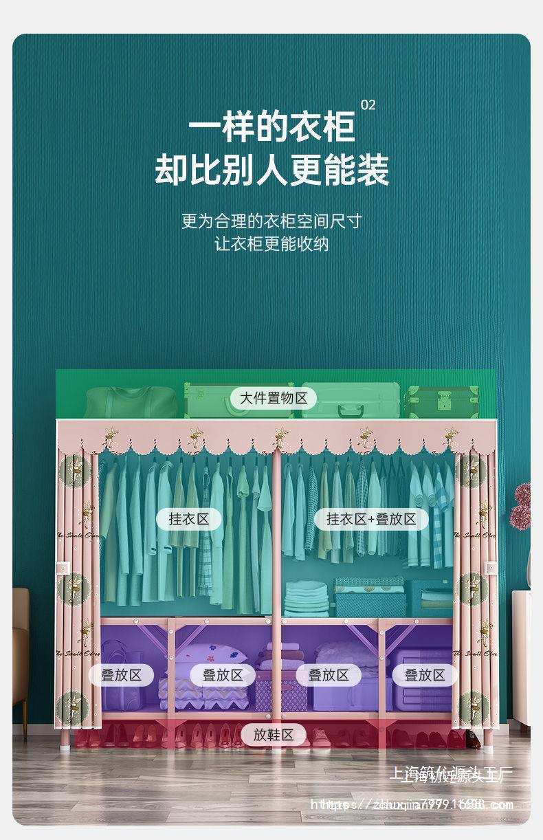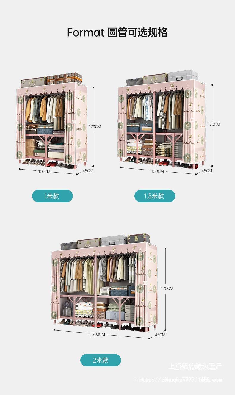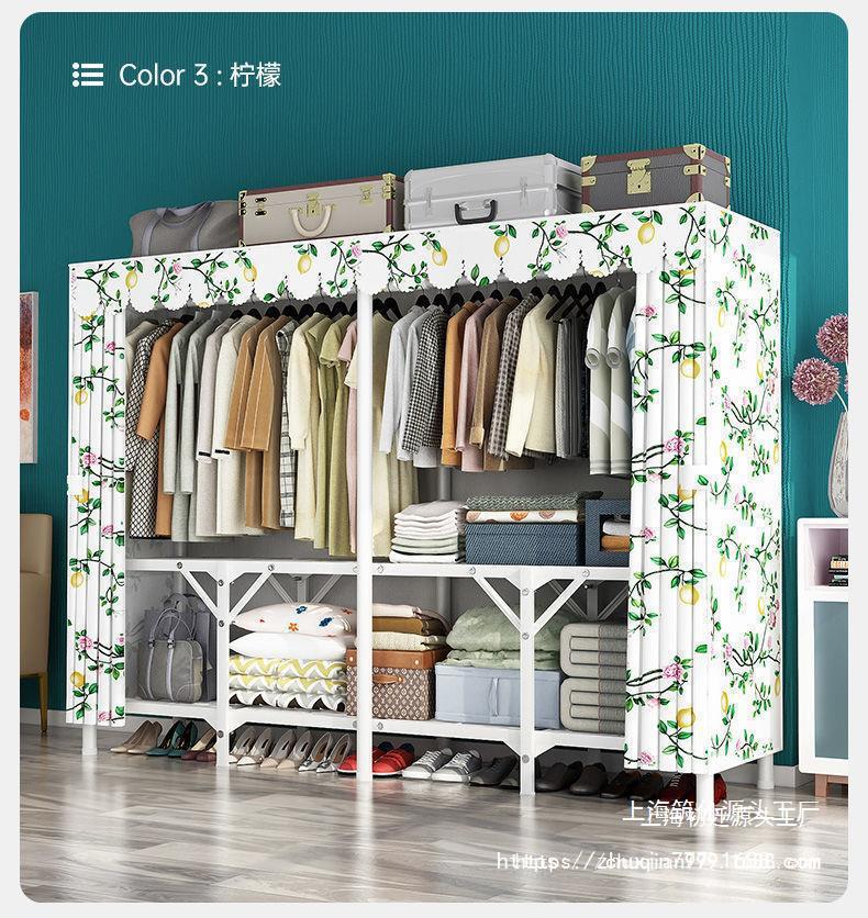 설치가 필요 없는 접이식 옷장, 가정용 침실 임대실, 간단한 천 옷장, 강철 파이프, 튼튼하고 내구성이 뛰어난 수납 옷장스토어 가기